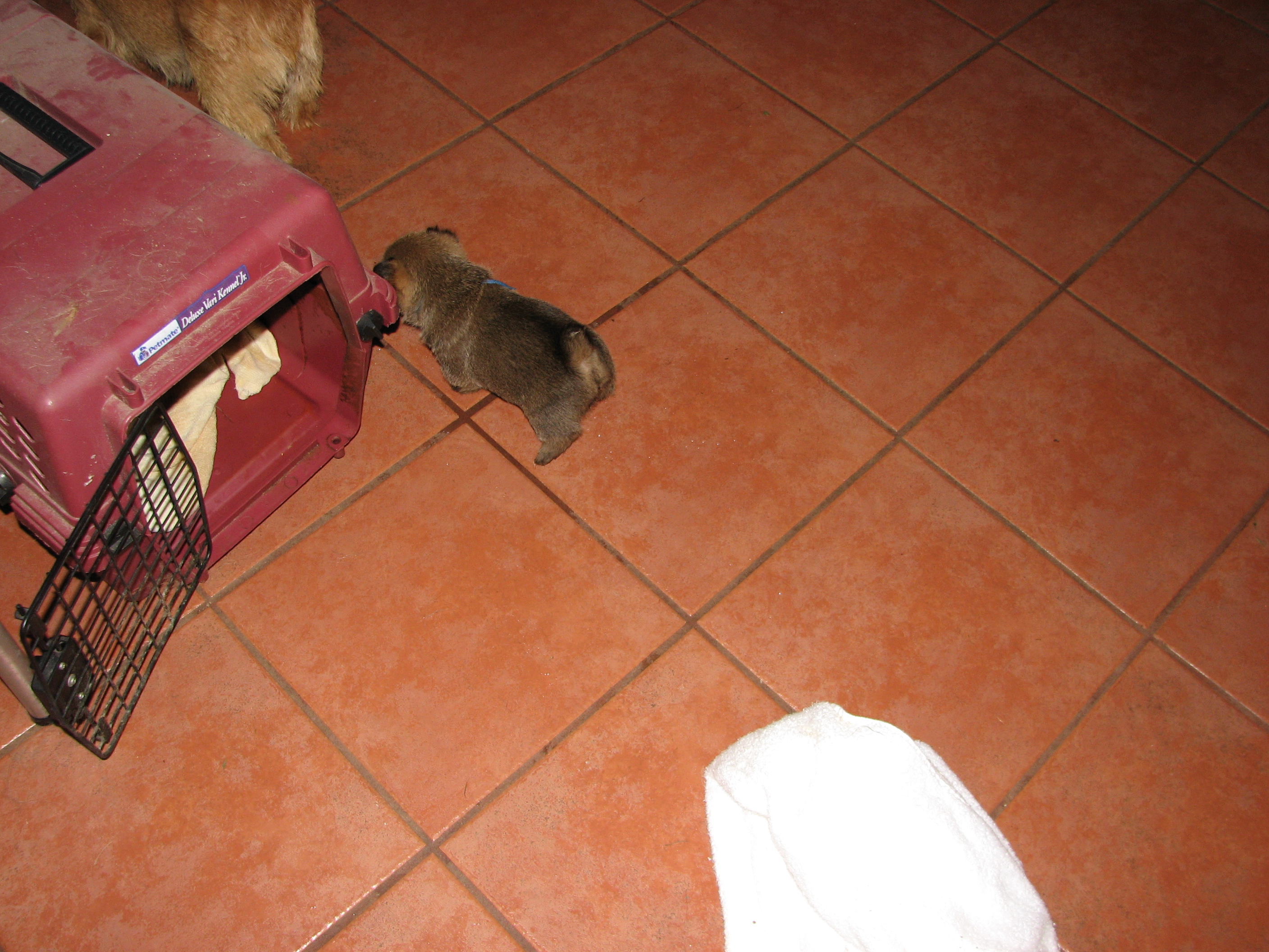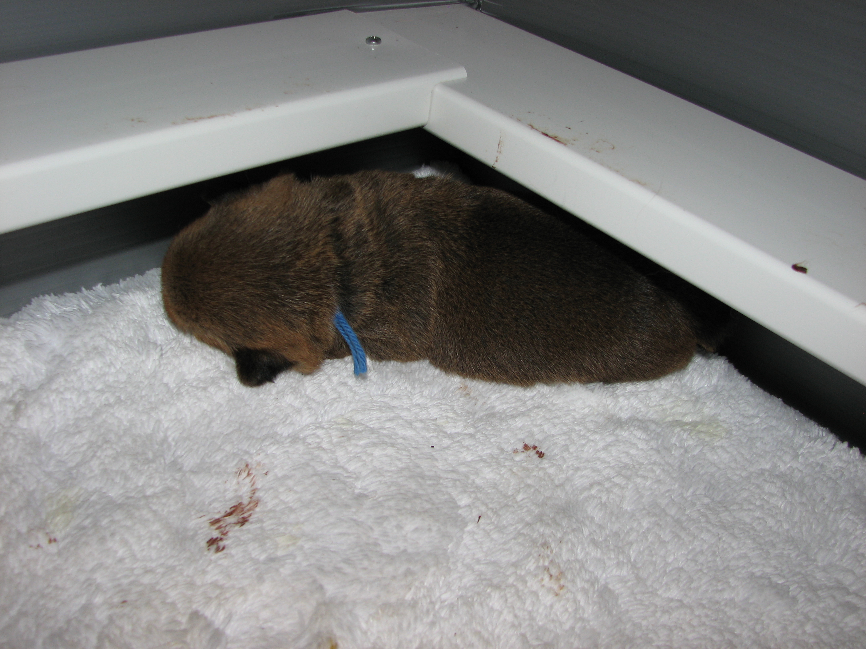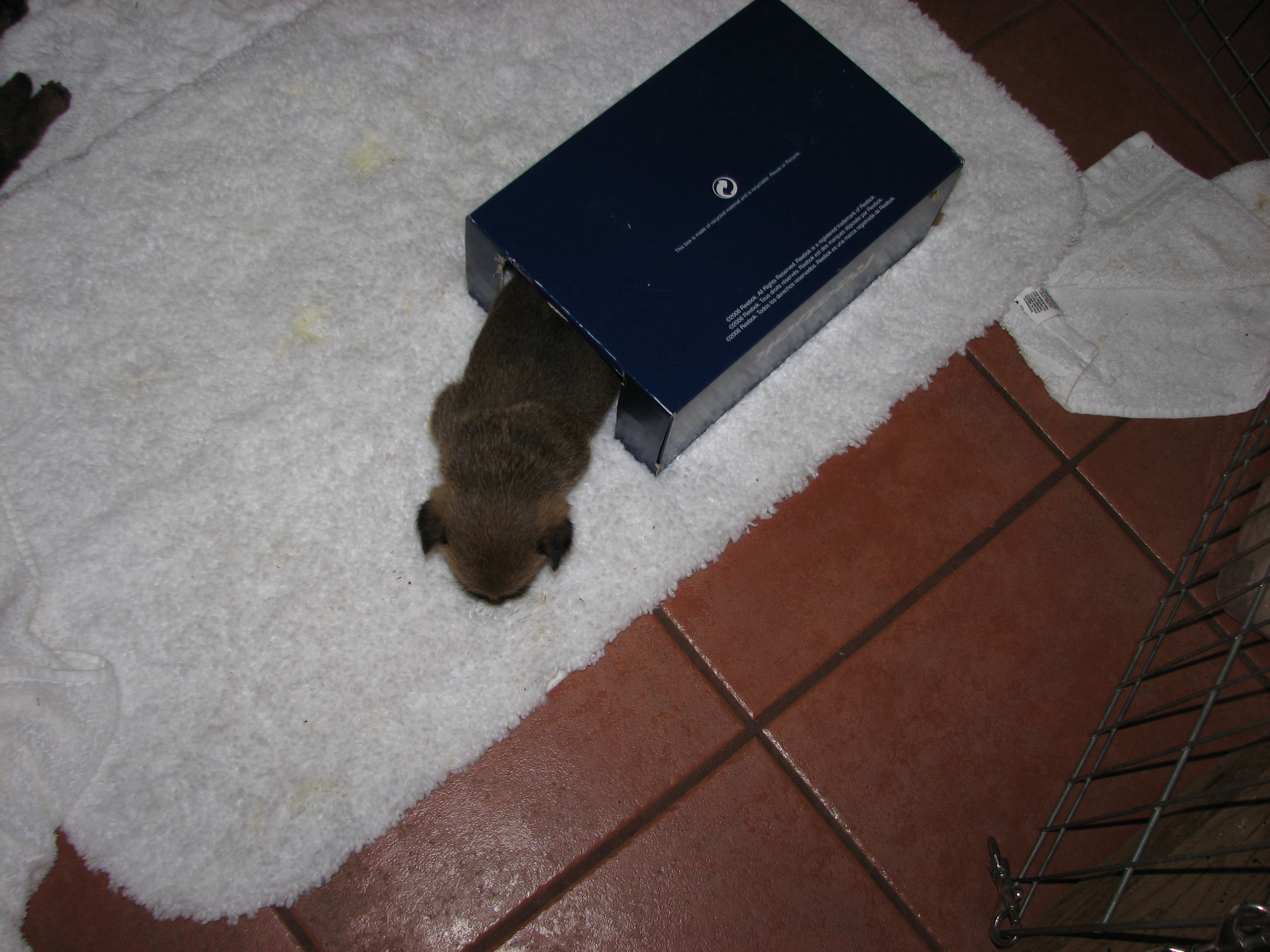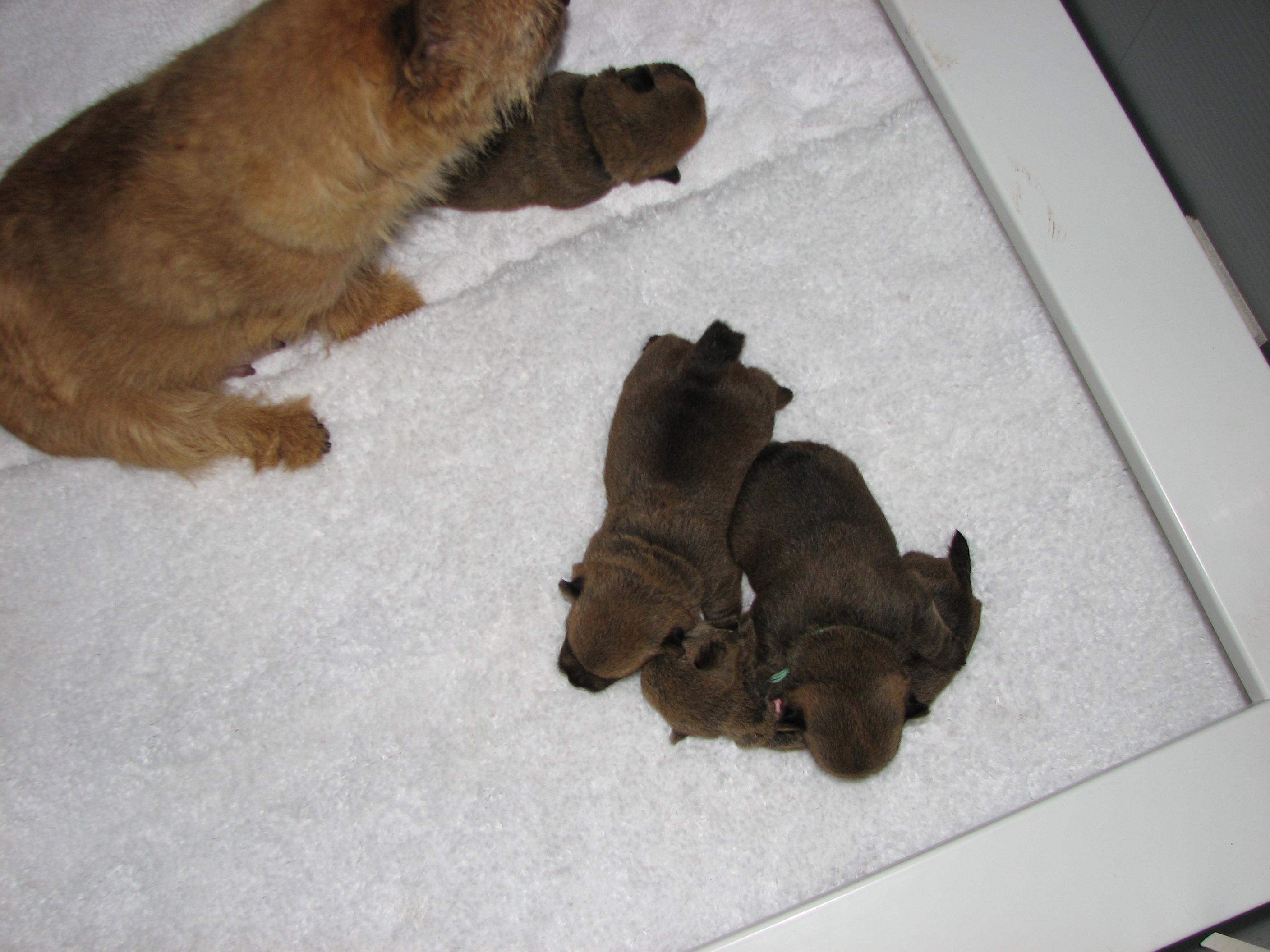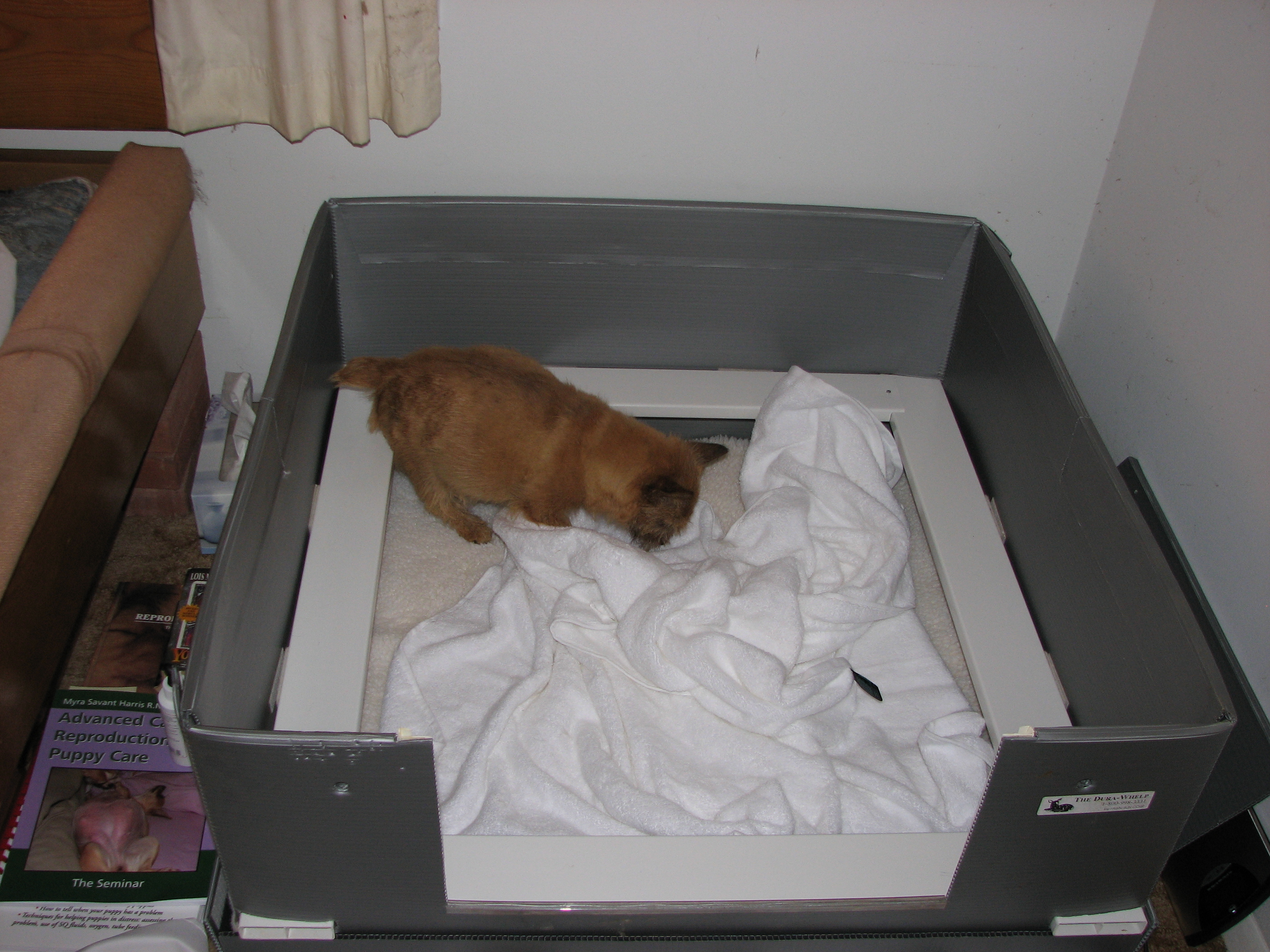 I had put him back in the whelping box, but the next thing