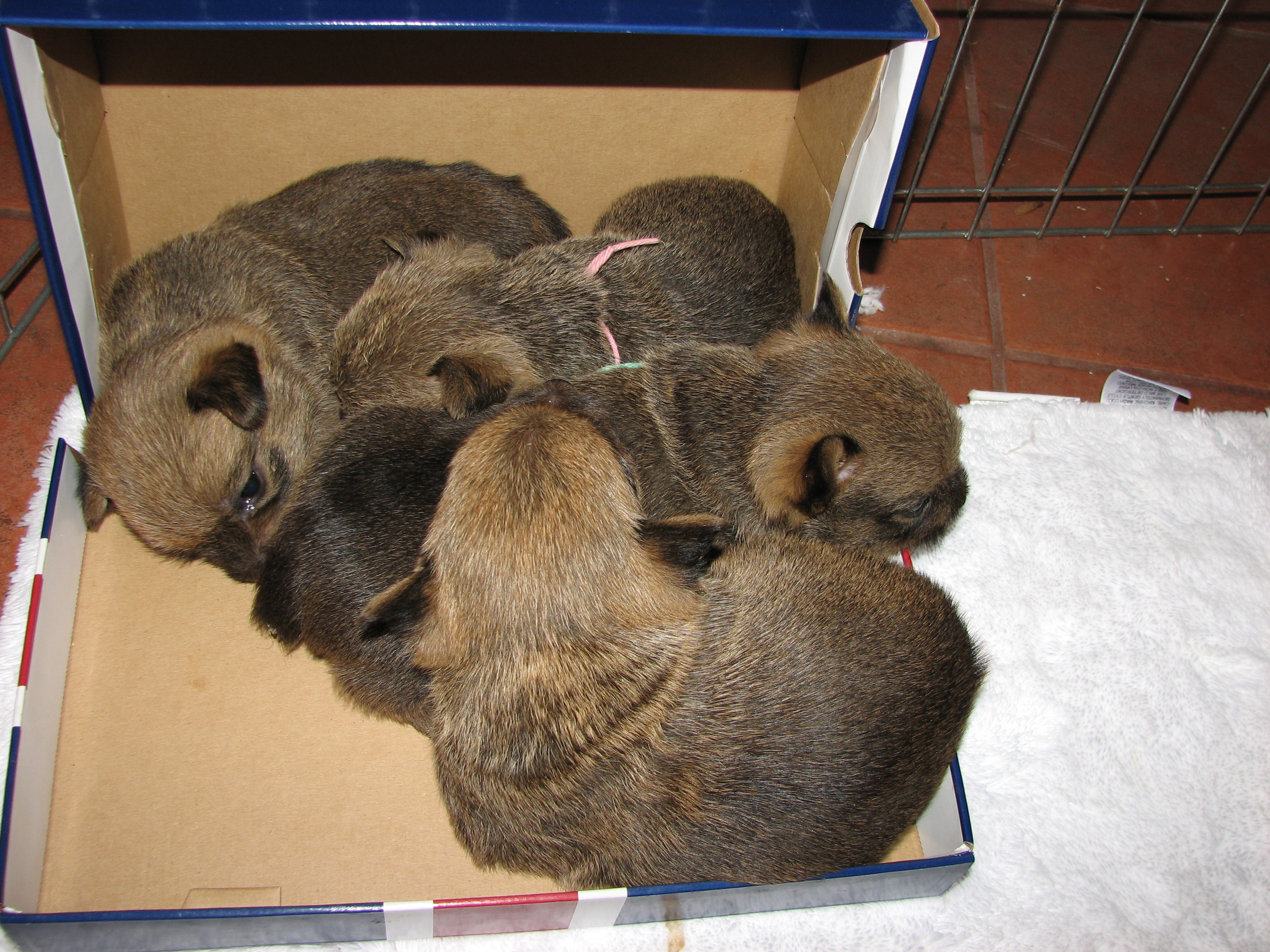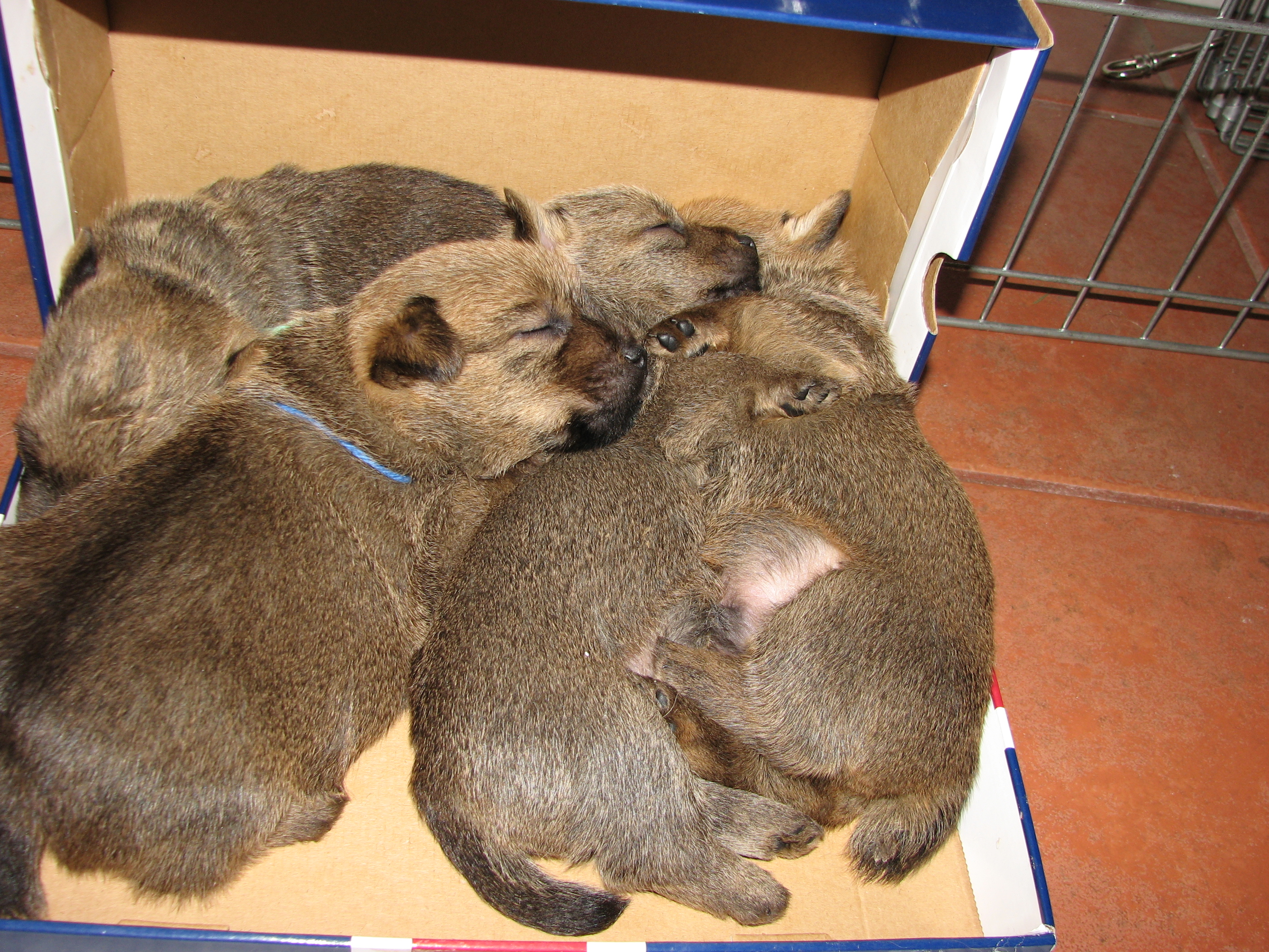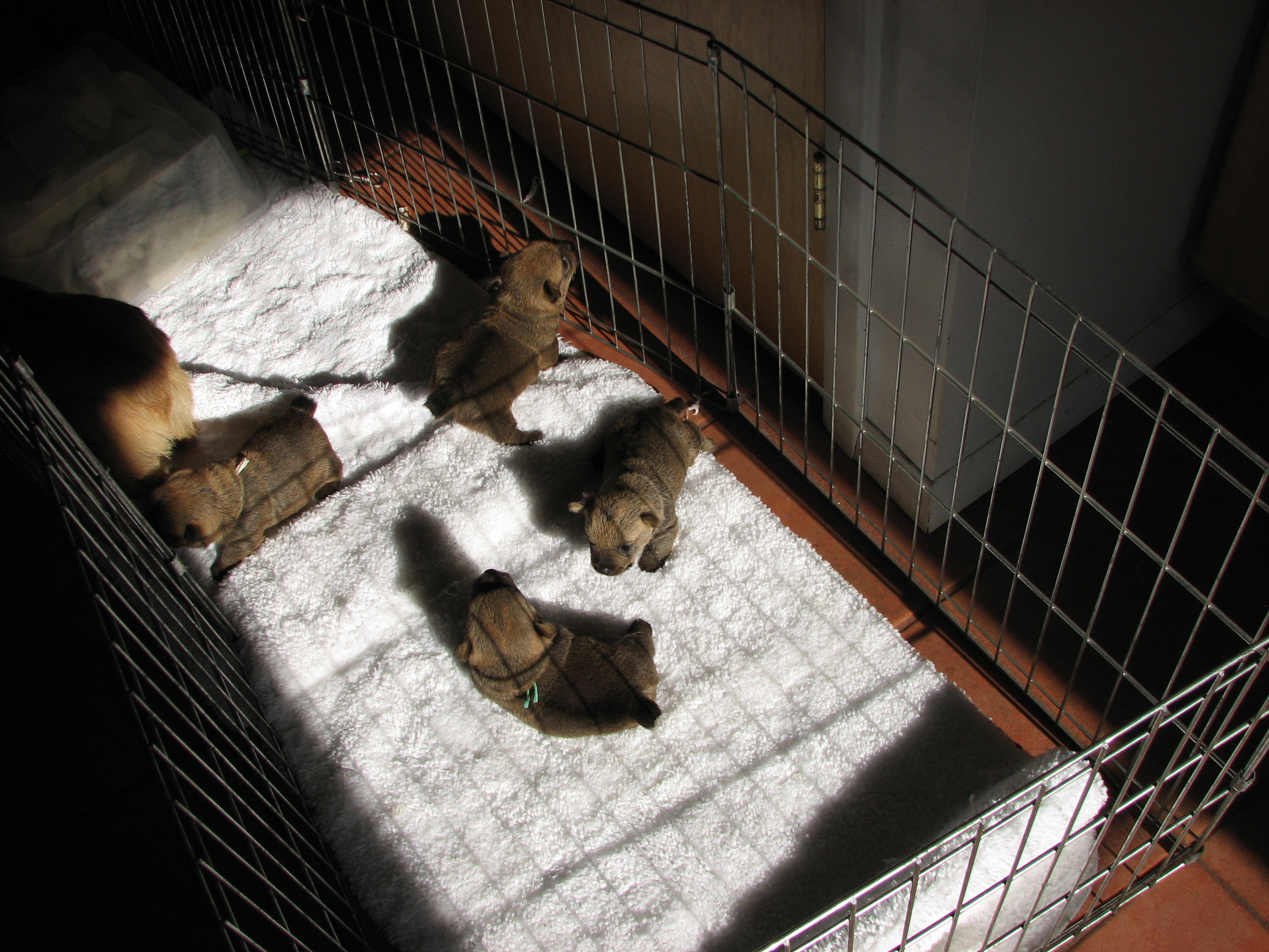 the whelping box (with their puppy teeth), so next