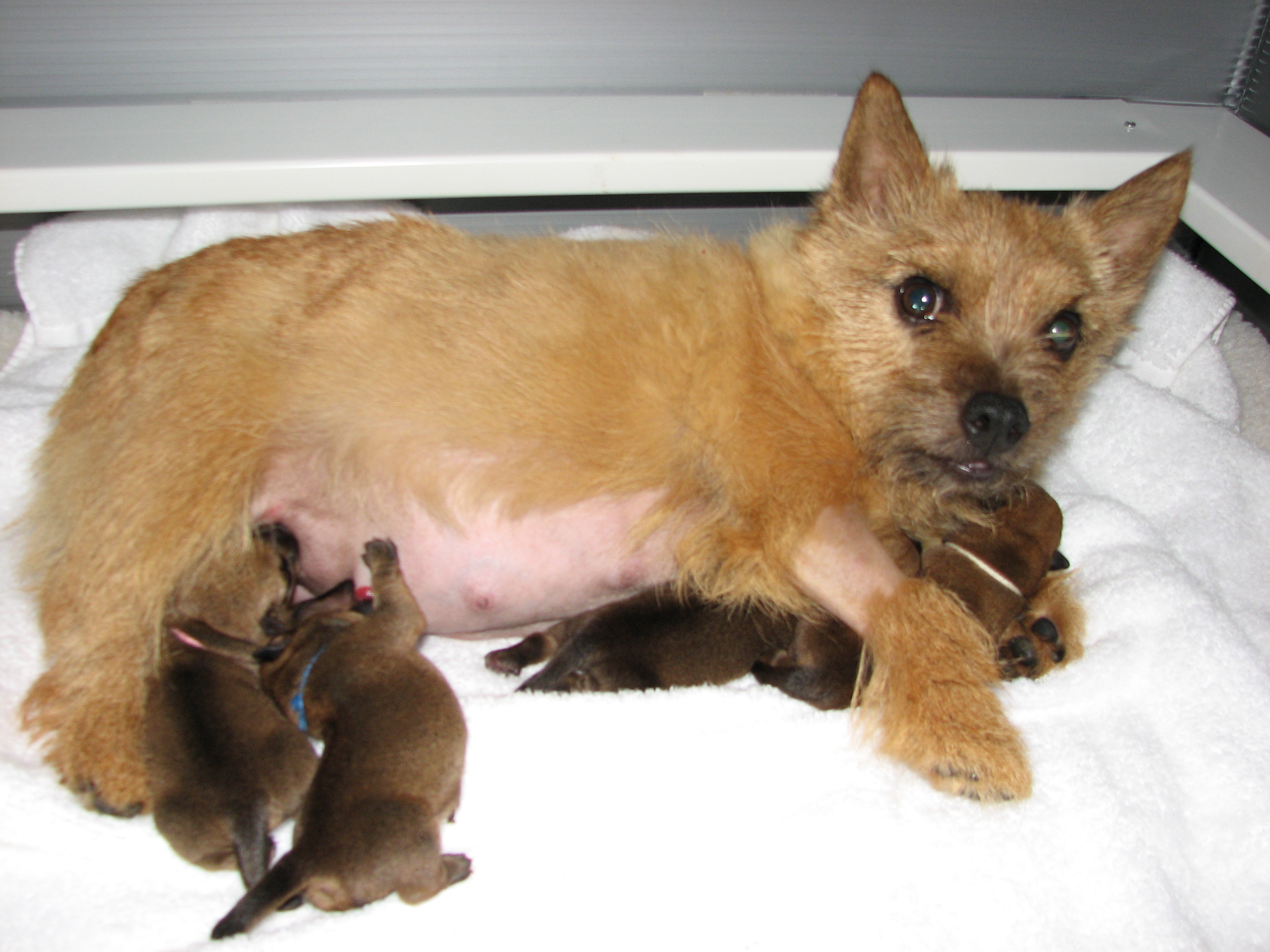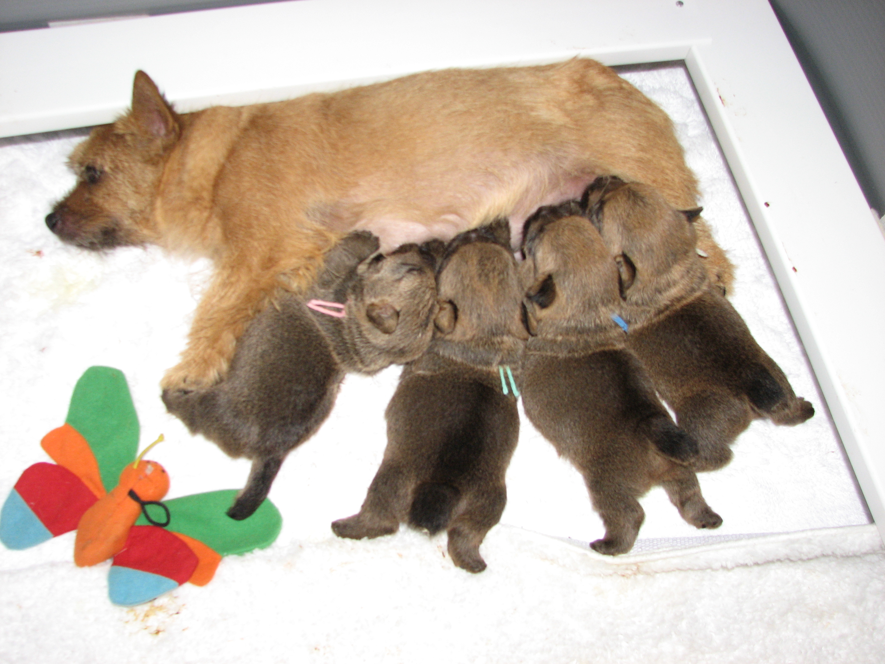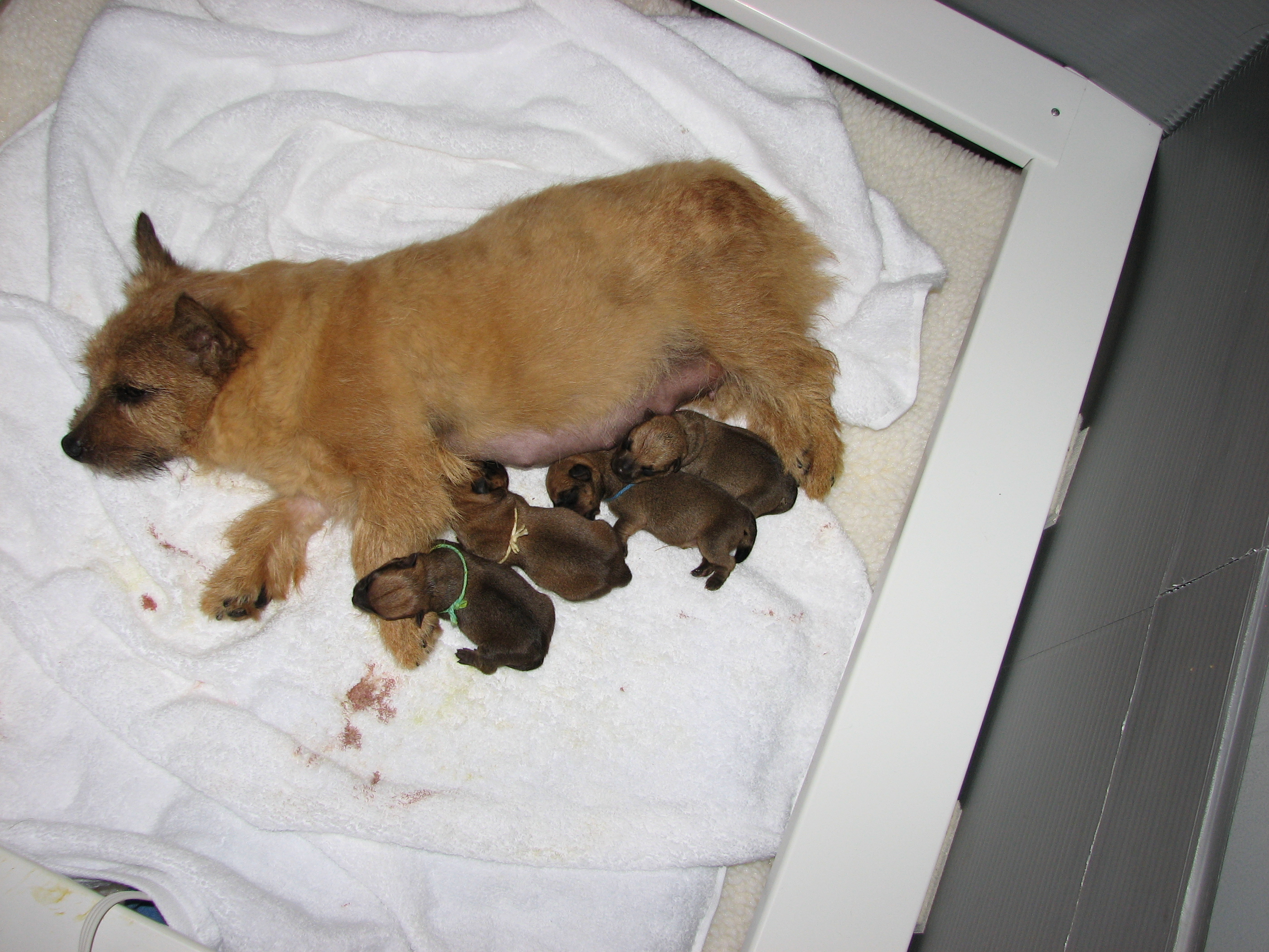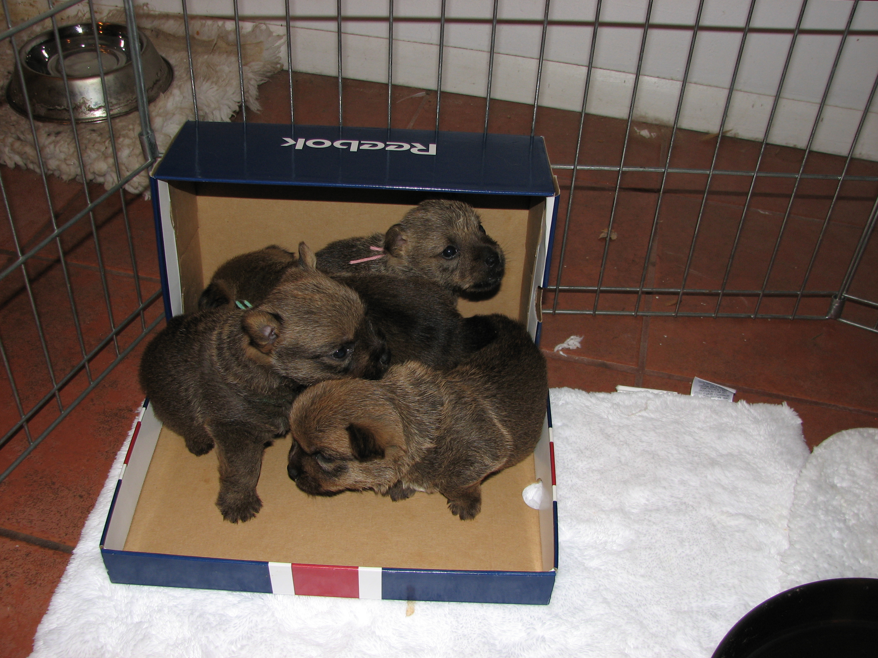 the whelping box (with their puppy teeth), so next