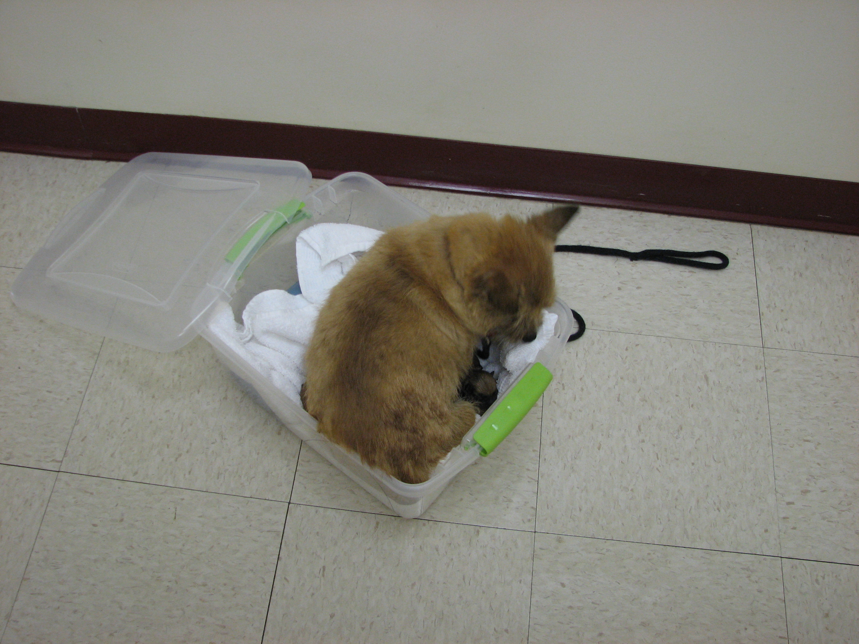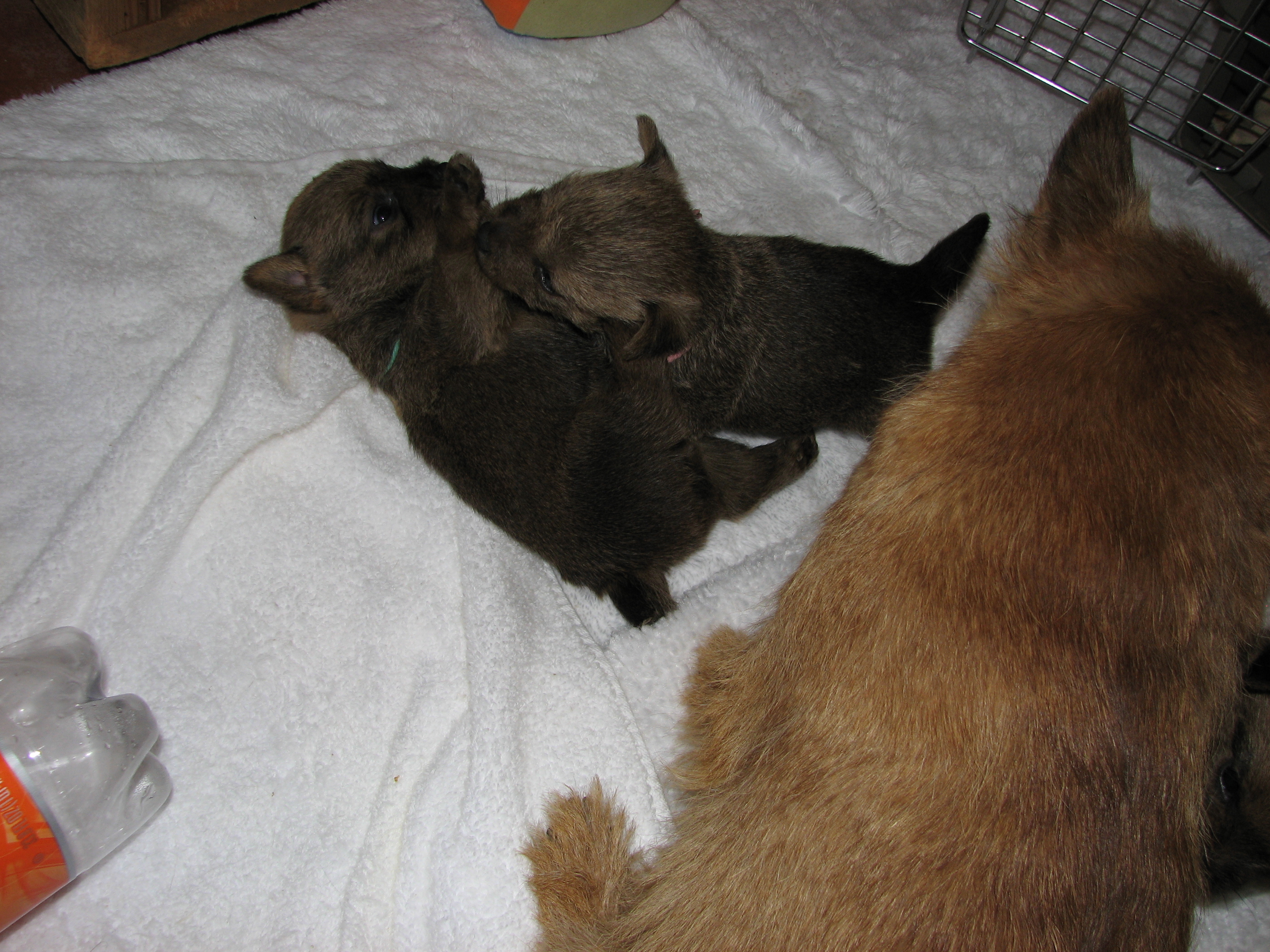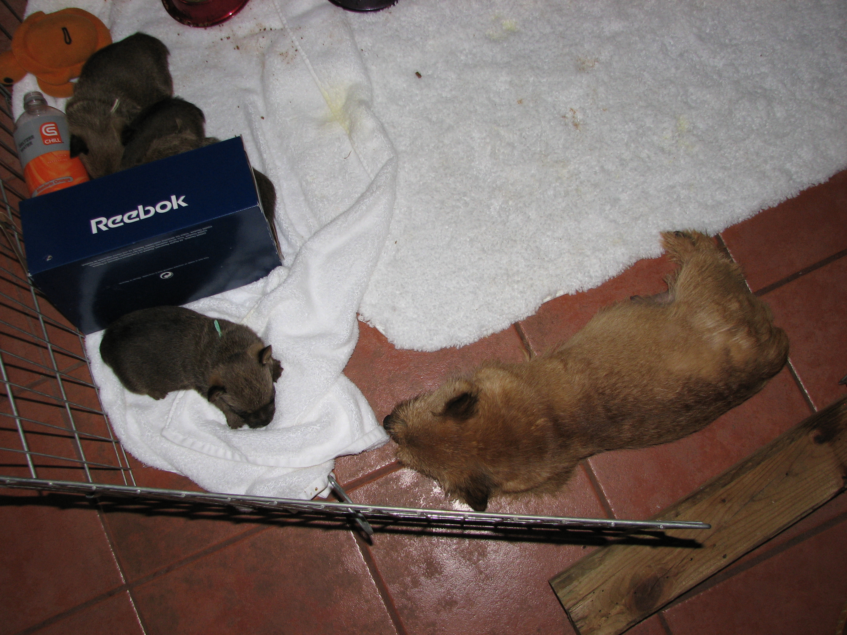 bottle in the box used to transport the puppies, Olivia does not