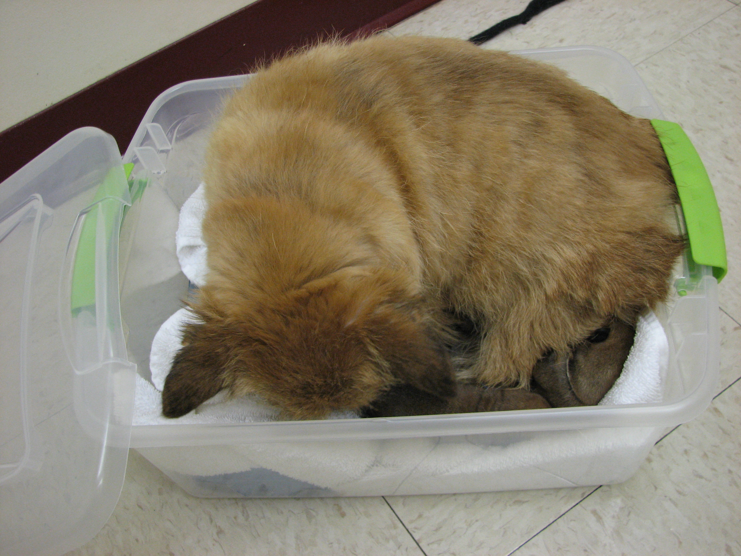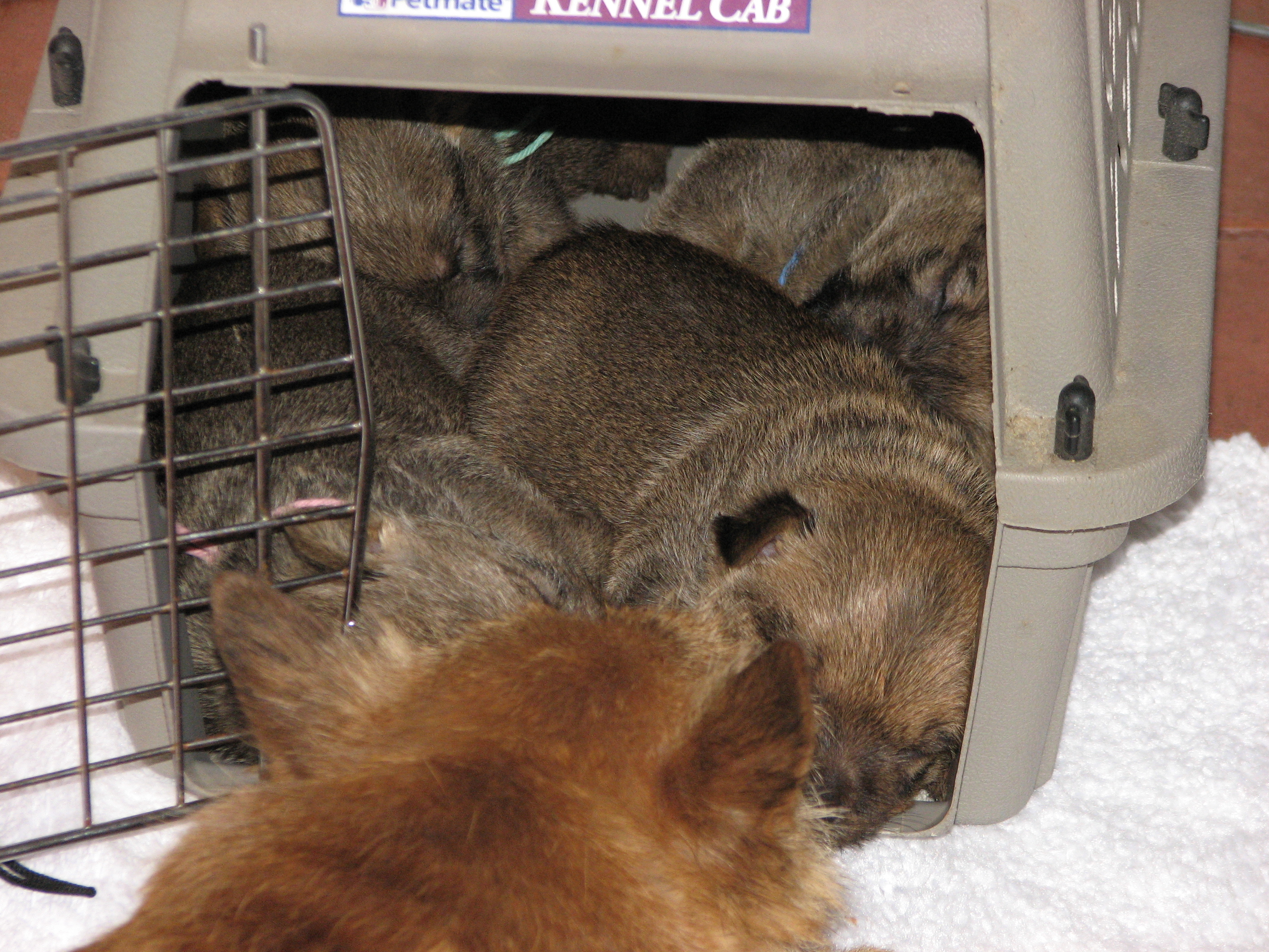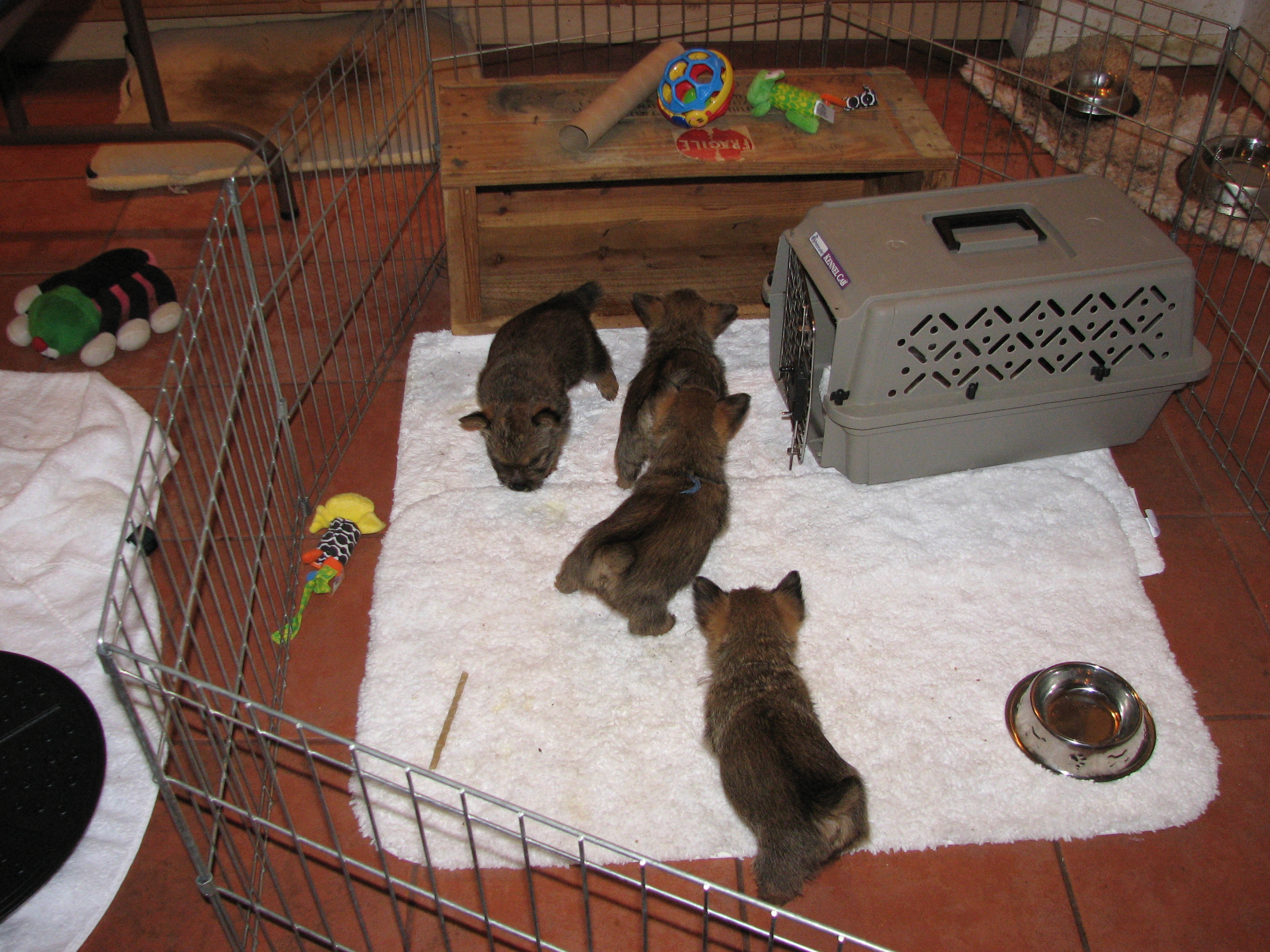 bottle in the box used to transport the puppies, Olivia does not