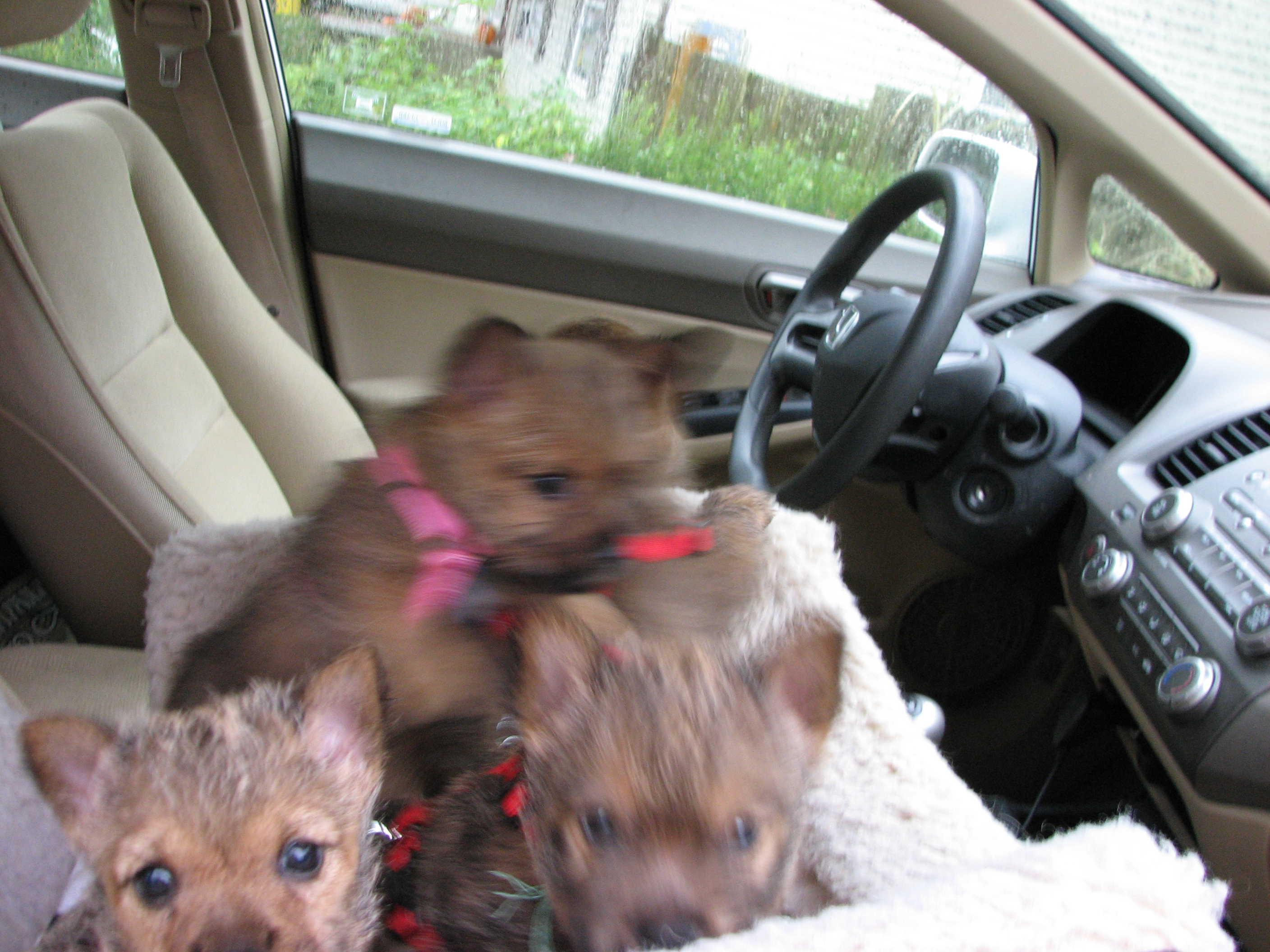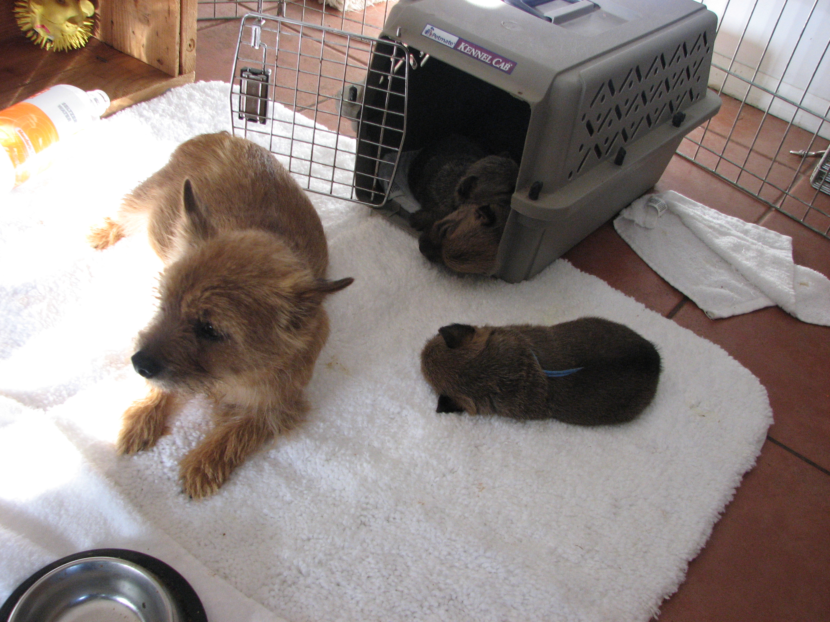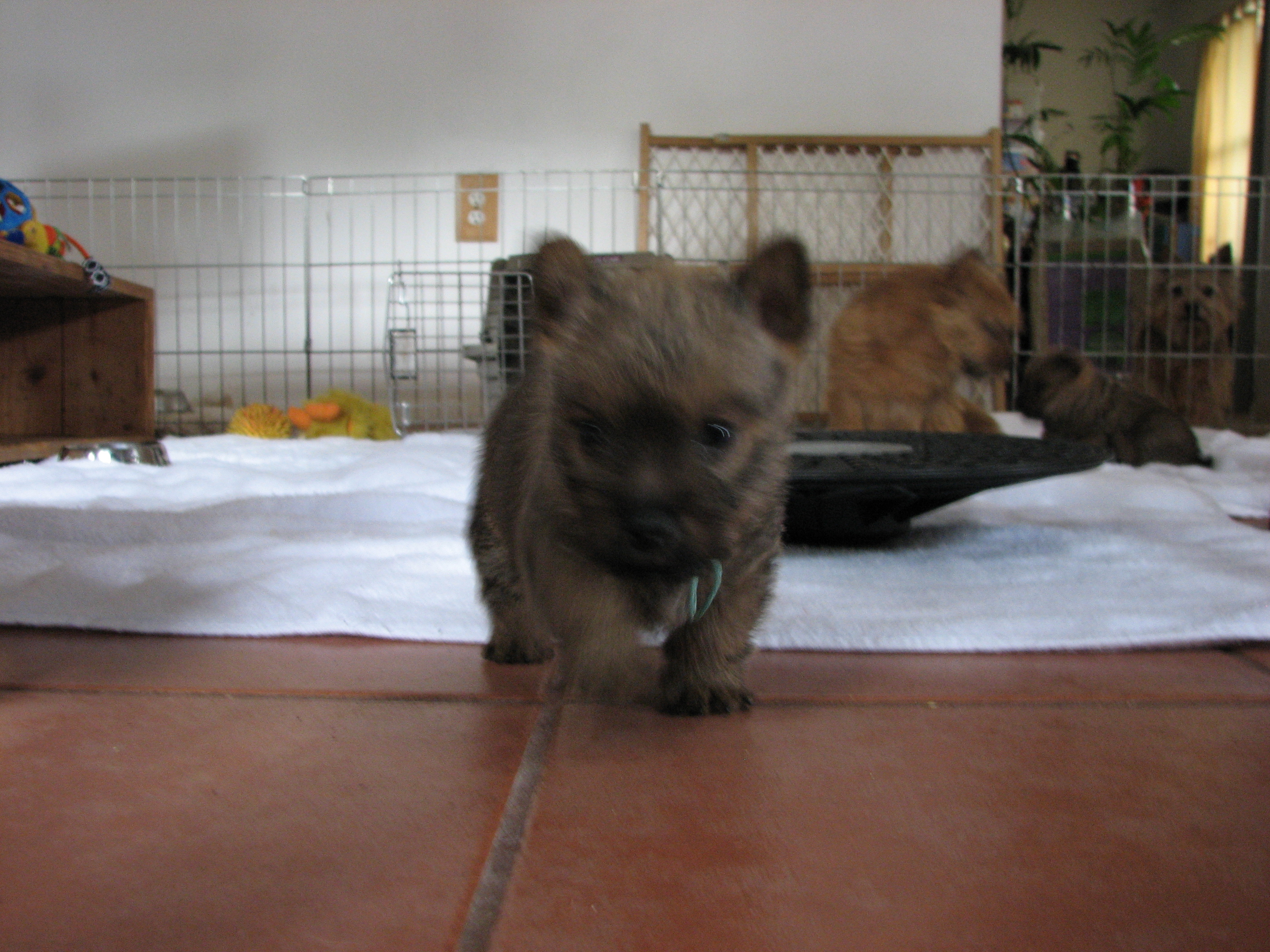 the puppies outside to potty. When we came back inside, all