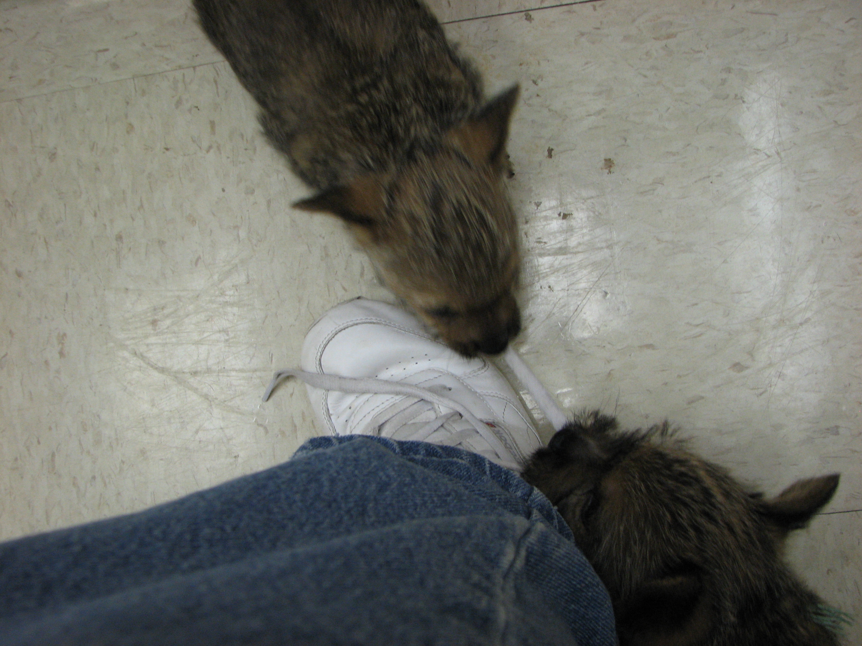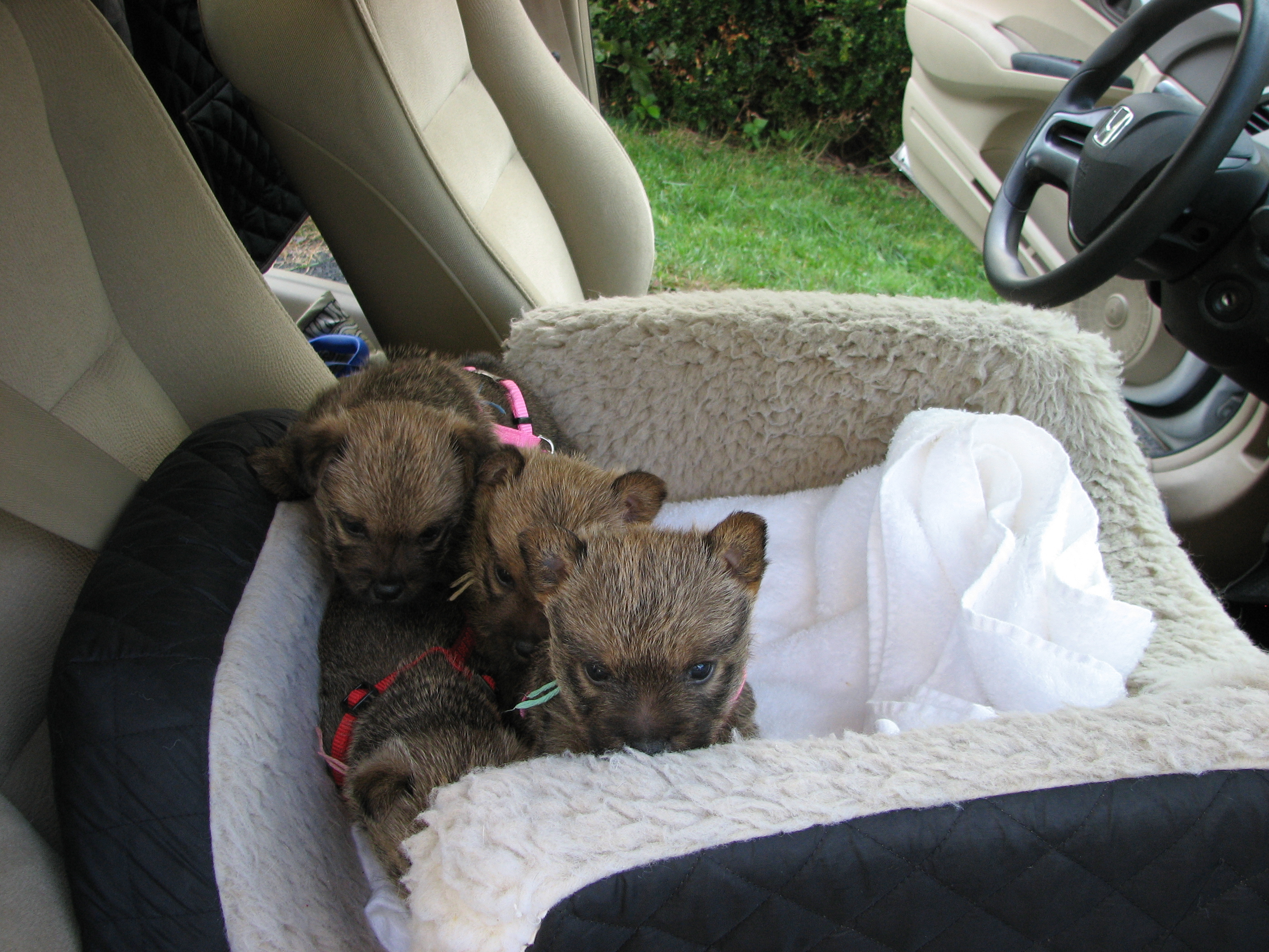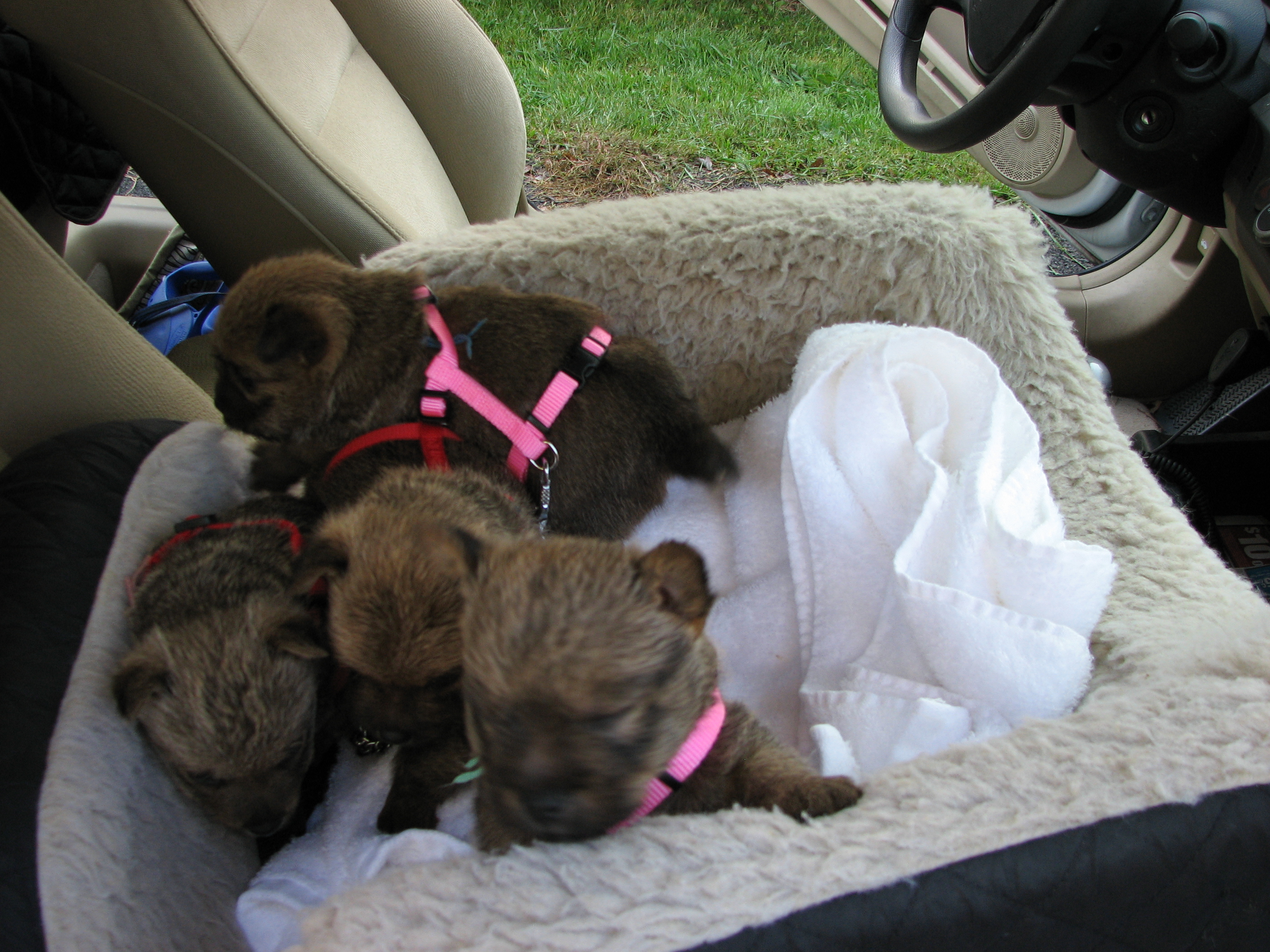 the puppies outside to potty. When we came back inside, all