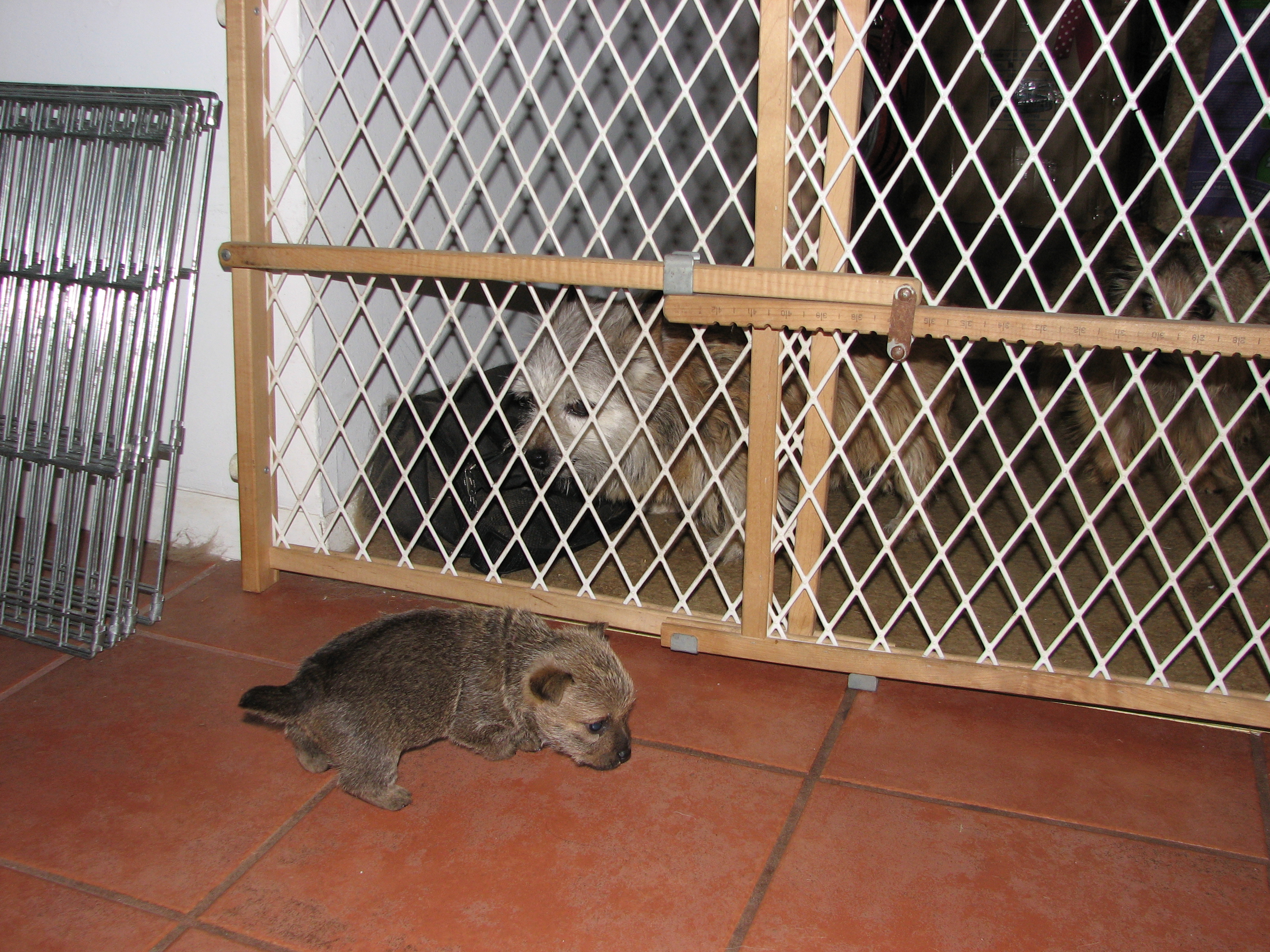 barrier that was keeping puppies inside but letting Mom