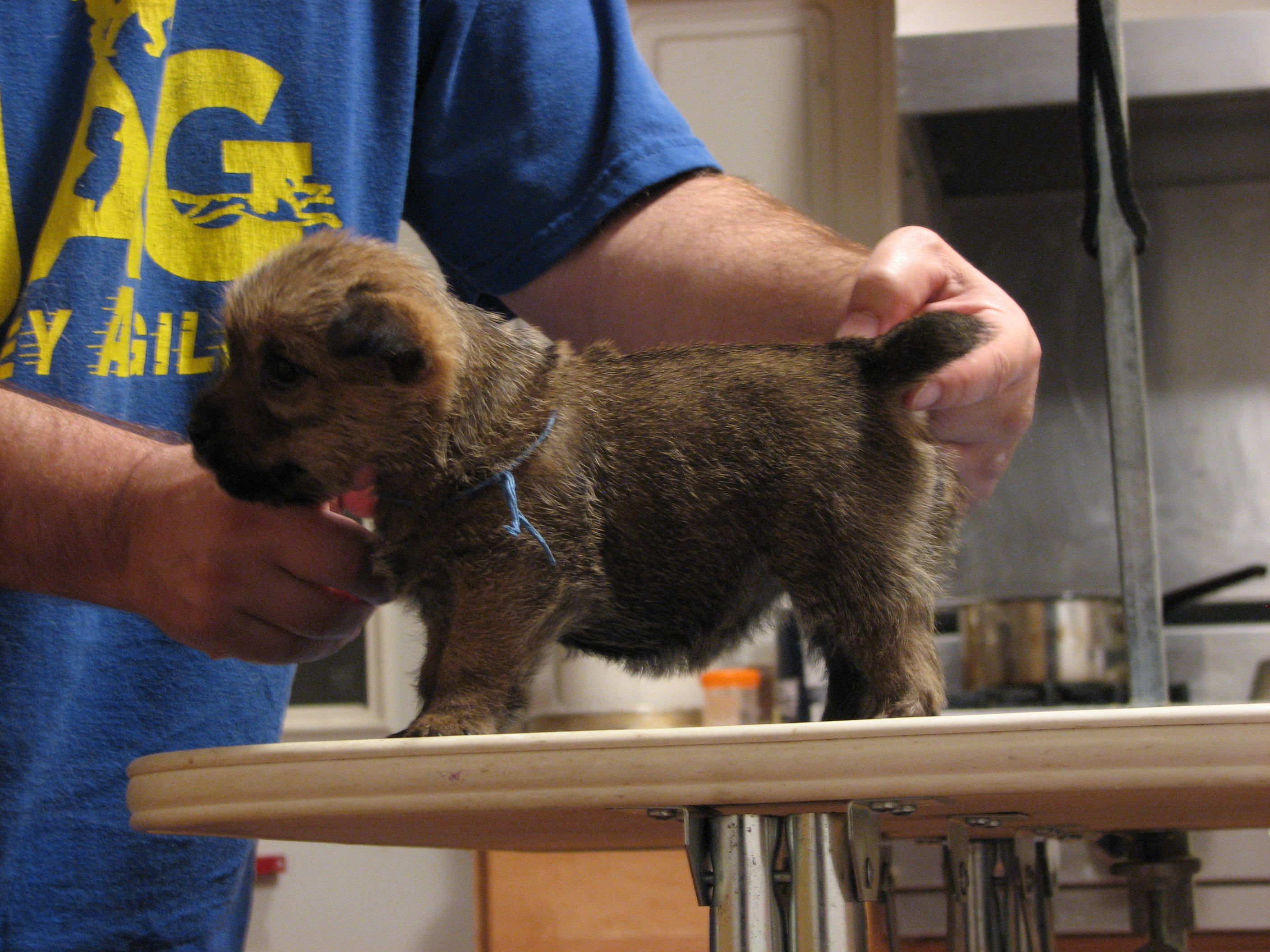 Norwich terriers are a dock-tailed breed. Tails came off