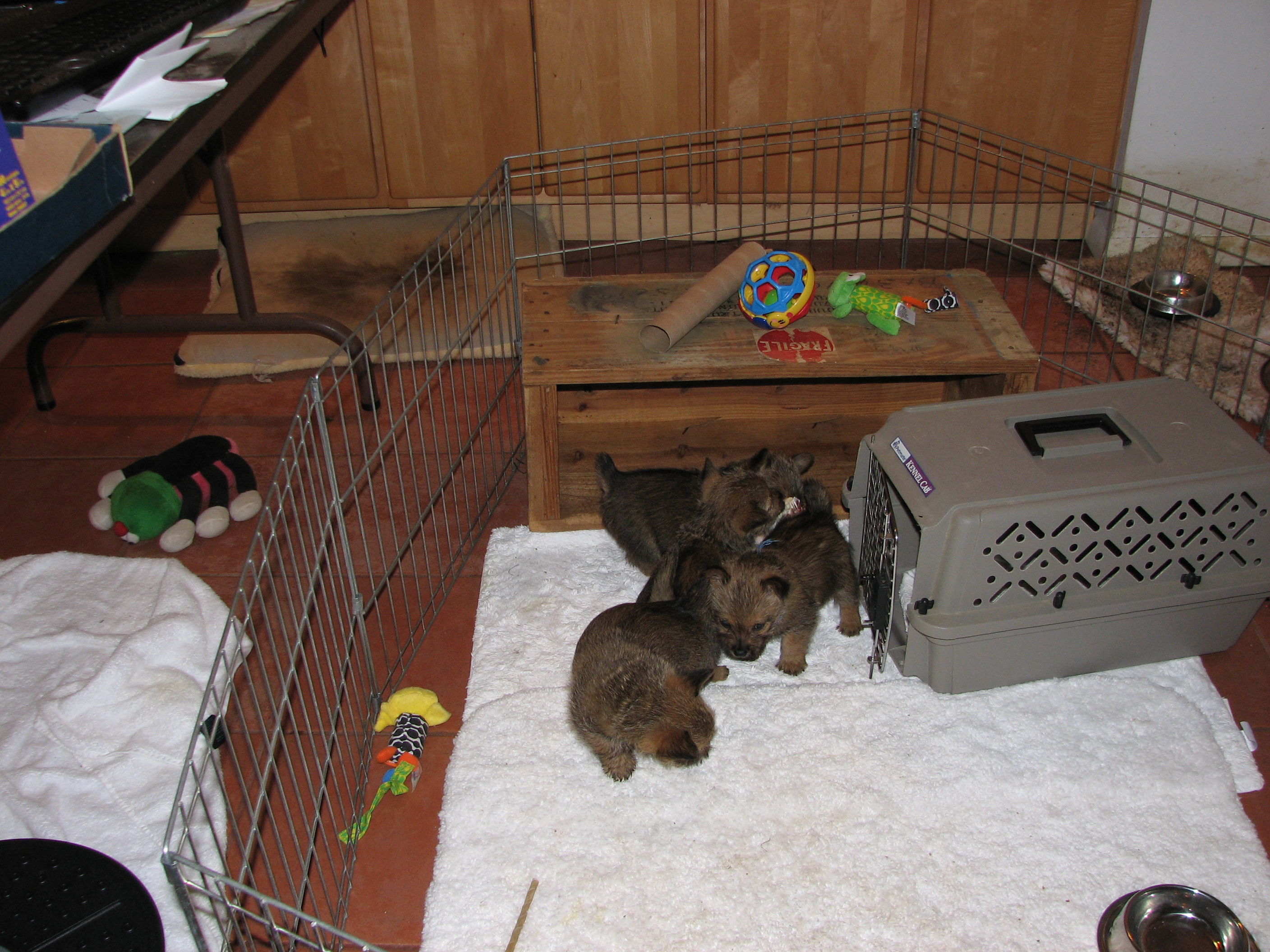 outside to potty, I found only two puppies in the play pen.