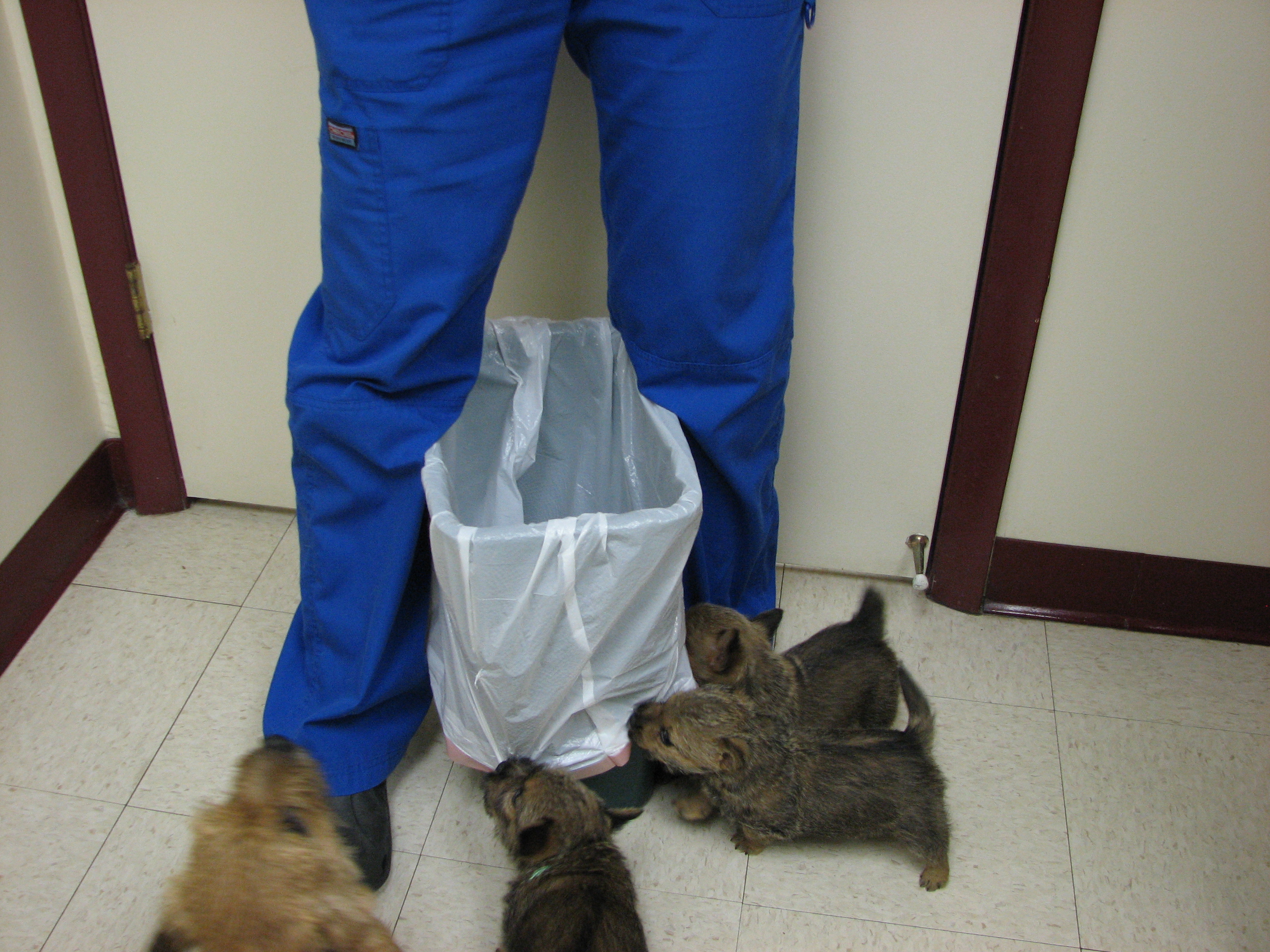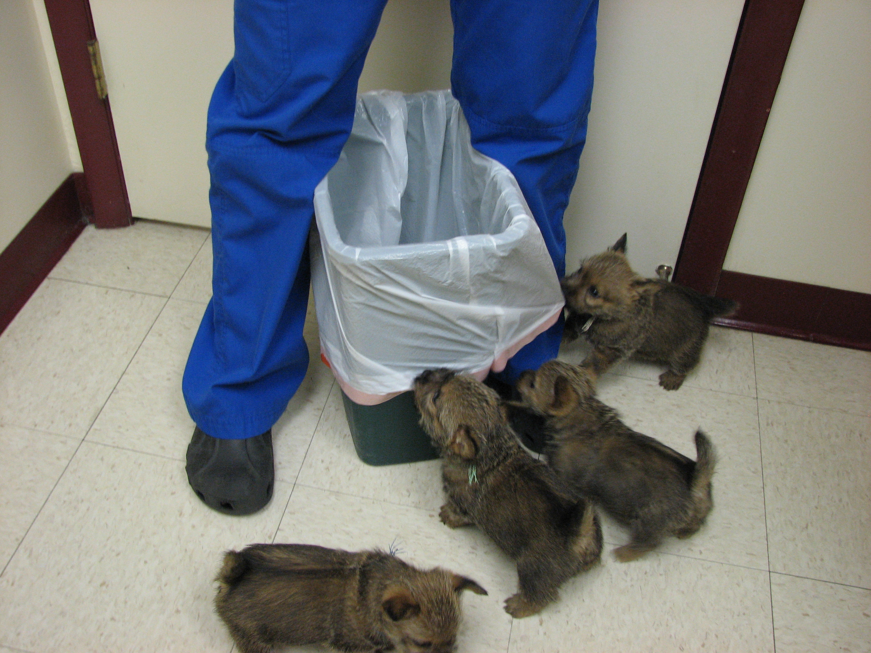 The vet tech had to rescue the garbage can.