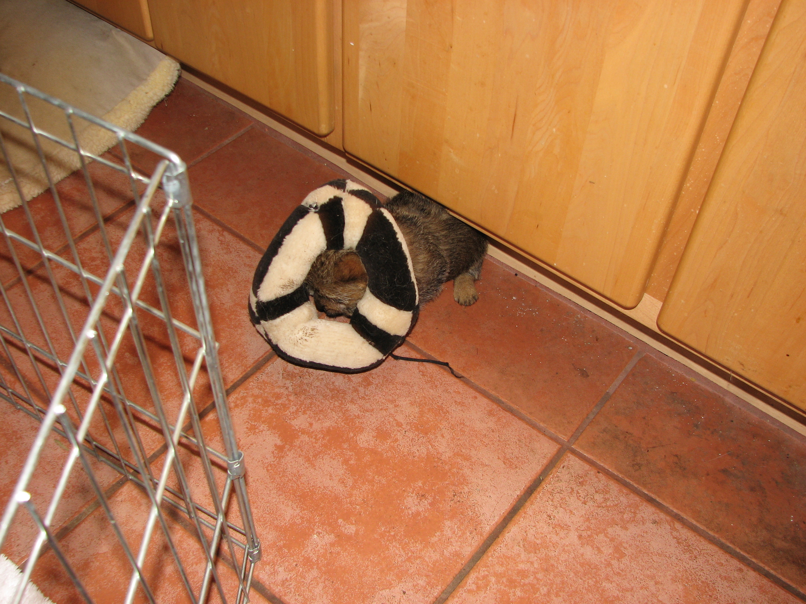 again Blue and White were out, on a dog bed in the kitchen.