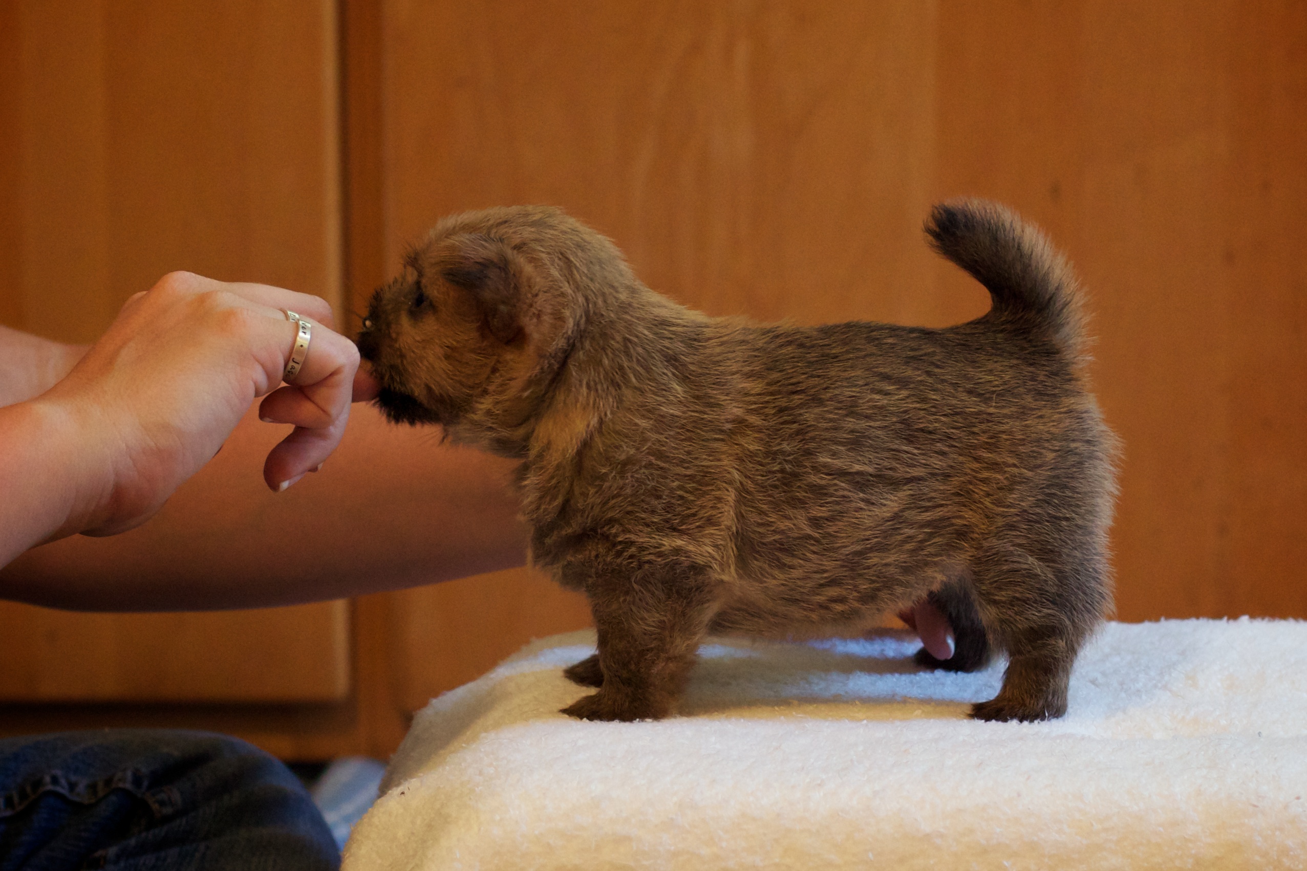of the puppies. Here the puppies check out Rachael and