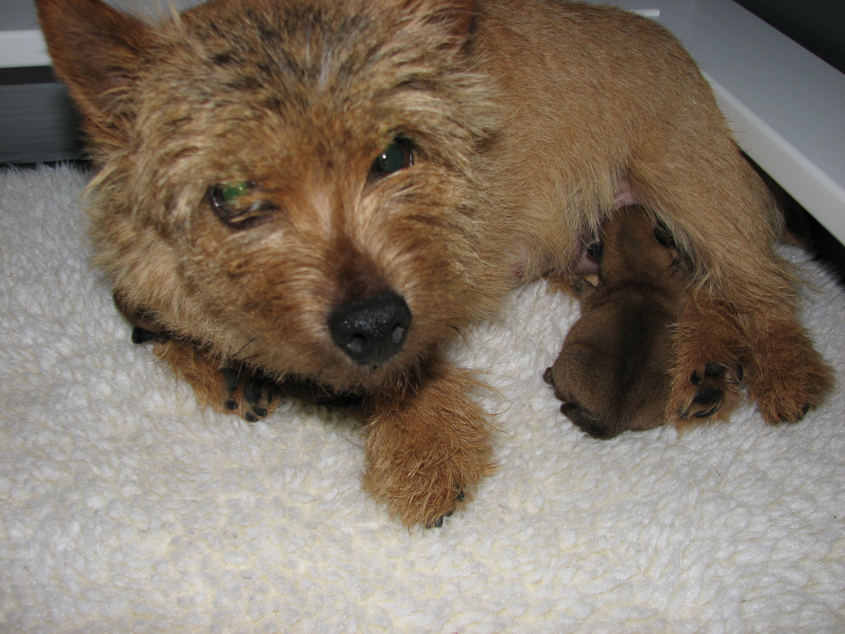 who did an emergency C-section. Four puppies - two dead and two