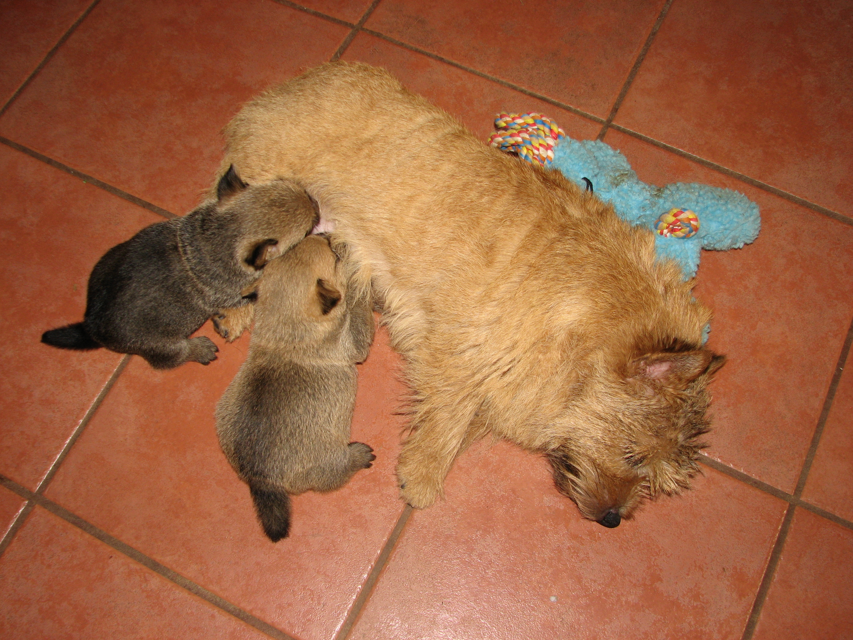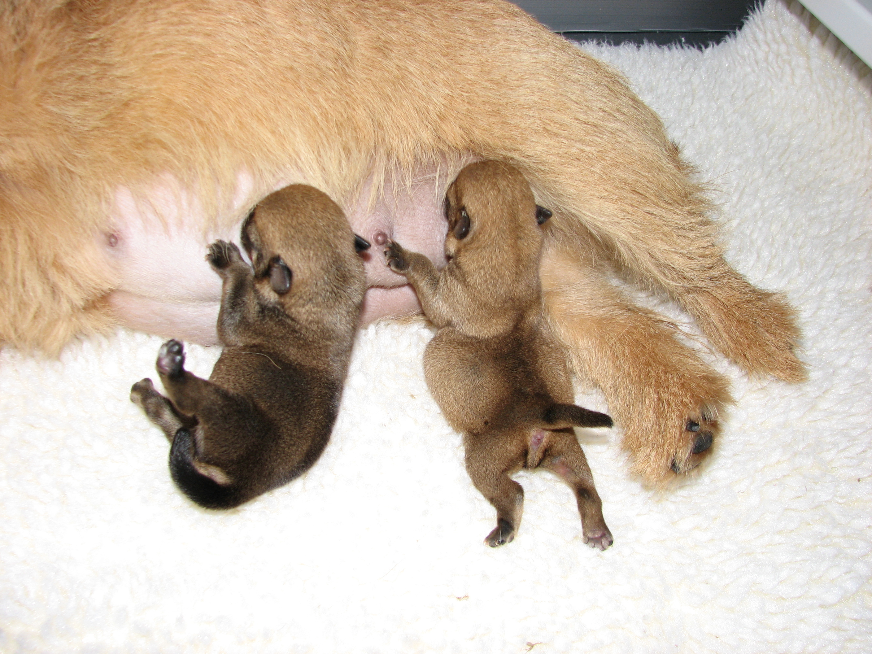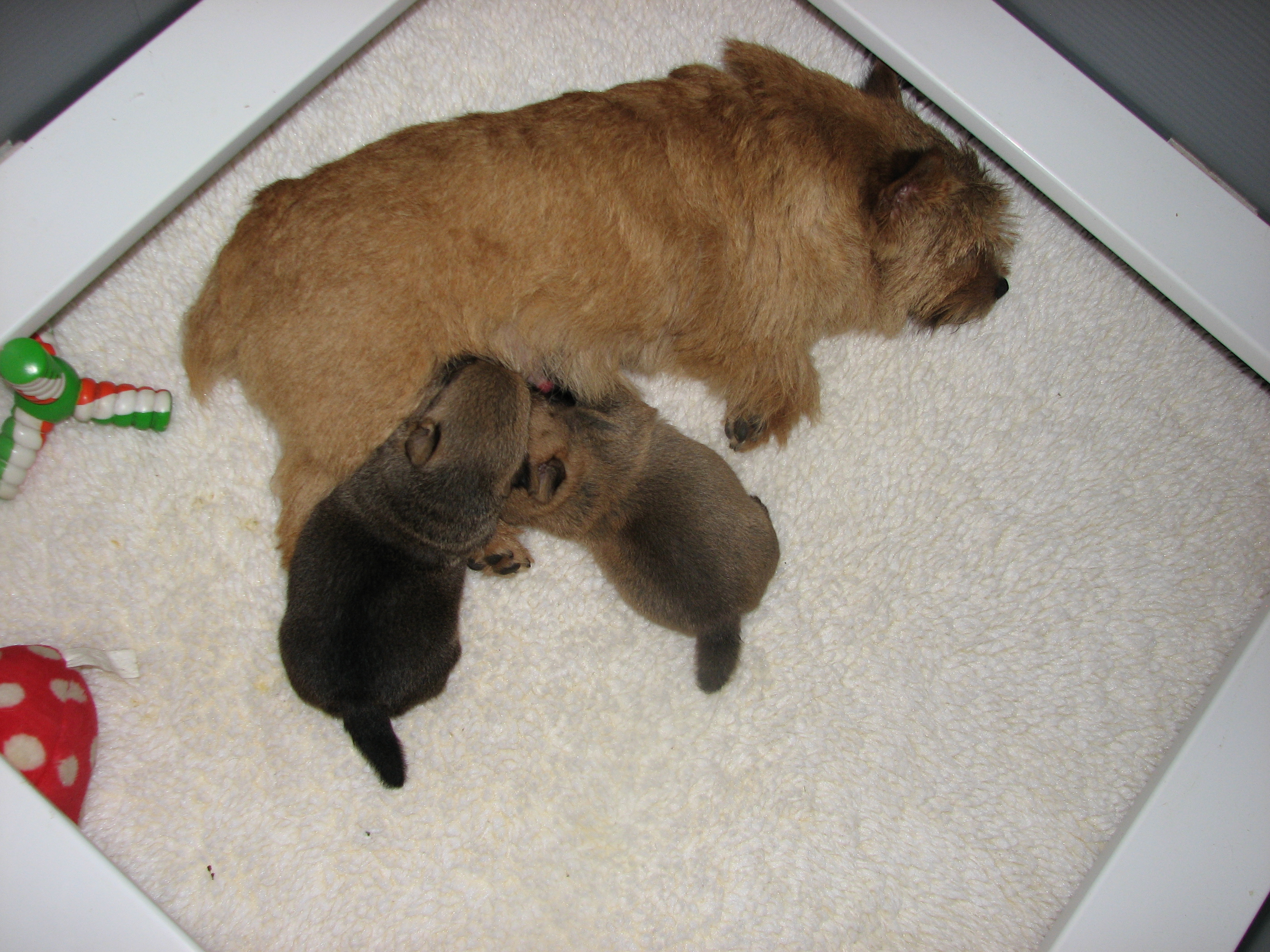 - The puppies are still nursing.