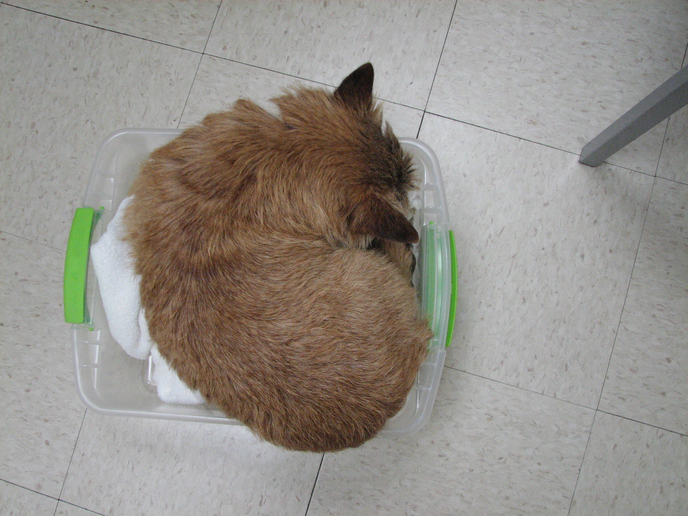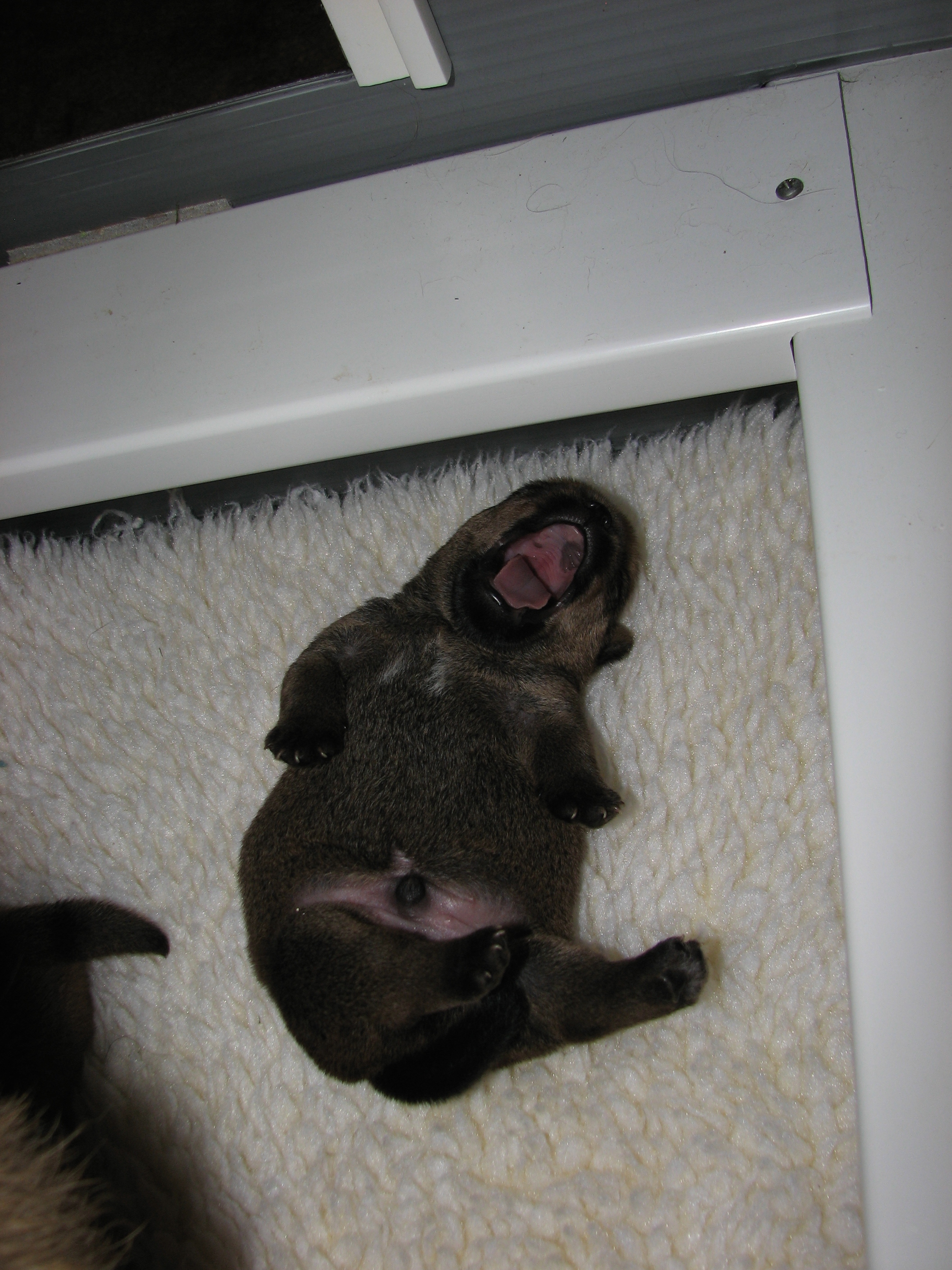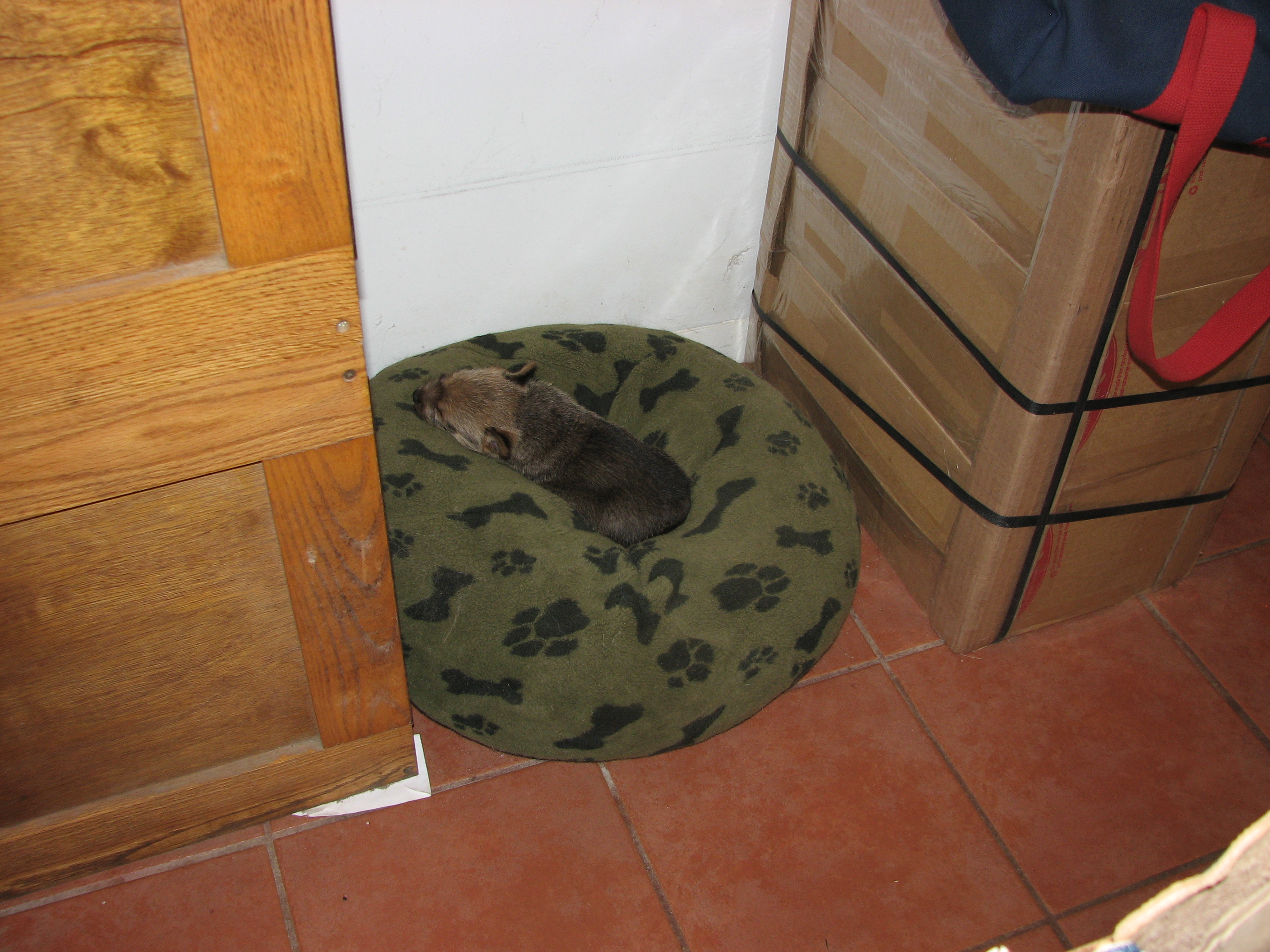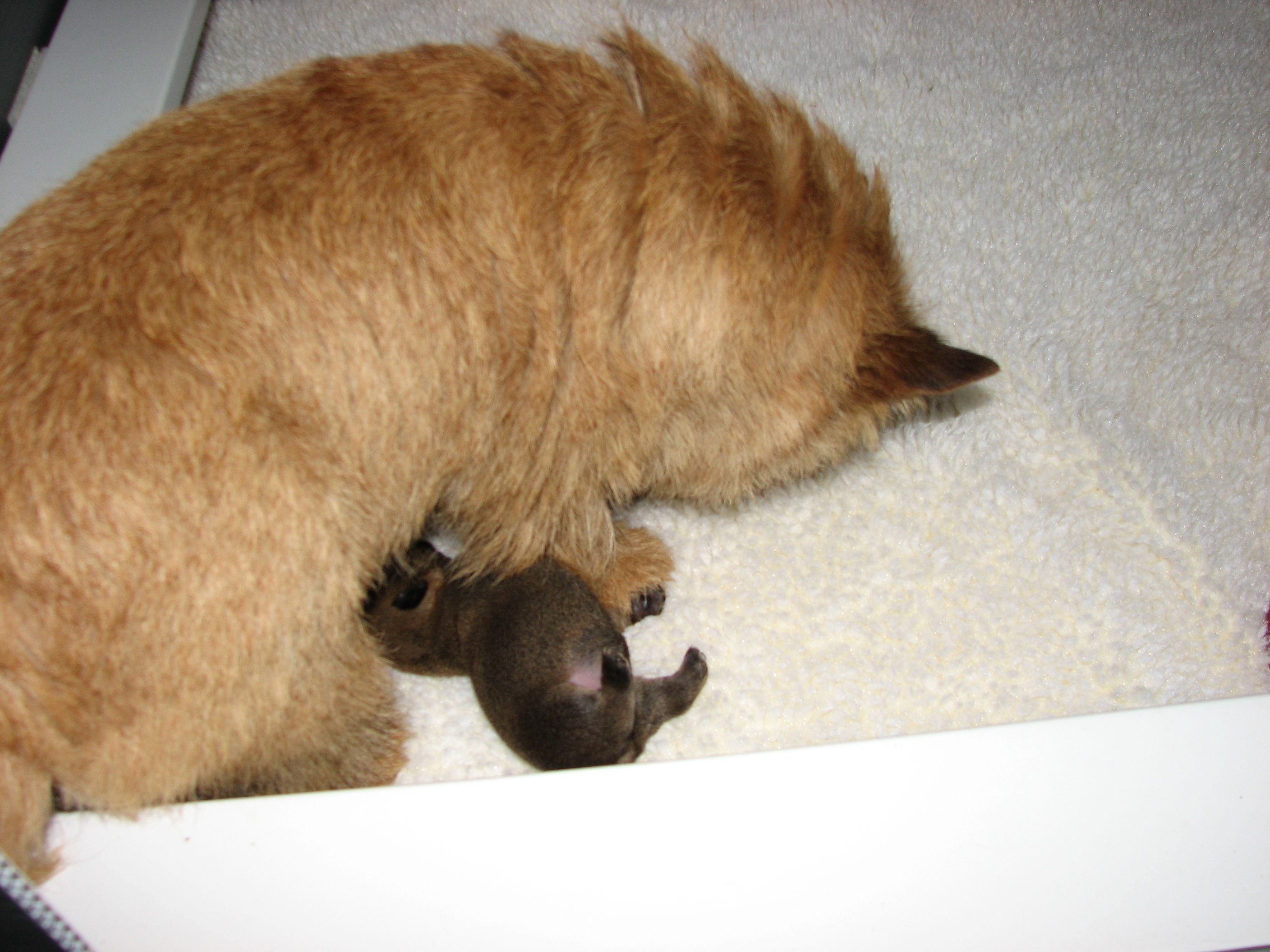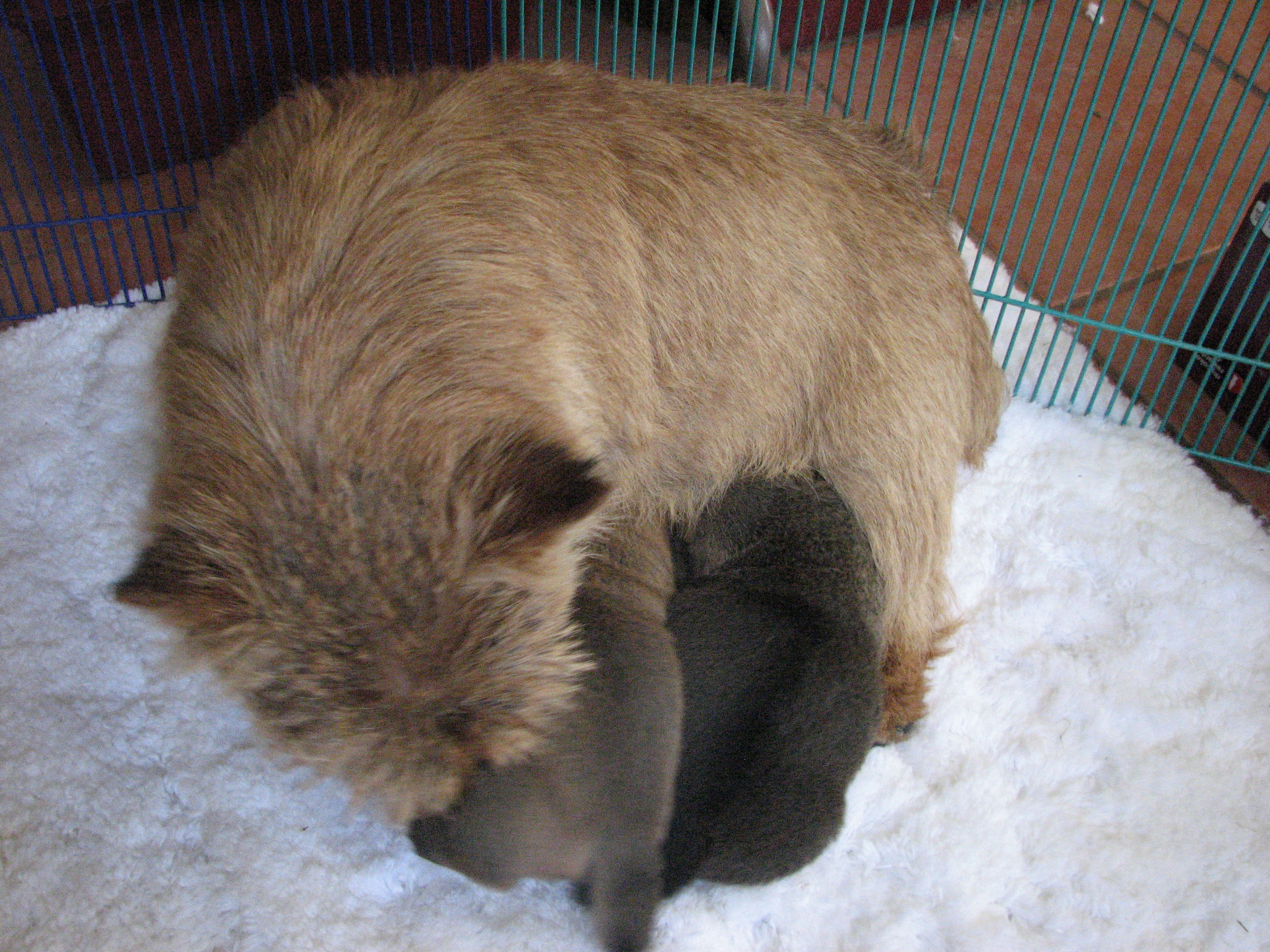 - Titus asleep in mommy's crate,