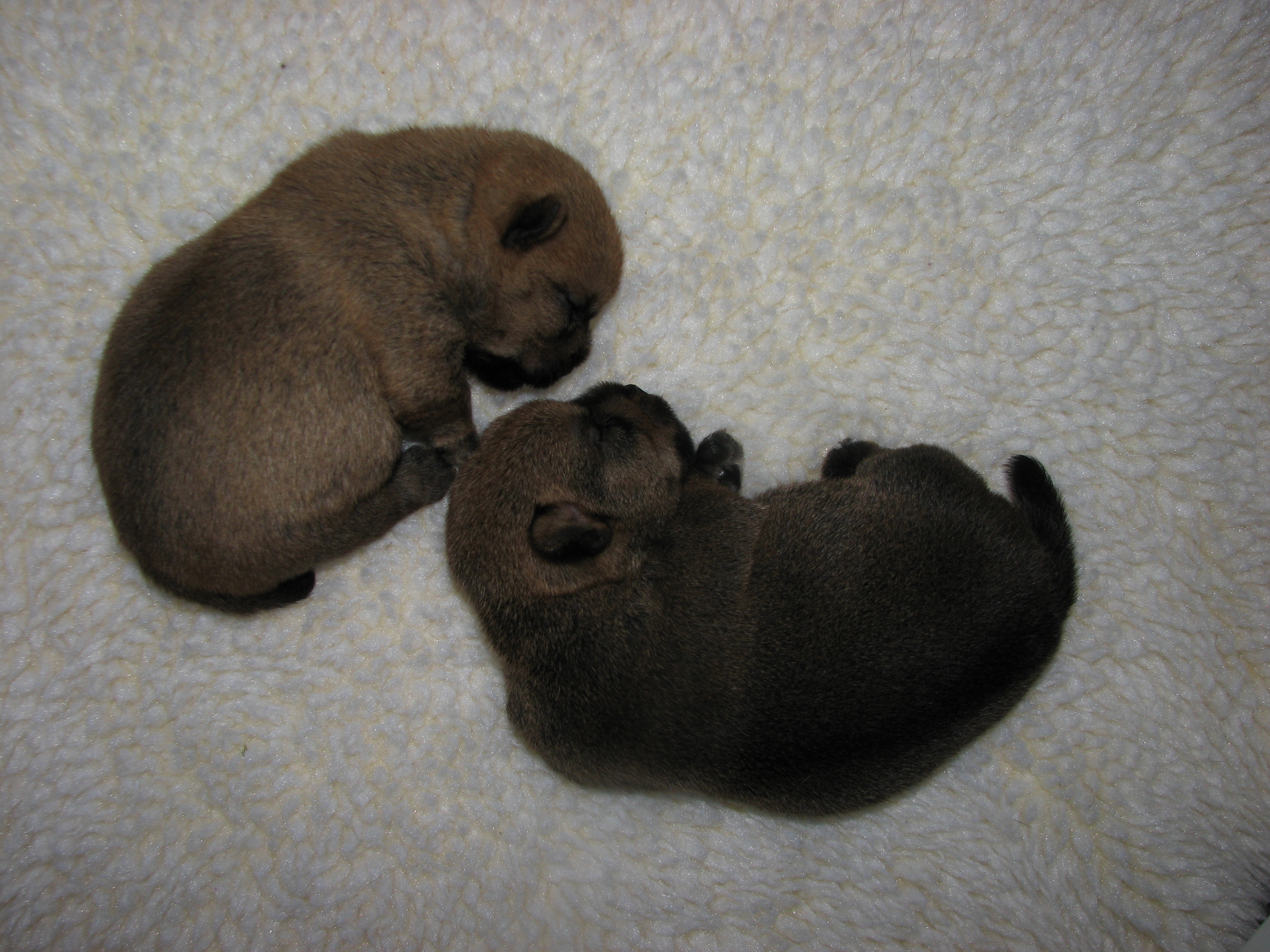 - The puppies can not see or hear yet, only smell.