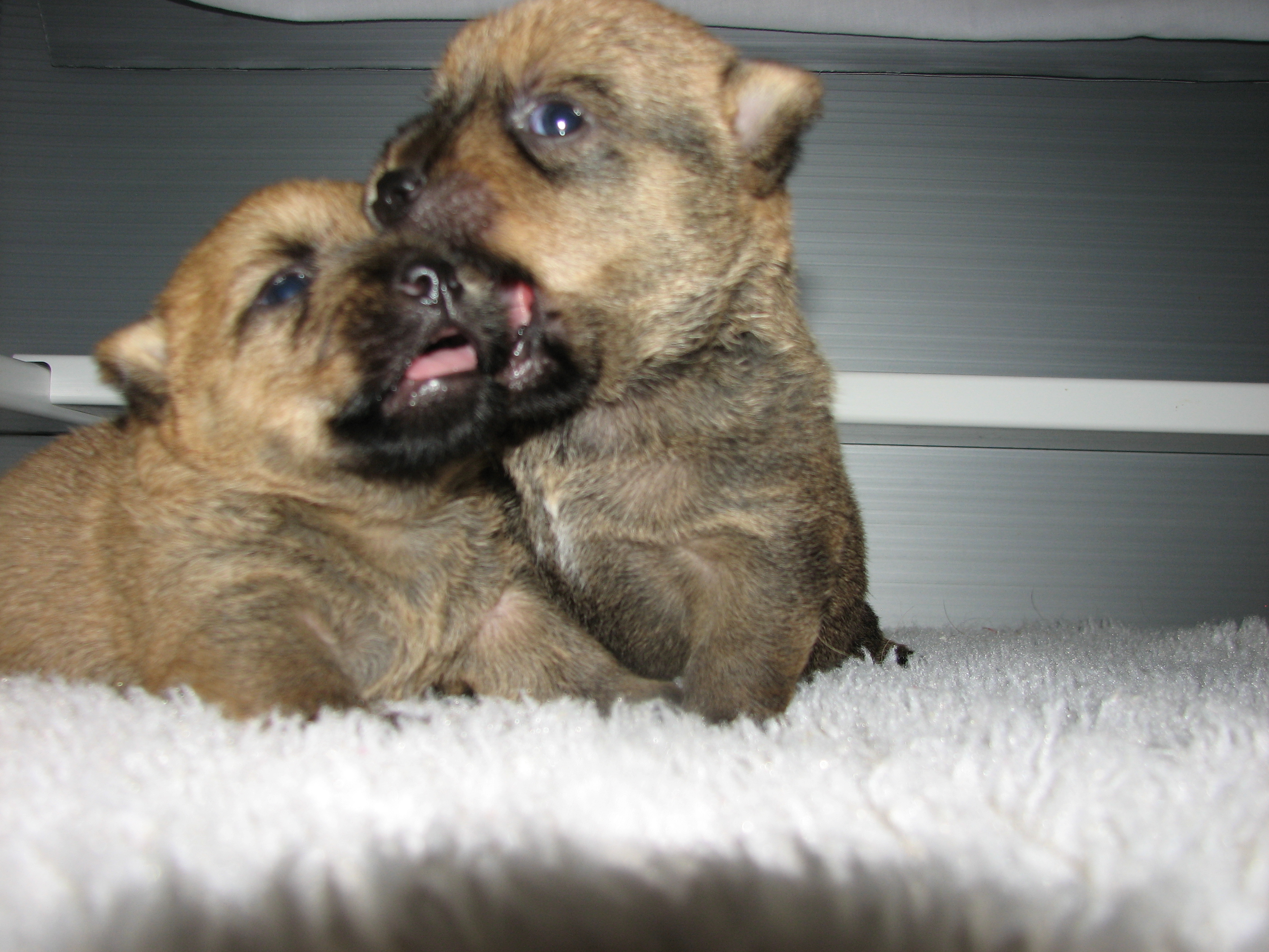 the puppies are loose and awake.
