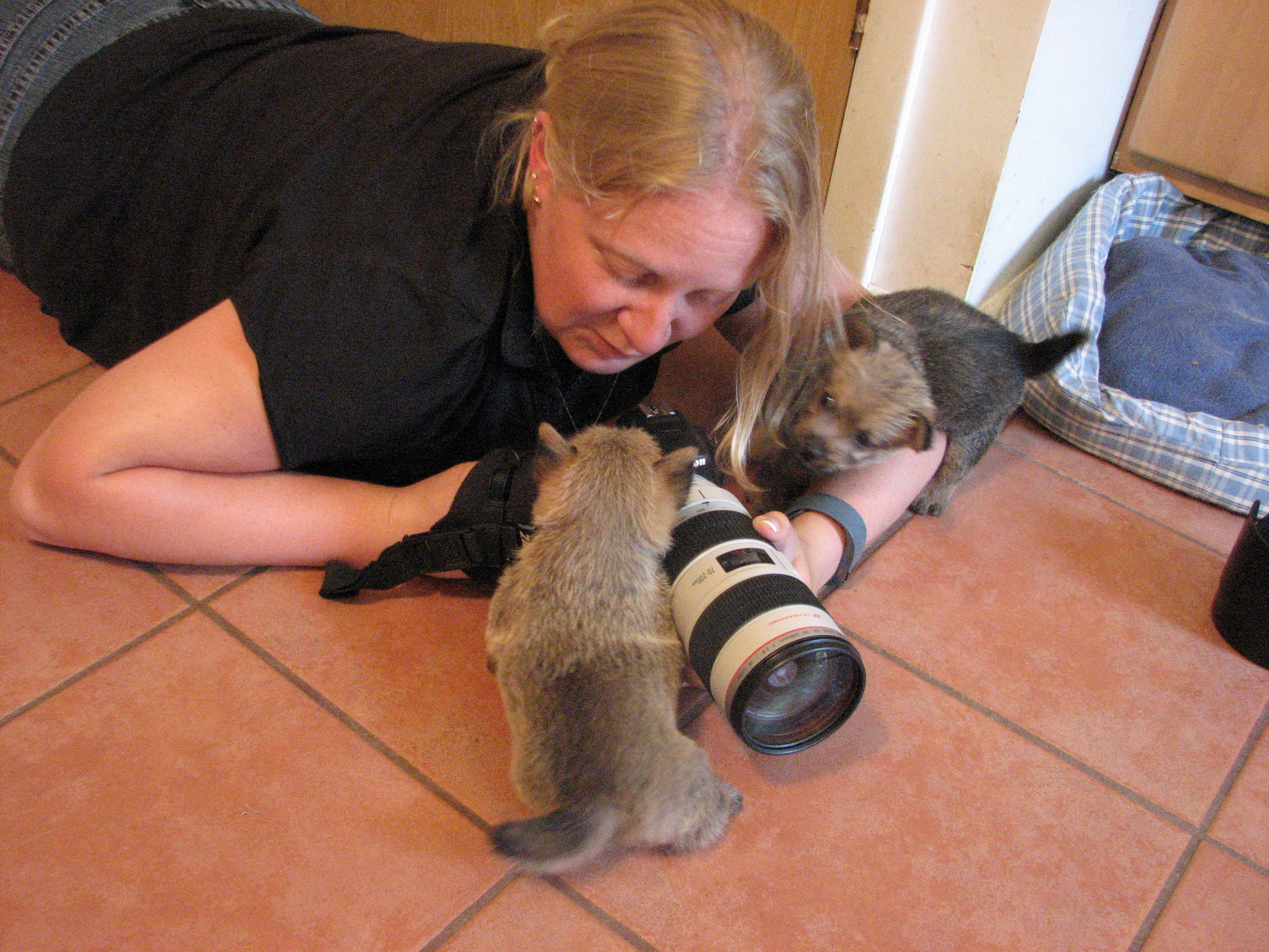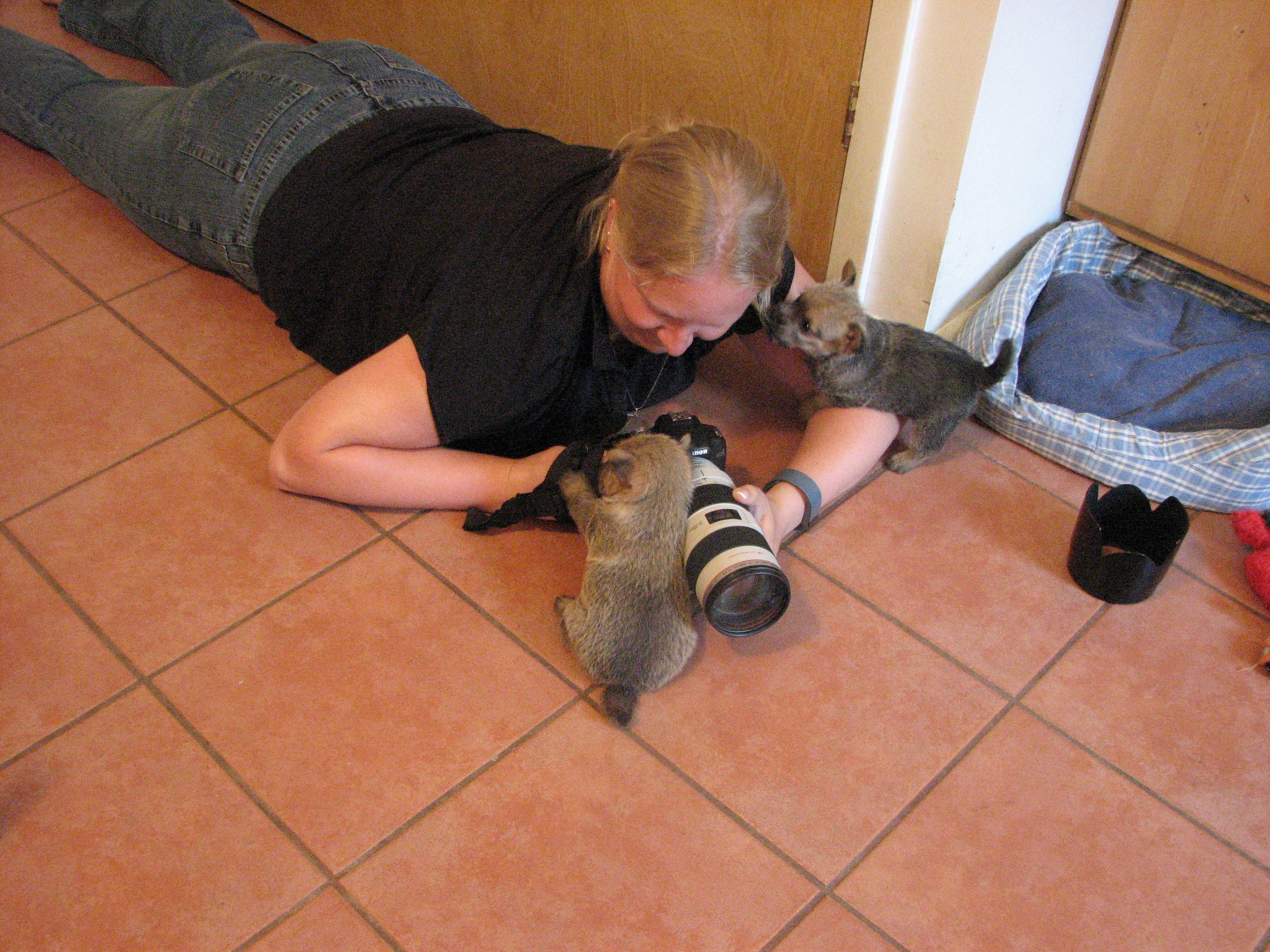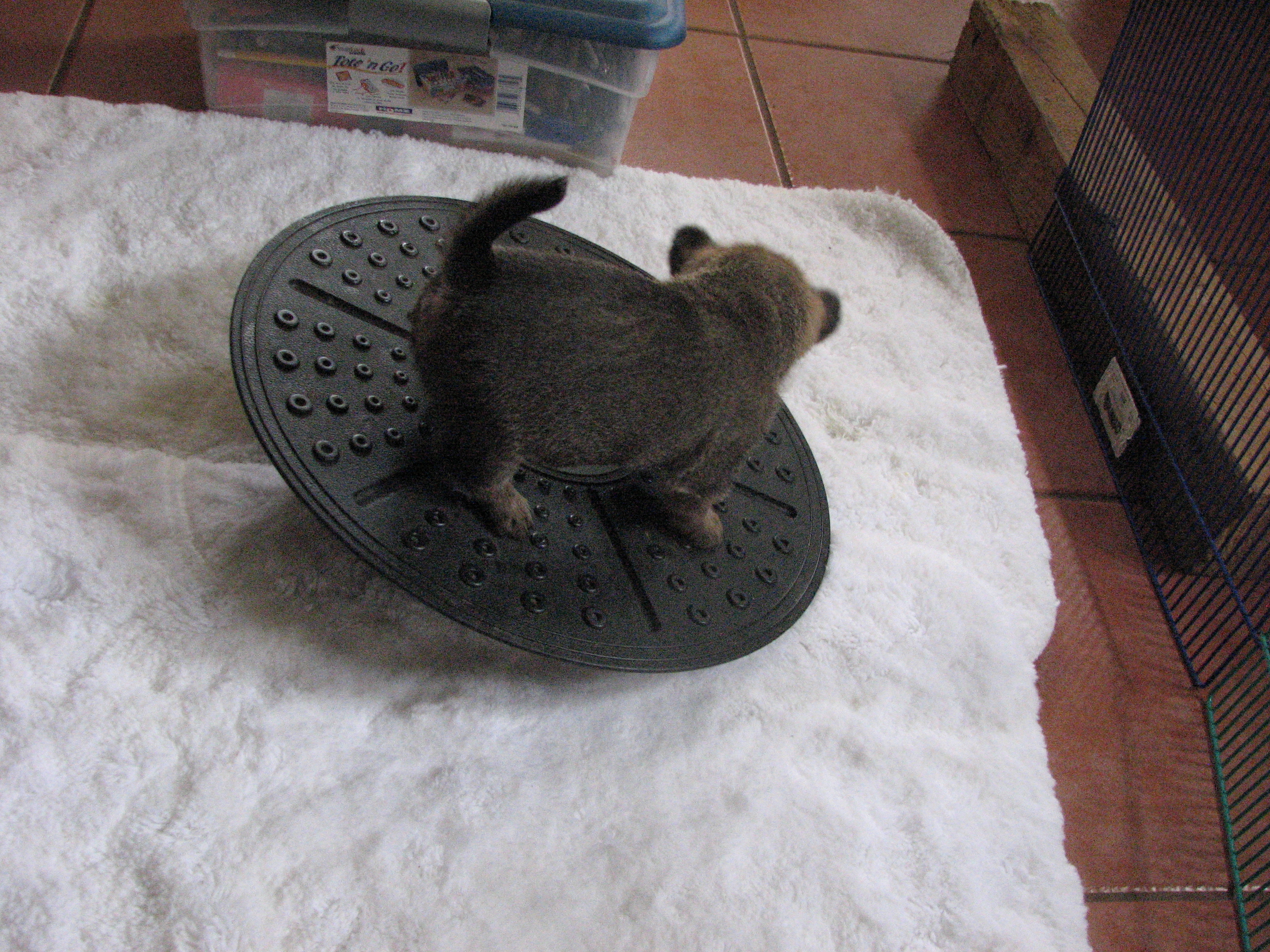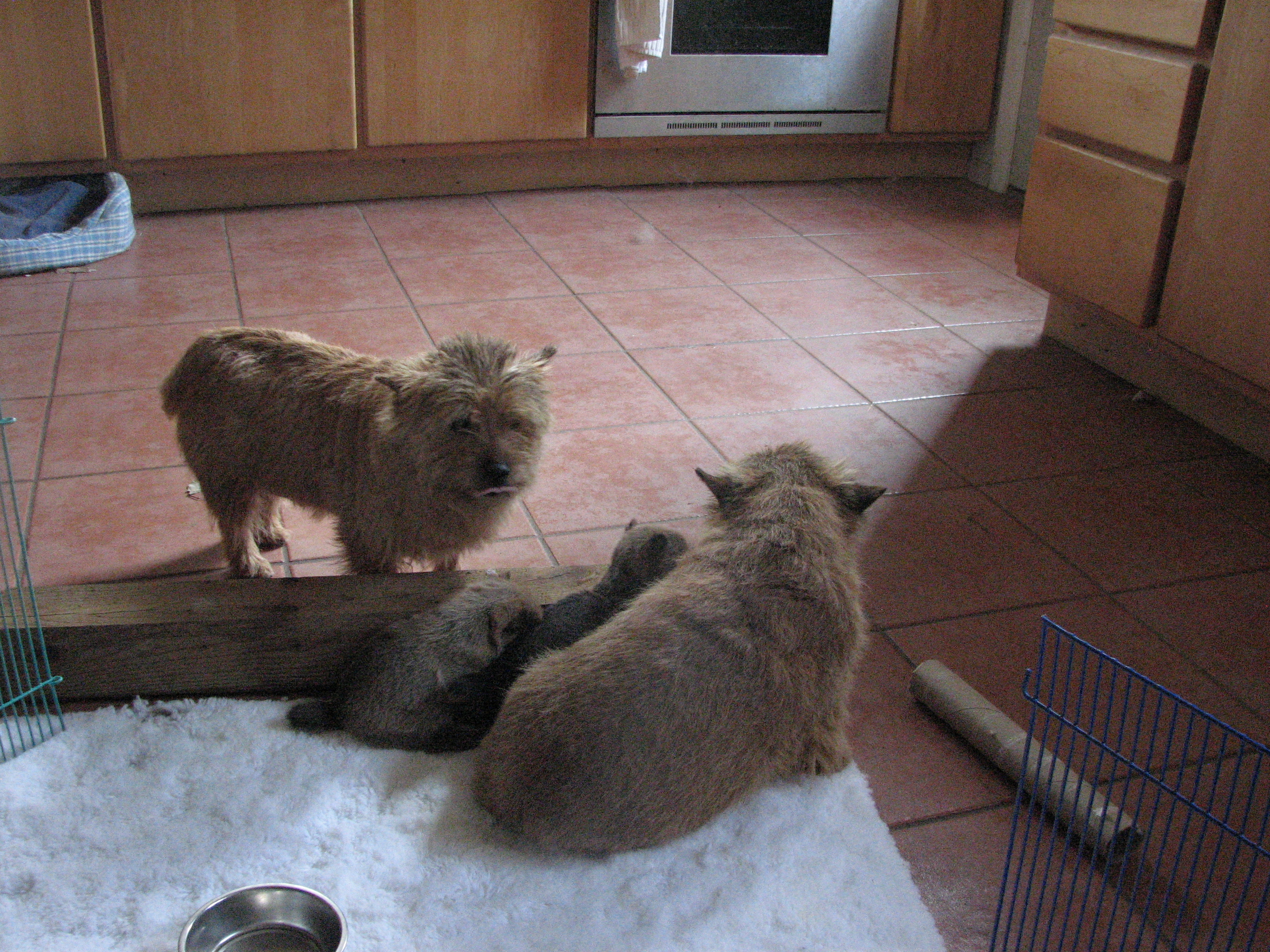 - I have been letting the puppies explore my kitchen.