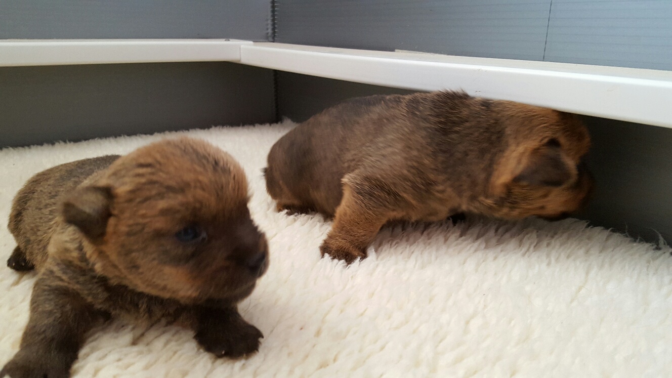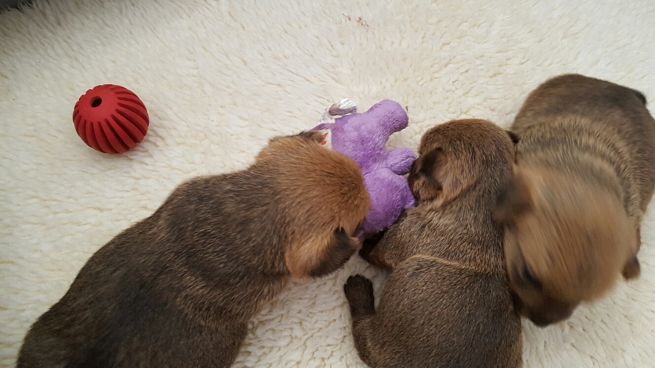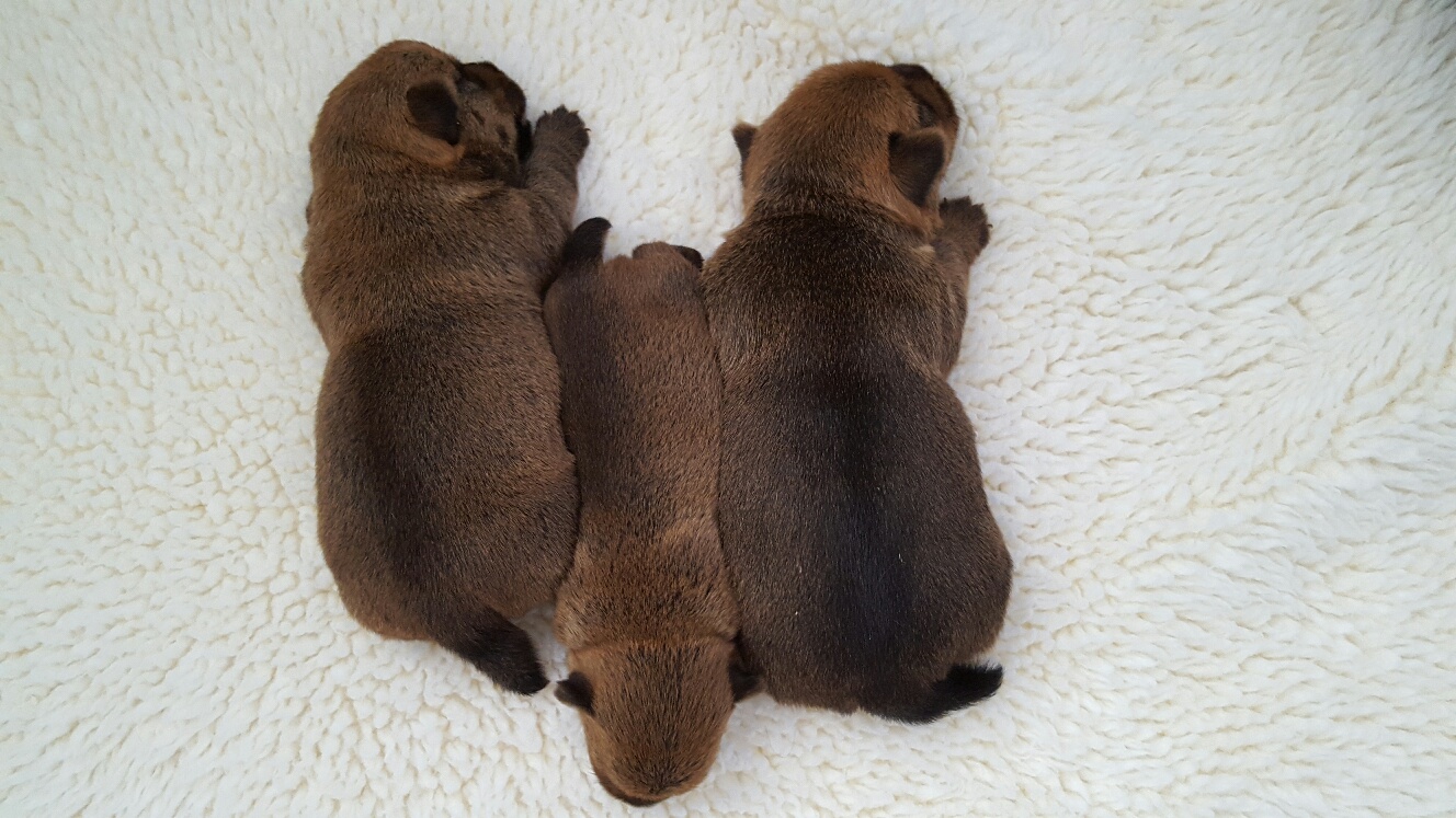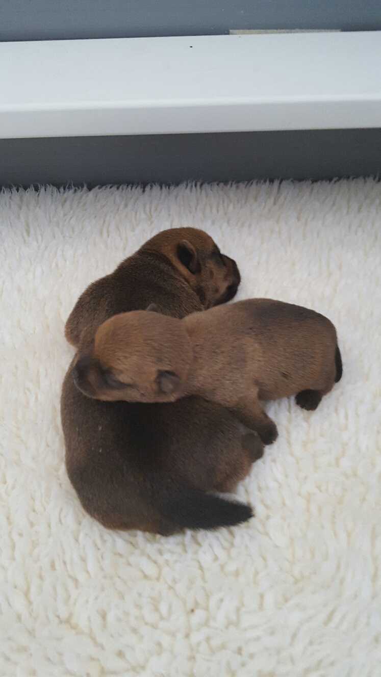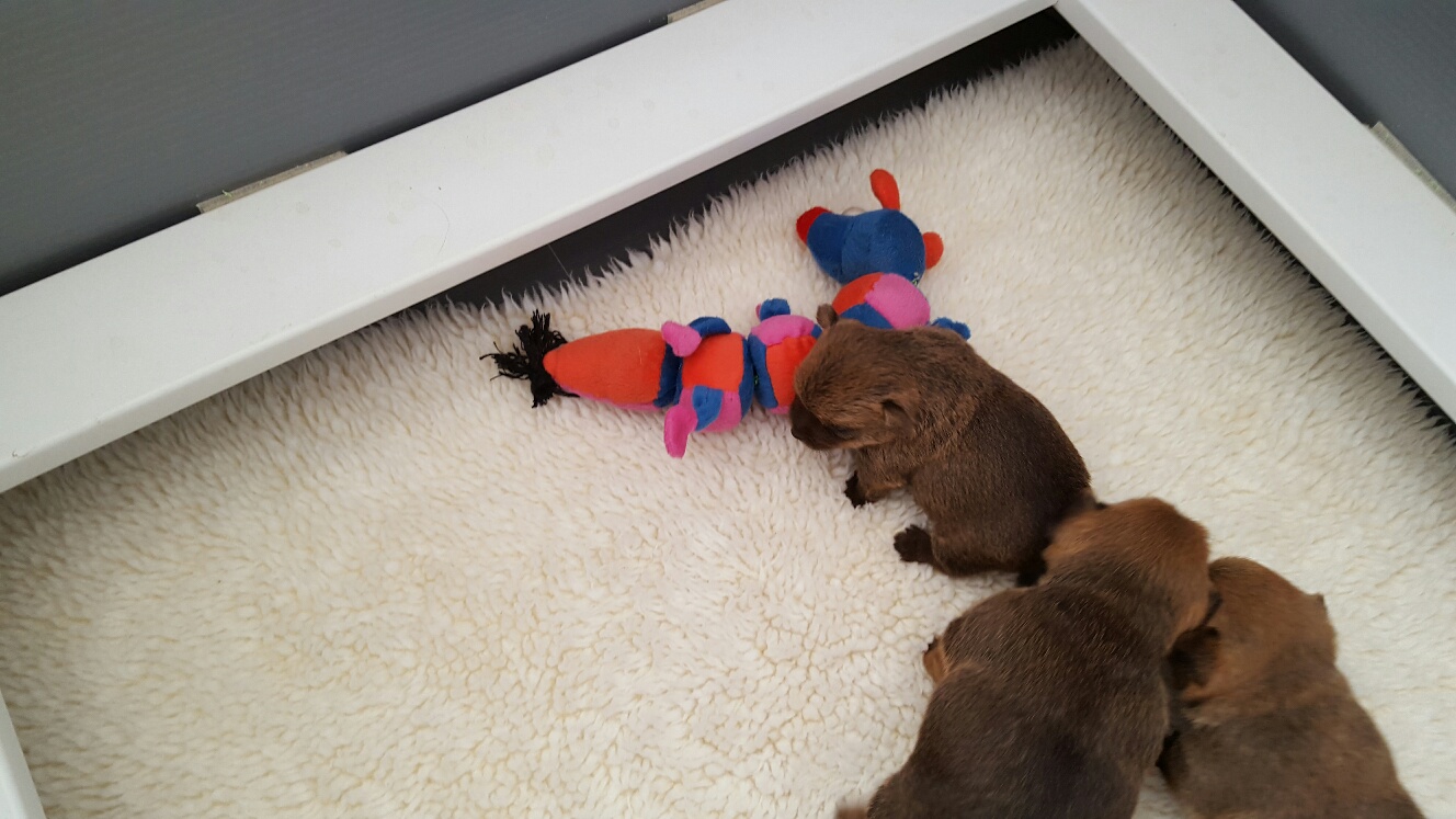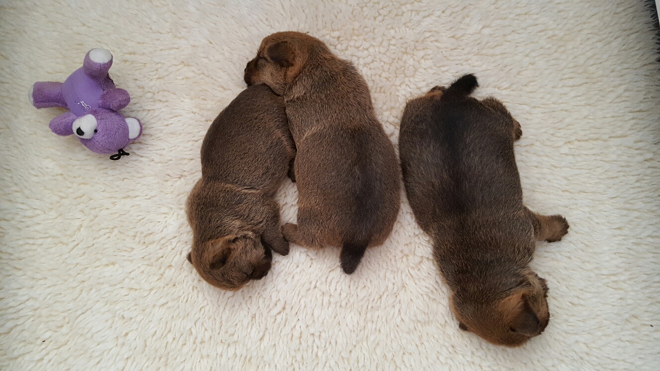 The puppies now weigh: little sister (515 g), boy (858 g), and big sister (704 g). Today little sister joined her siblings in the "over half-a-kilogram club".
