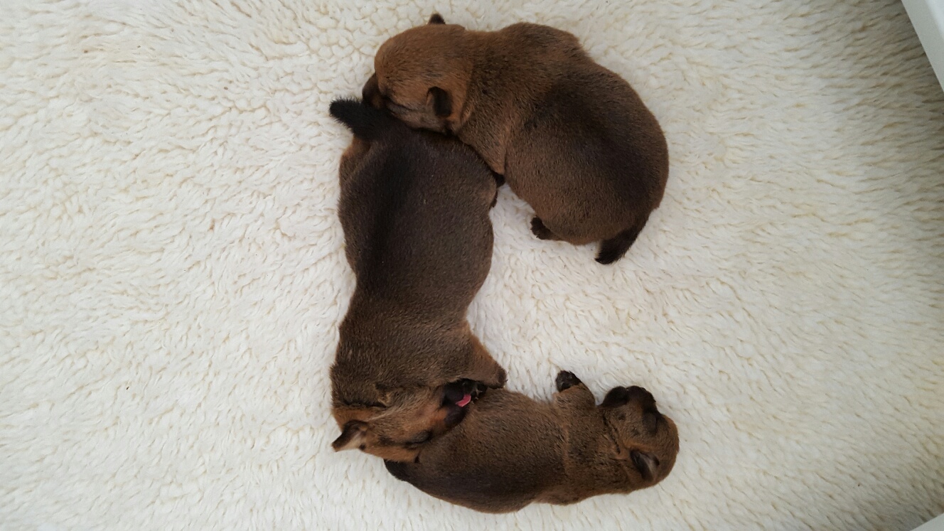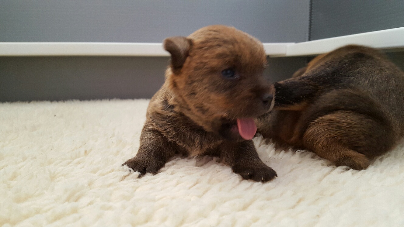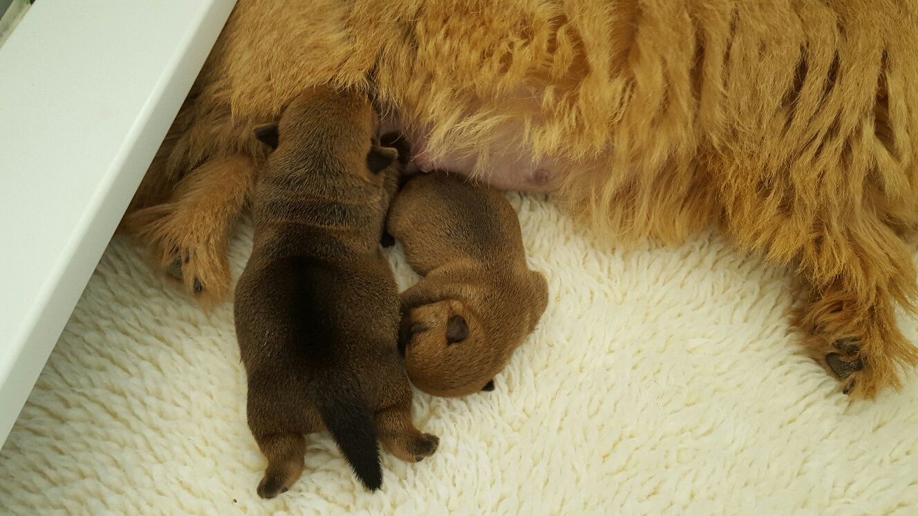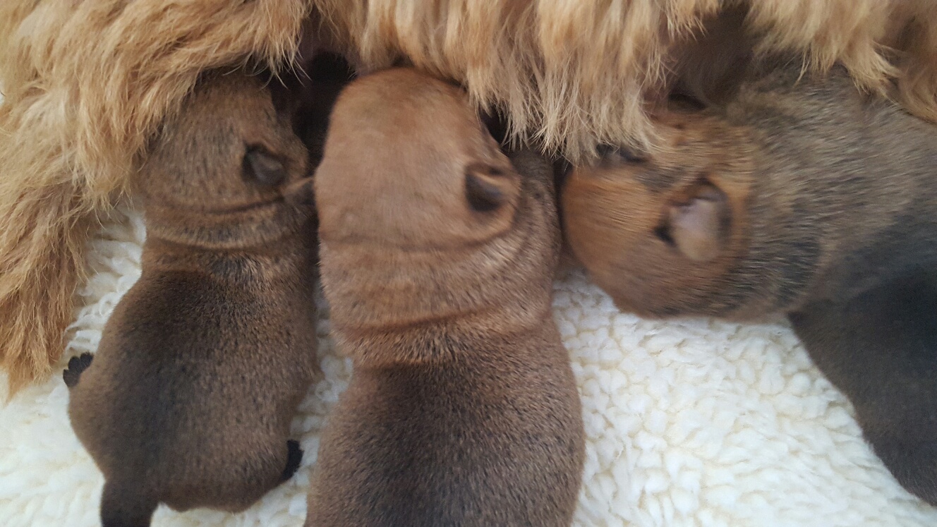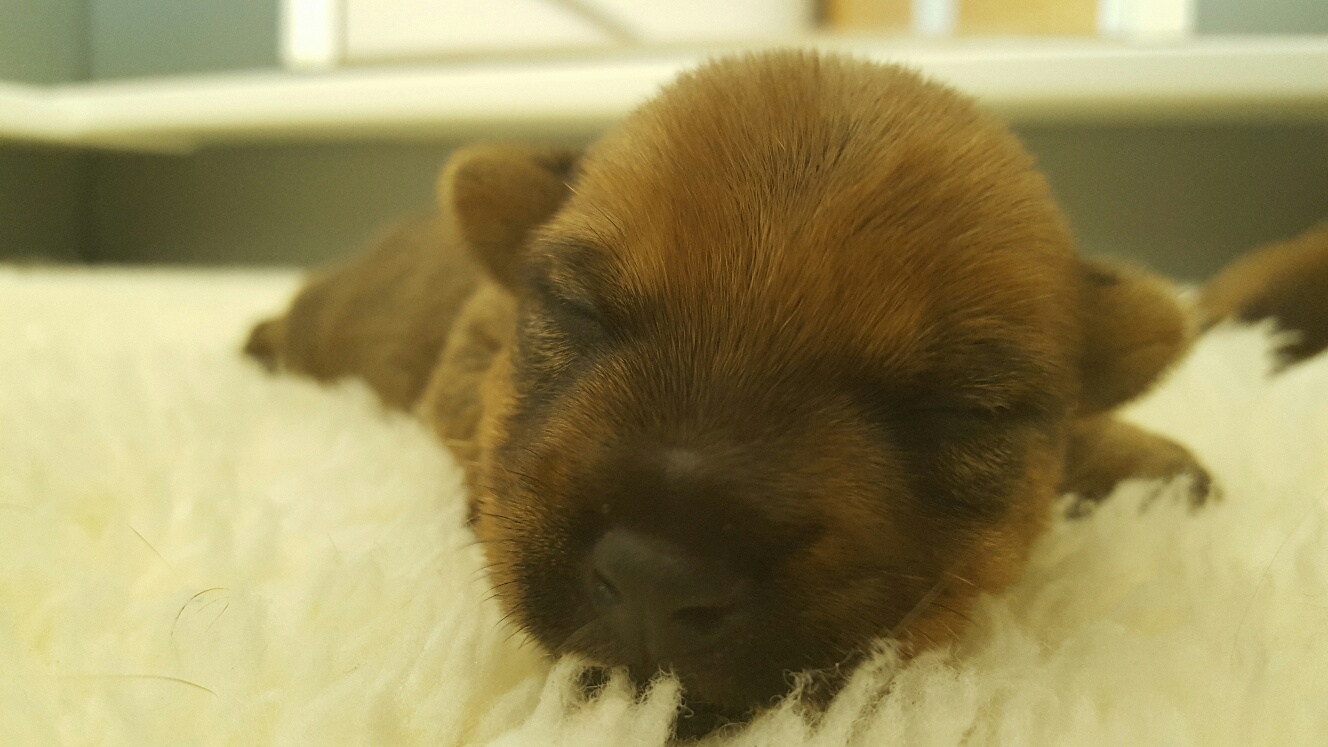 The puppies now weigh: little sister (515 g), boy (858 g), and big sister (704 g). Today little sister joined her siblings in the "over half-a-kilogram club".