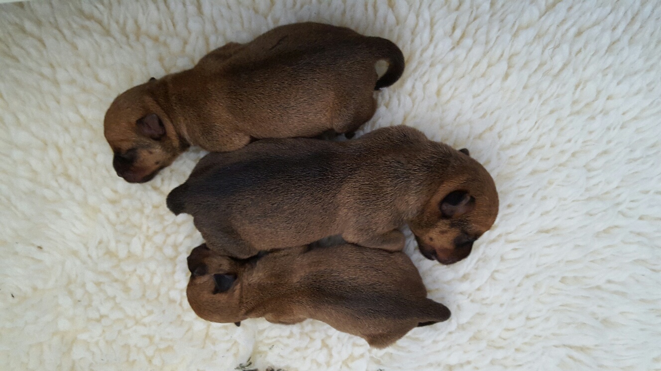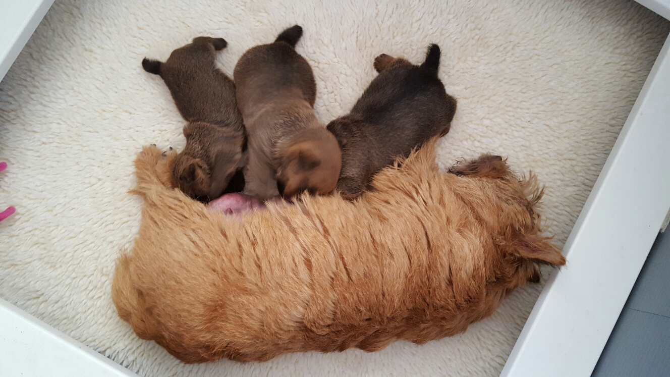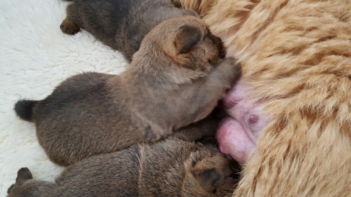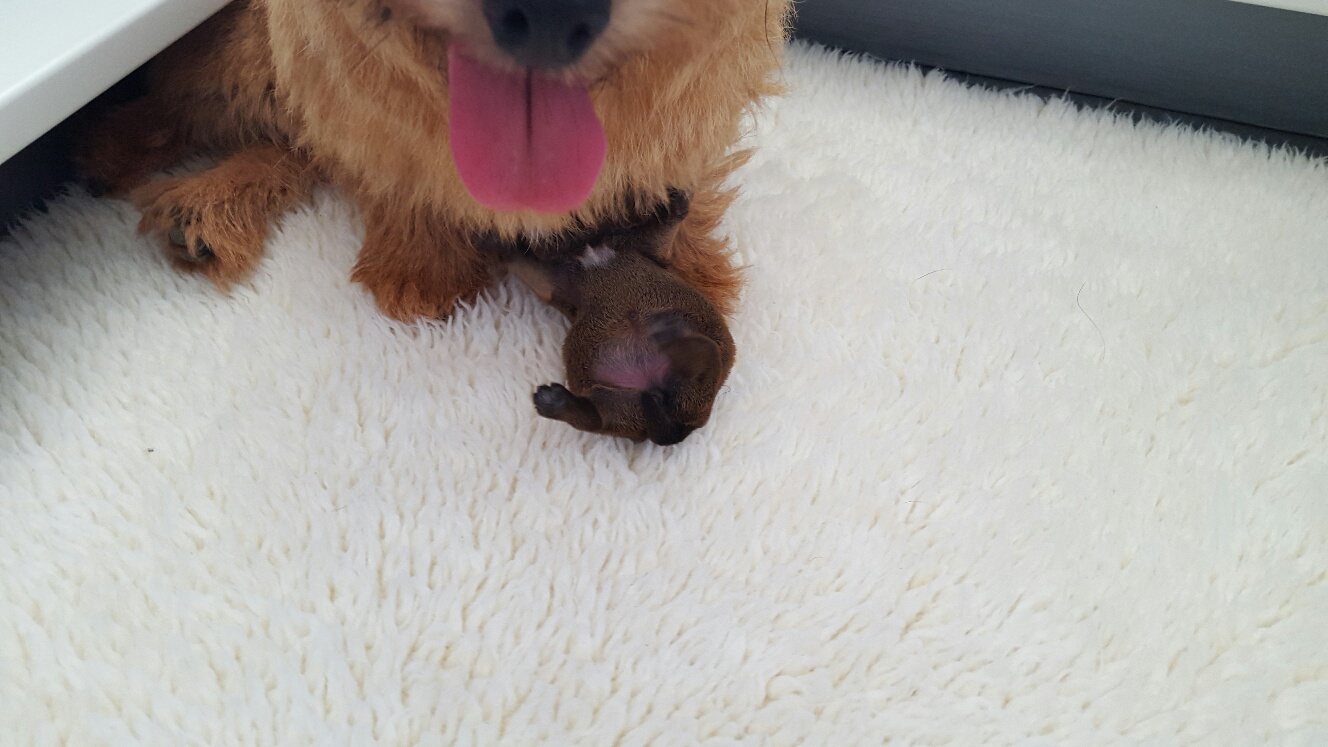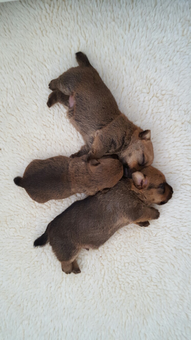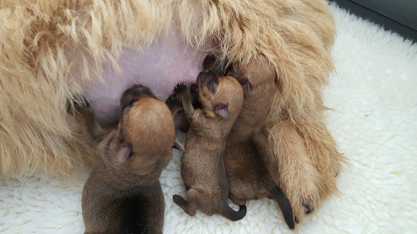 The puppies now weigh: little sister (515 g), boy (858 g), and big sister (704 g). Today little sister joined her siblings in the "over half-a-kilogram club".