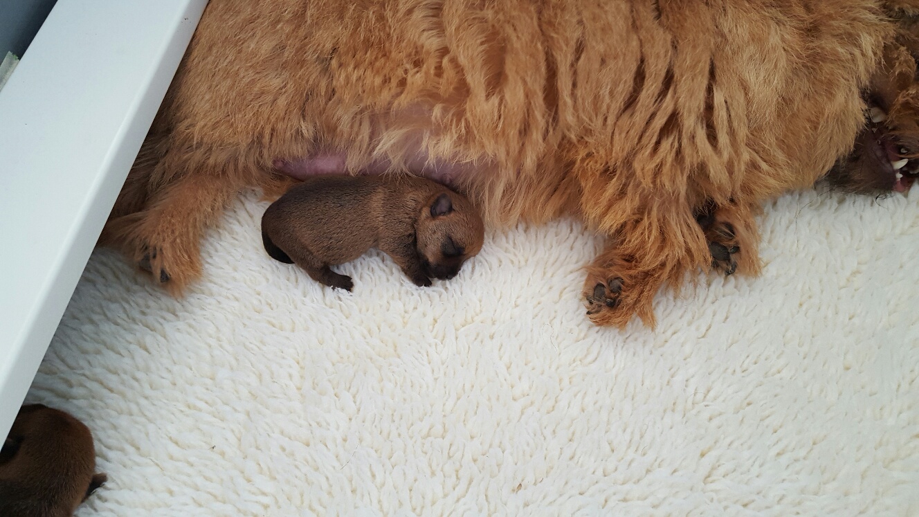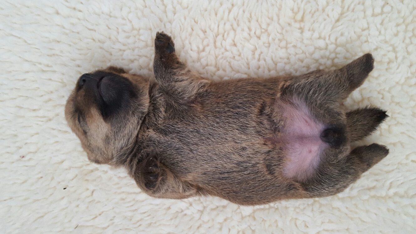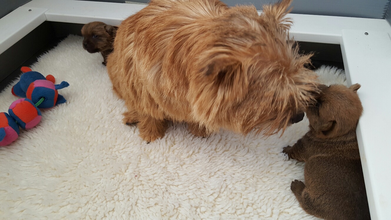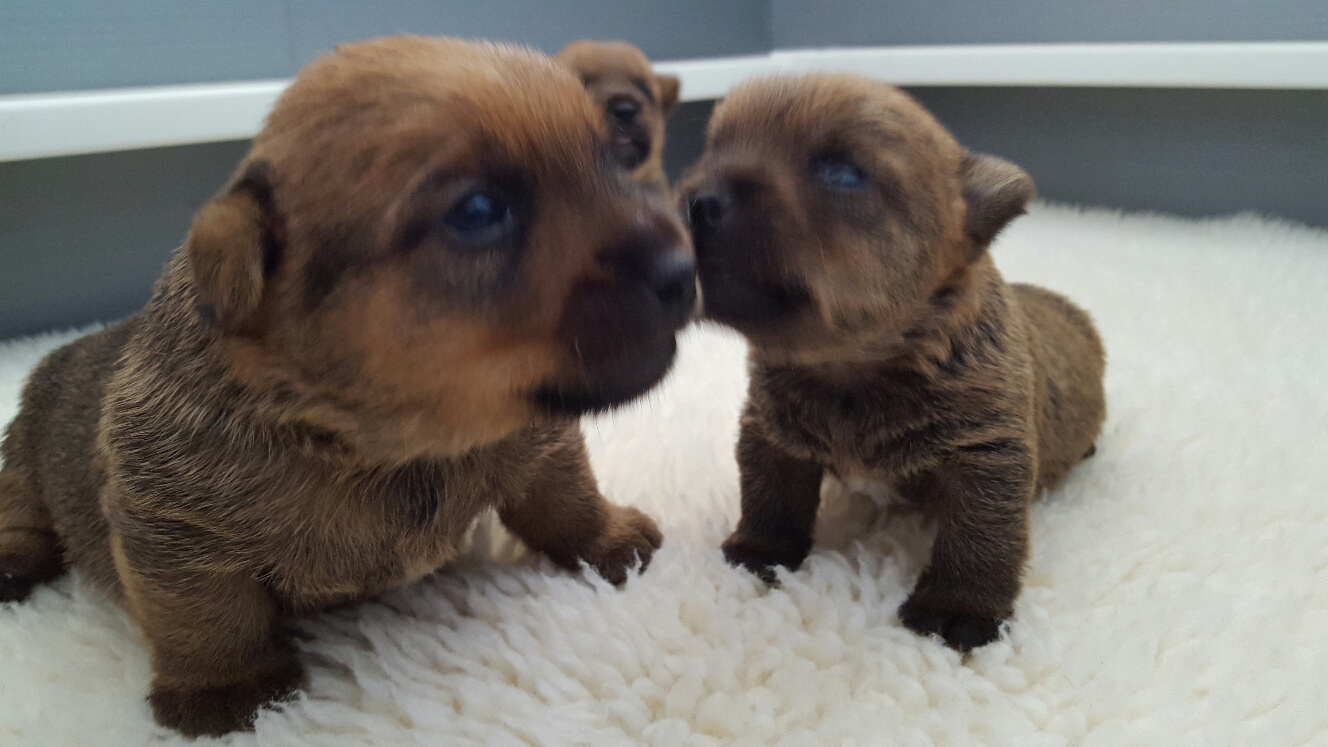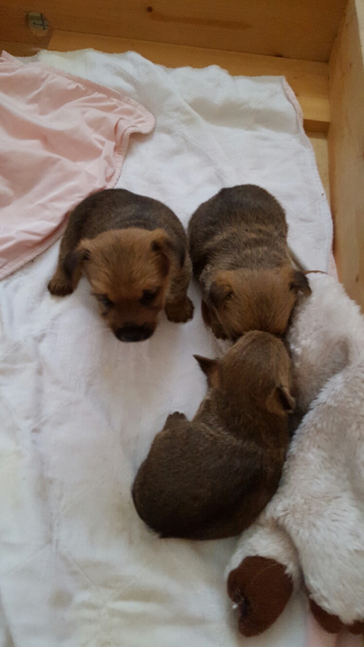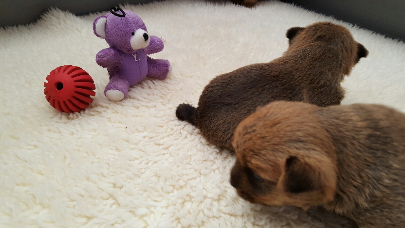 The puppies now weigh: little sister (515 g), boy (858 g), and big sister (704 g). Today little sister joined her siblings in the "over half-a-kilogram club".