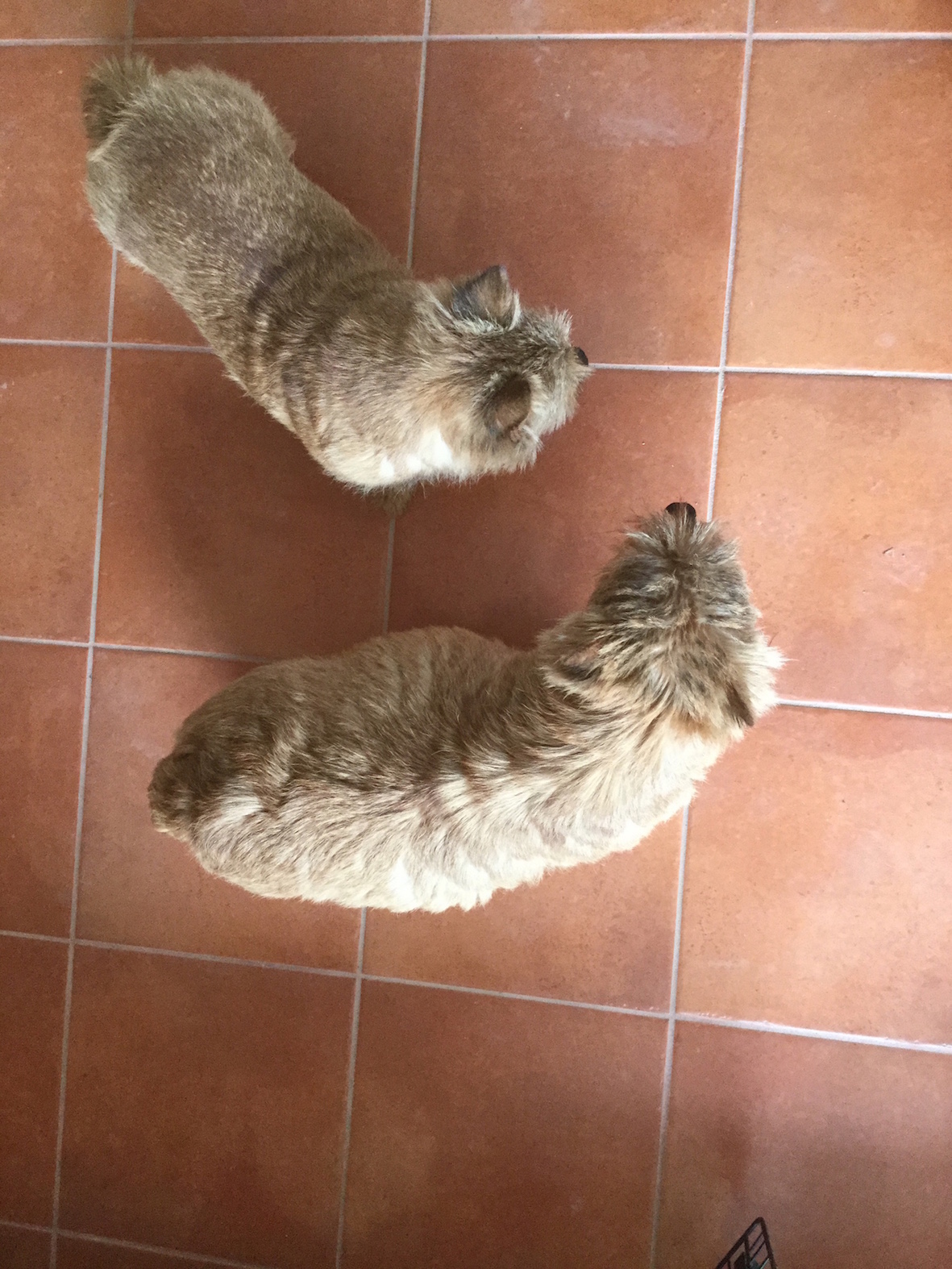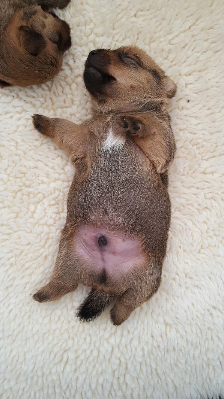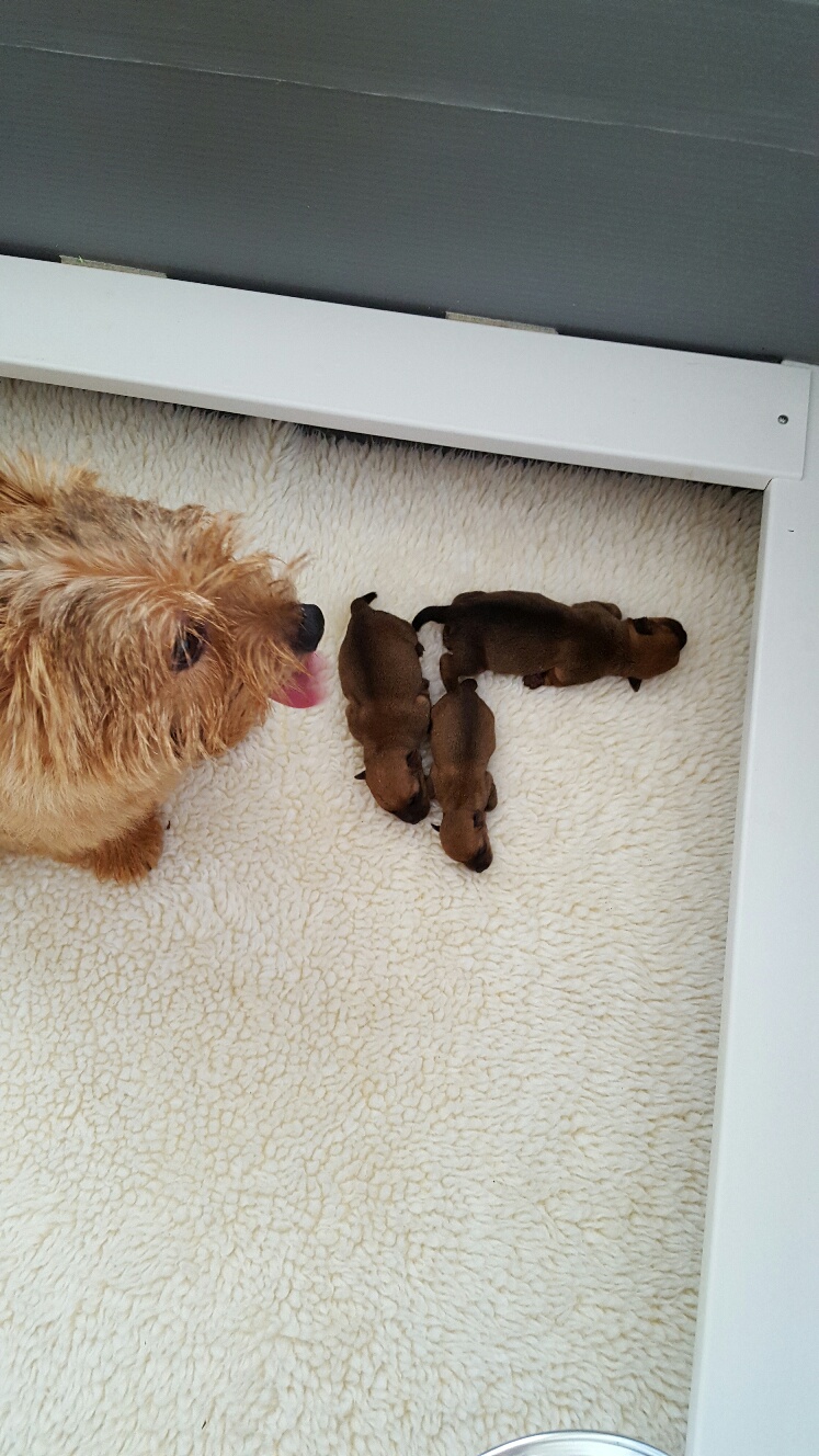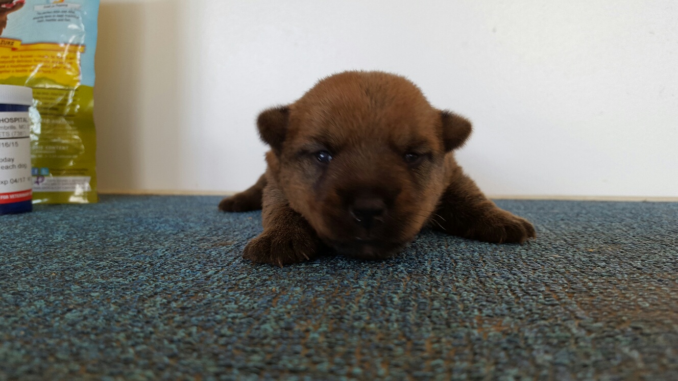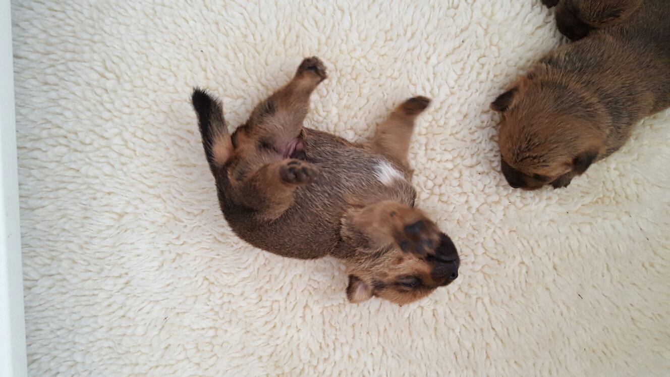 The puppies now weigh: little sister (515 g), boy (858 g), and big sister (704 g). Today little sister joined her siblings in the "over half-a-kilogram club".