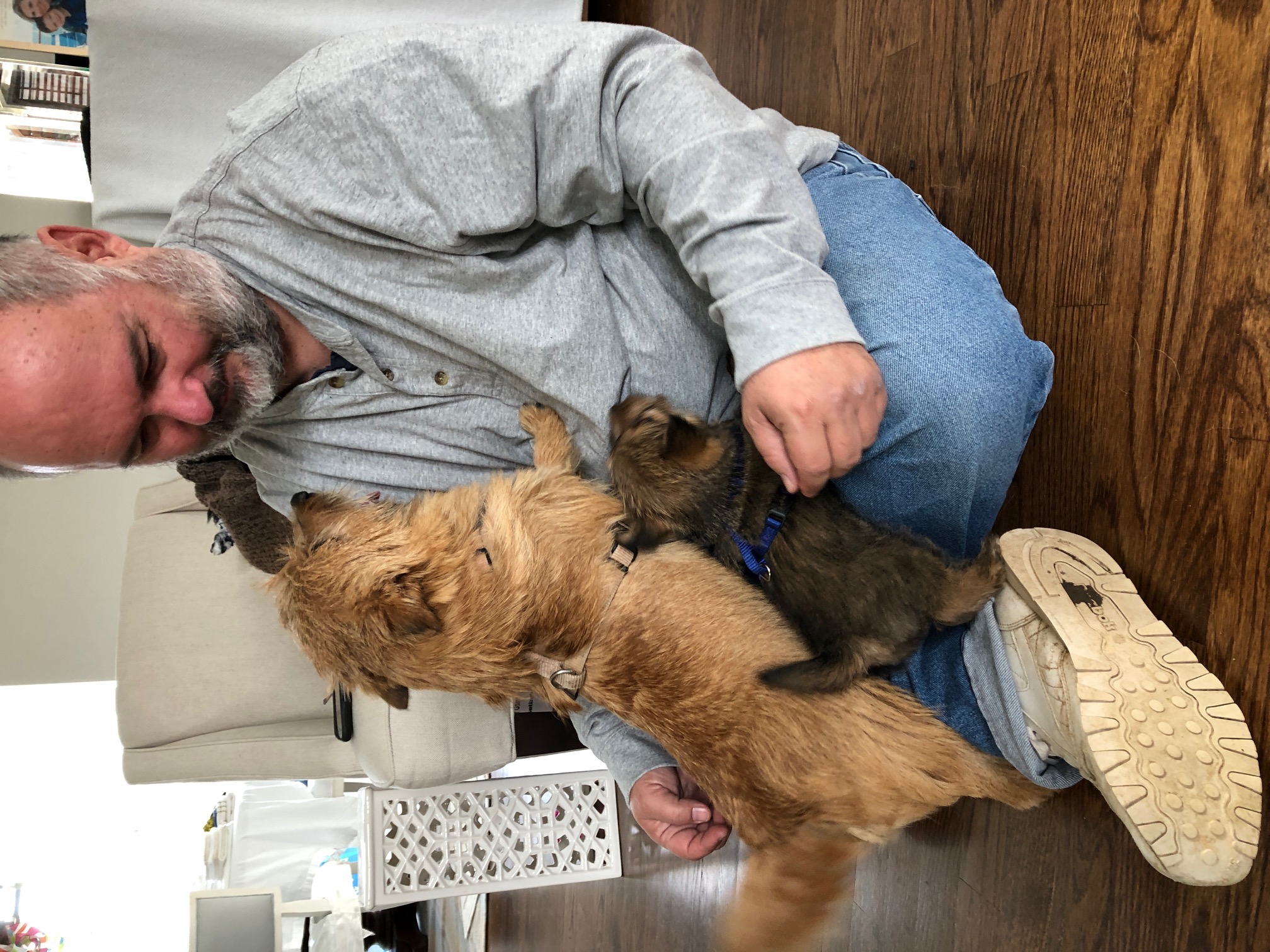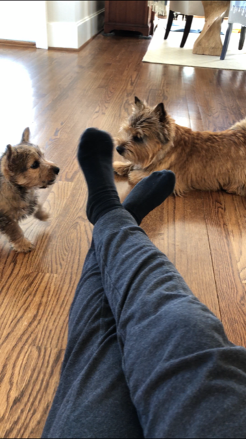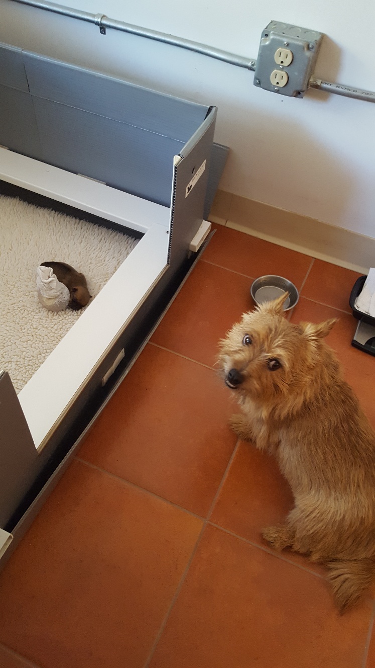 Sarah took Siri into her office (more socialization!) to