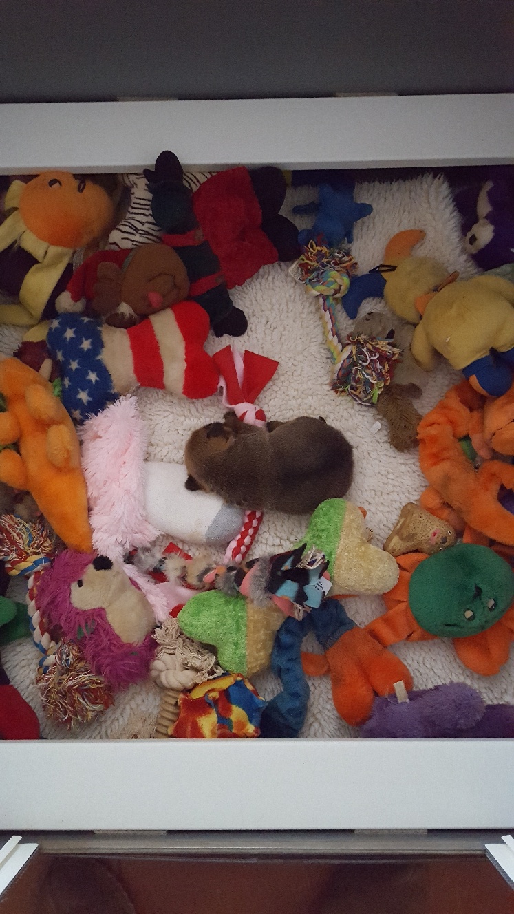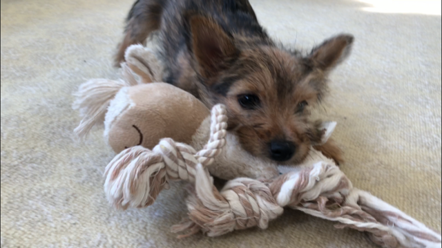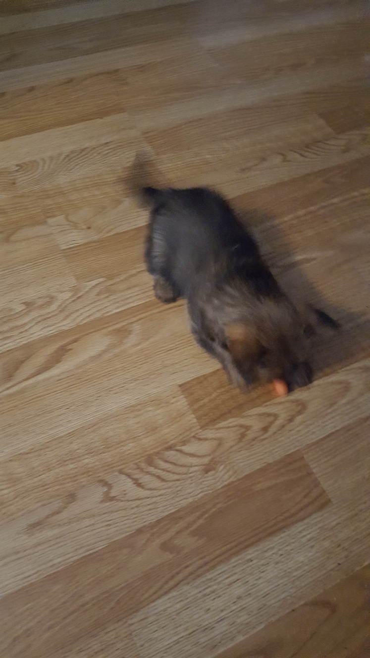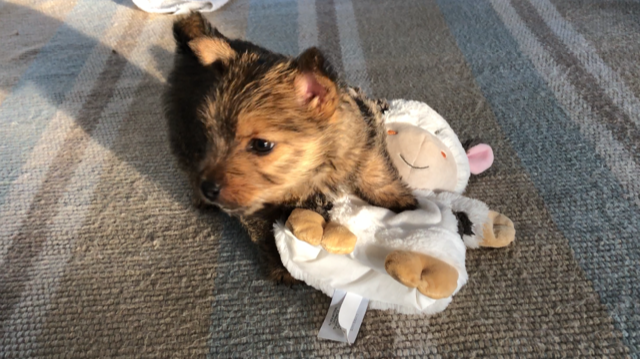 Here is Siri carrying around a little plush toy in her