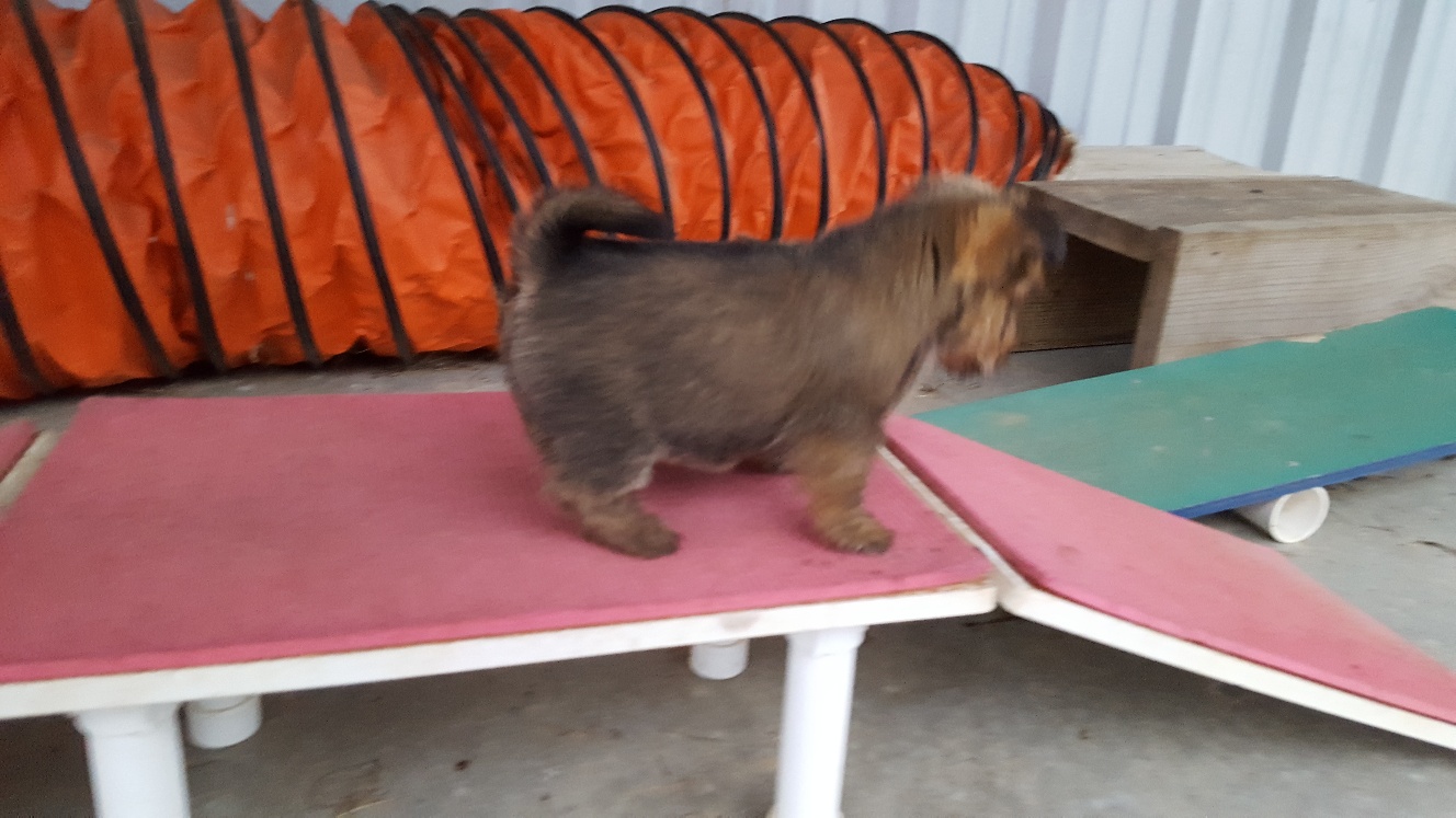 I have to judge this weekend, so Mandy and the puppy went to stay with some friends, and I took the rest of my dogs to my petsitter. Here are Mandy and puppy in their new temporary home.