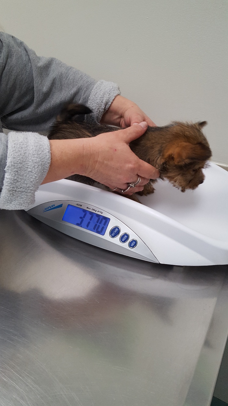 When we got home, I found that the puppy weighed 470 grams. From my friends' notes, the puppy doubled her birth weight on 30 November, and weighed 428 grams when she turned two weeks old.