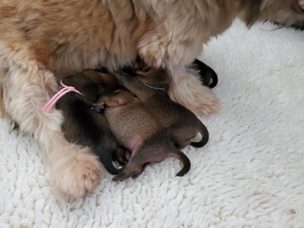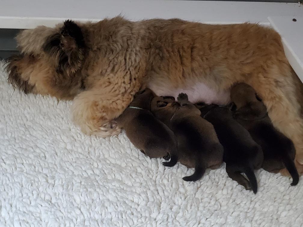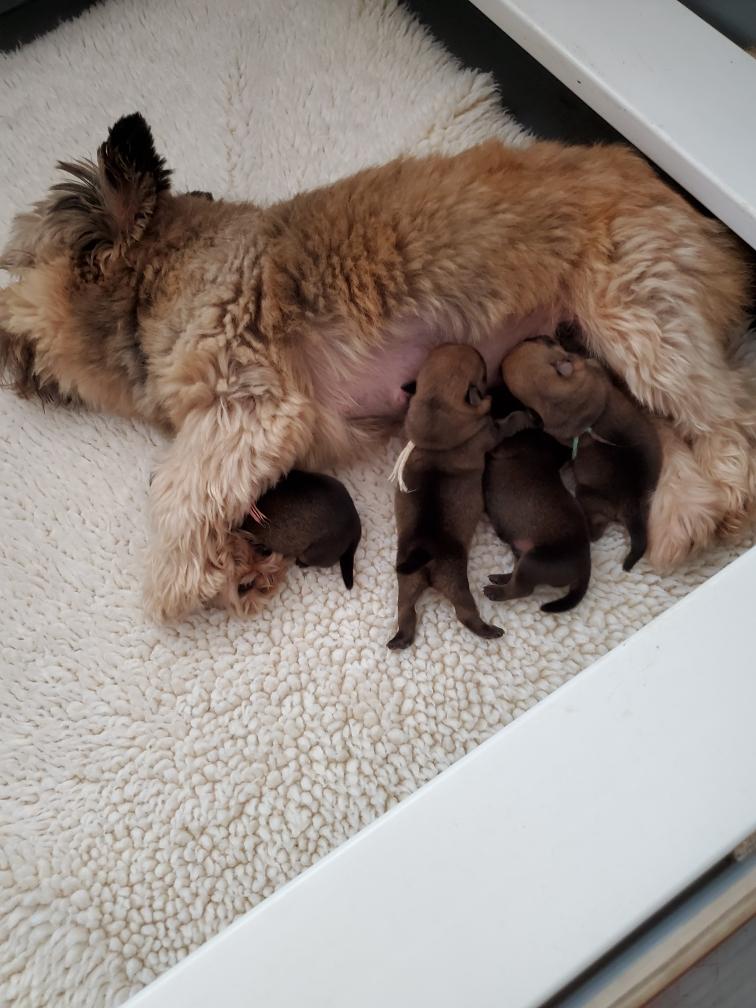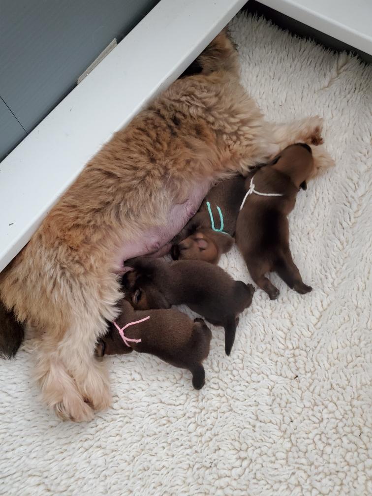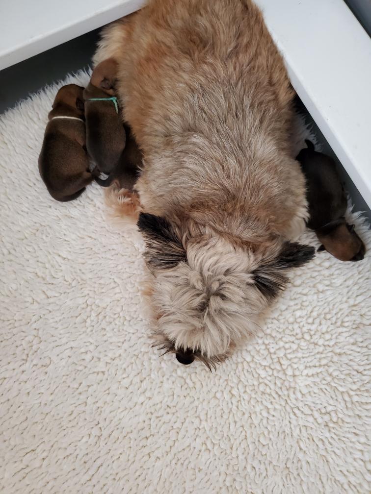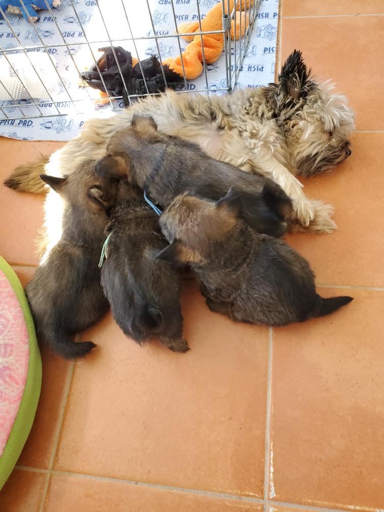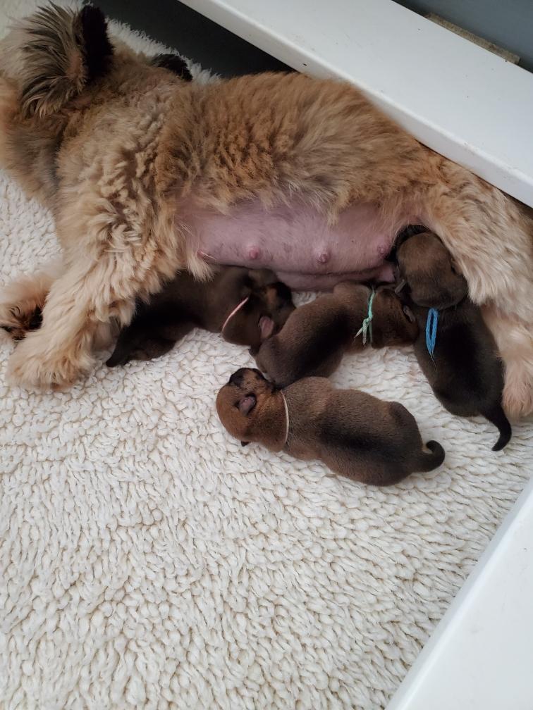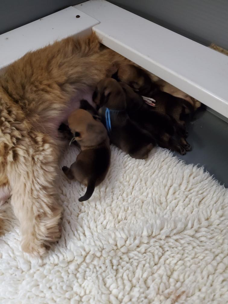 Polly later in the day nursing the puppies.