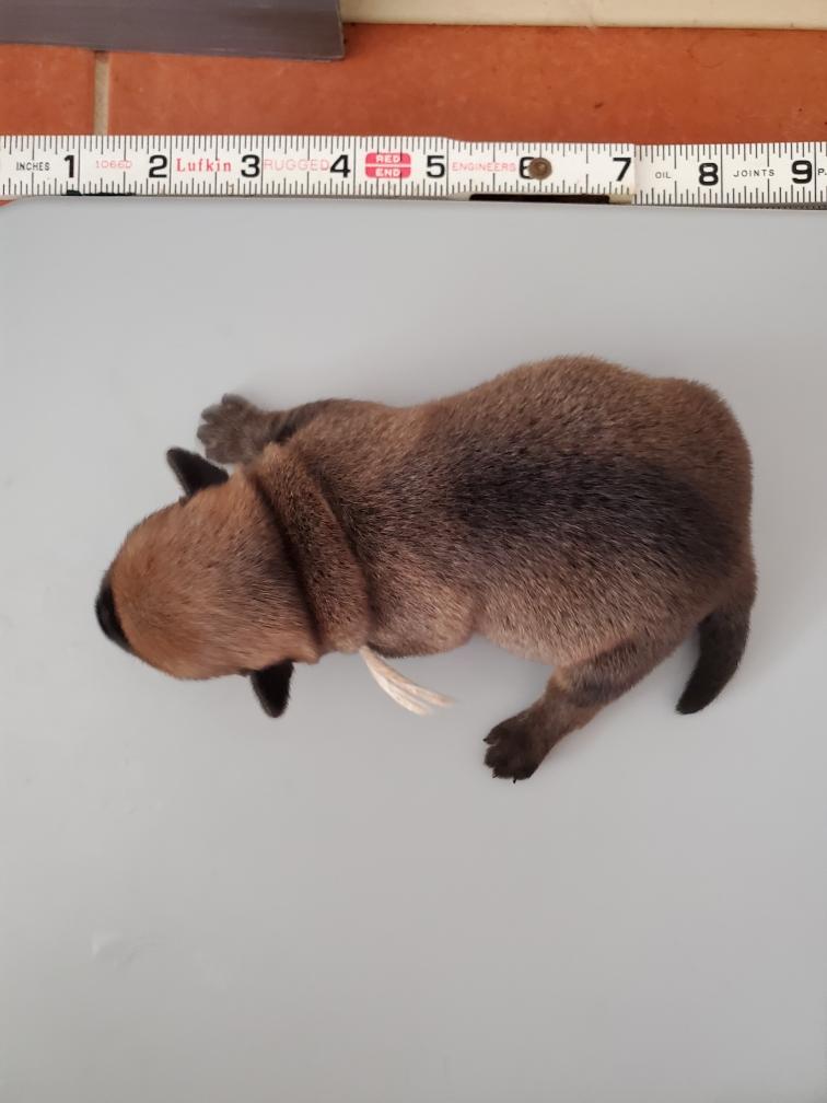 Around 10 pm, I got a phone call from the resident (junior) repro vet that Polly's c-section was starting. A 11 pm, the attending (senior) repro vet came out to tell me that Polly and her four puppies were all doing well, and that it was two boys and two girls. He apologized that it had taken so long to start the c-section, but explained that an emergency hospital has to prioritize and that it takes time to clean up and setup a surgical suite for another procedure. I asked, but he said that he did not have a good answer as to why Polly was not able to deliver naturally. Polly was having contractions, so it was not a problem of uterine inertia. The head of the puppy in the birth canal was not too large - he said he could get a finger around the puppy's head when examining Polly - so it was not a problem of fetal-pelvic disproportion. So we are left with a mystery. Shortly afterwards, I got my first look at the puppies. Polly was still pretty groggy from the anesthesia.