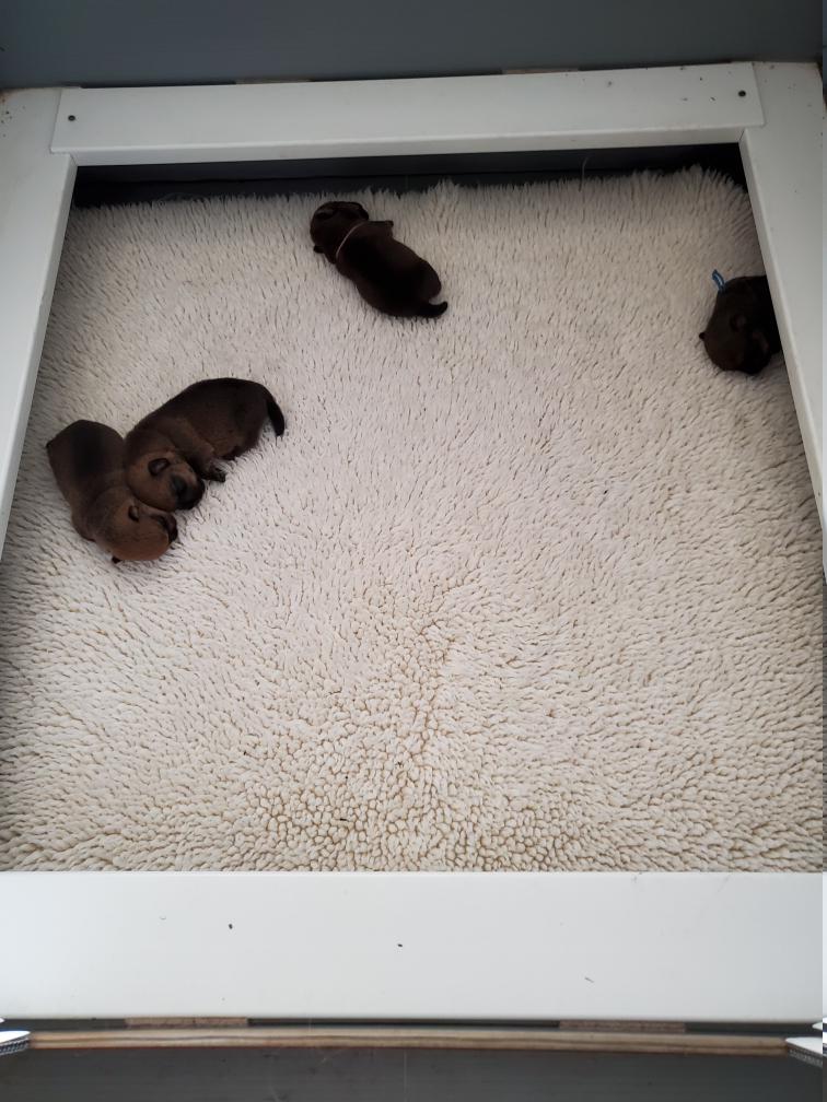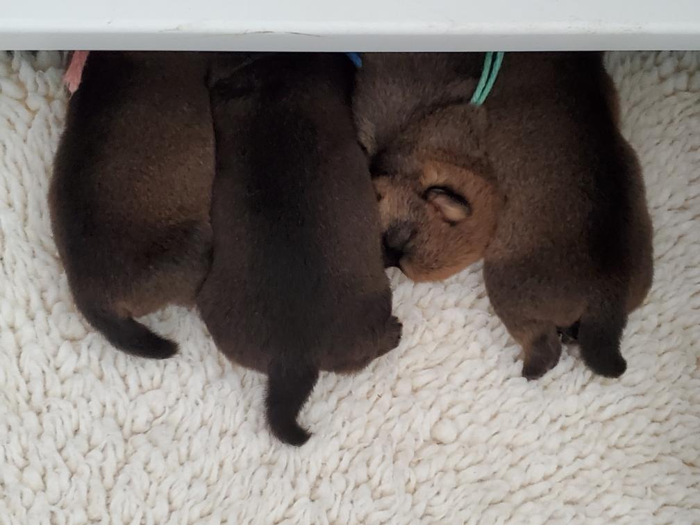 Now that the puppies are one week old, I start to relax about any of the puppies having puppy lung development disease. Babies (and puppies) lungs continue to develop after birth. If a puppy has puppy lung development disease, the puppy initially seem normal but then starts to have difficulty breathing, and goes down hill quickly and dies. It is horrible to watch and no treatment is available. I have had two puppies with puppy lung development disease, and both their bodies were sent off for research. It is thought that puppy lung development disease may be related to alveolar capillary dysplasia in humans. The scientists are excited about possibly finding an animal model for this rare fatal disorder in human infants. Genetic studies are underway.