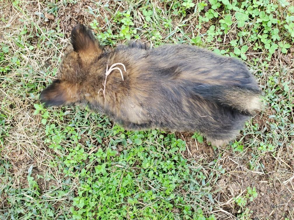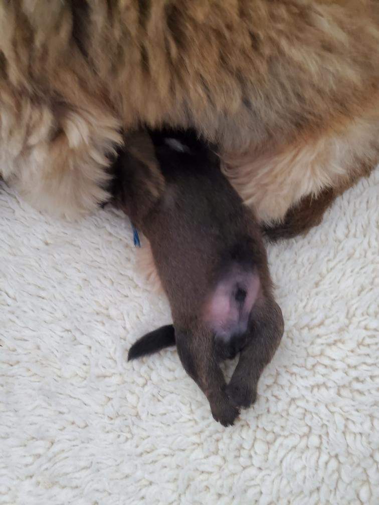 It looks like Polly has a pom-pom. This is where Polly was shaved for the IV catheter for her c-section.