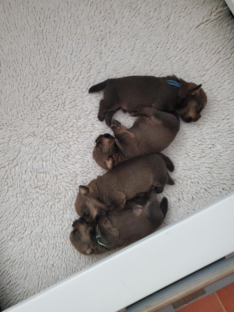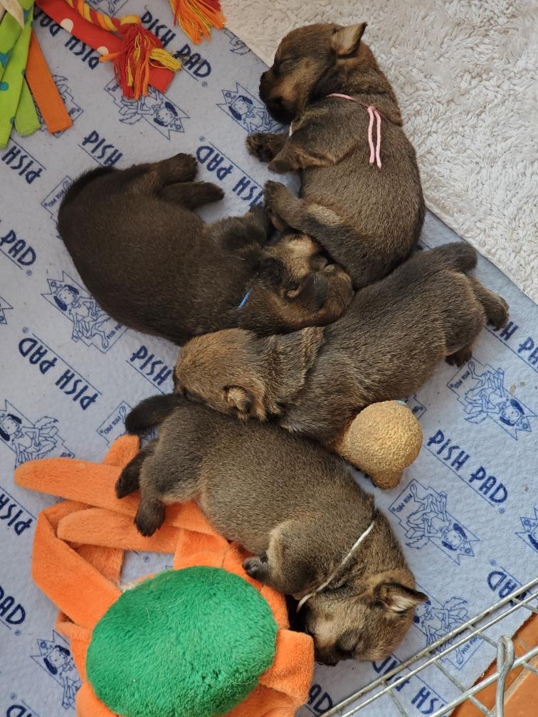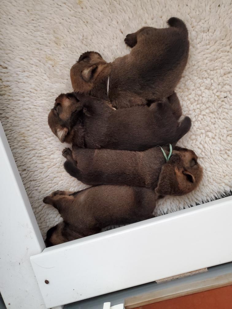 Puppies at bedtime. A few minutes later they had crawled into yet another combination. Until mommy came back and it was time to nurse and sleep again.