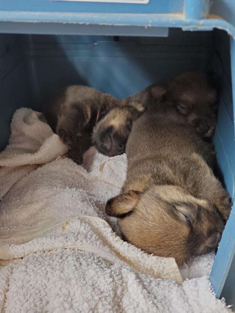 the puppies were born and as soon as Polly was away and