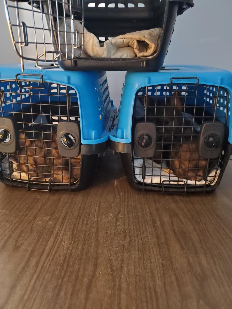 be in their crates for over two hours during our ride home.