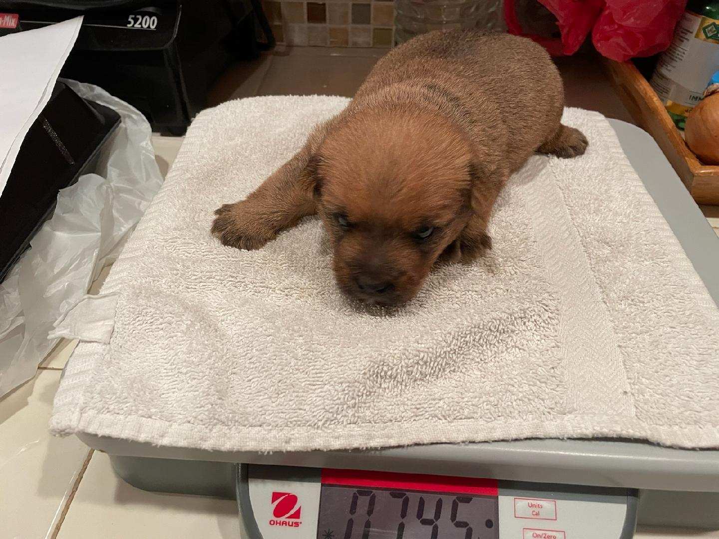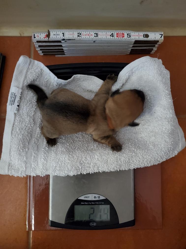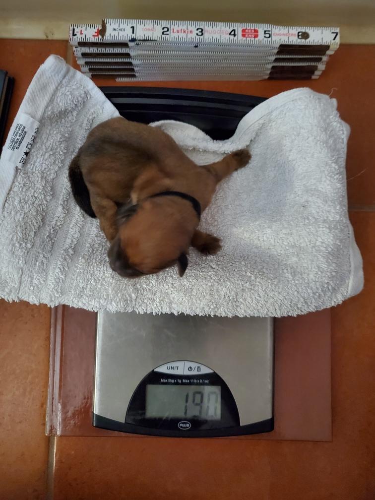 The puppies are one week old today and weigh as follows: