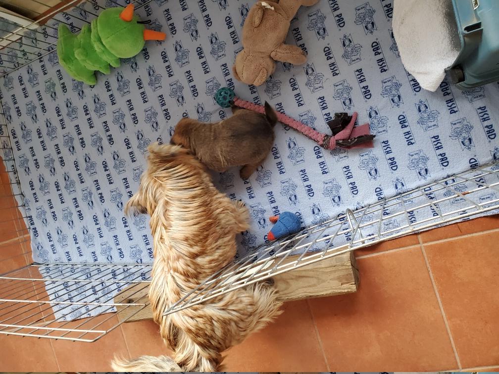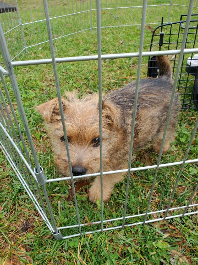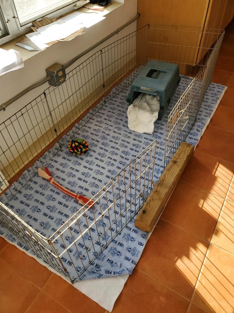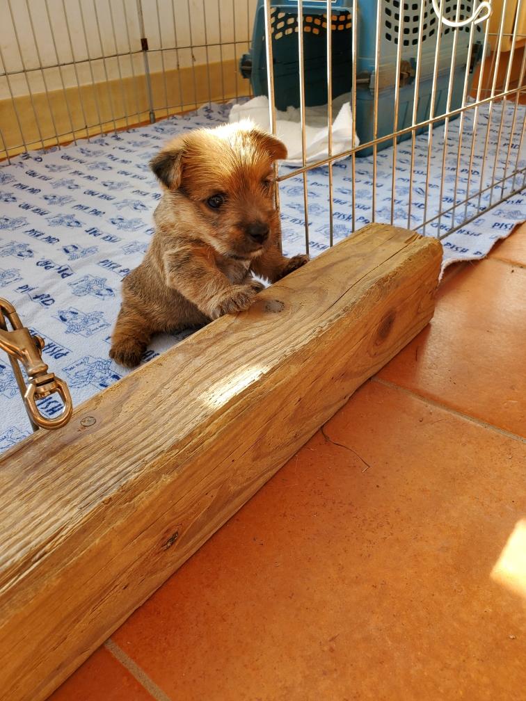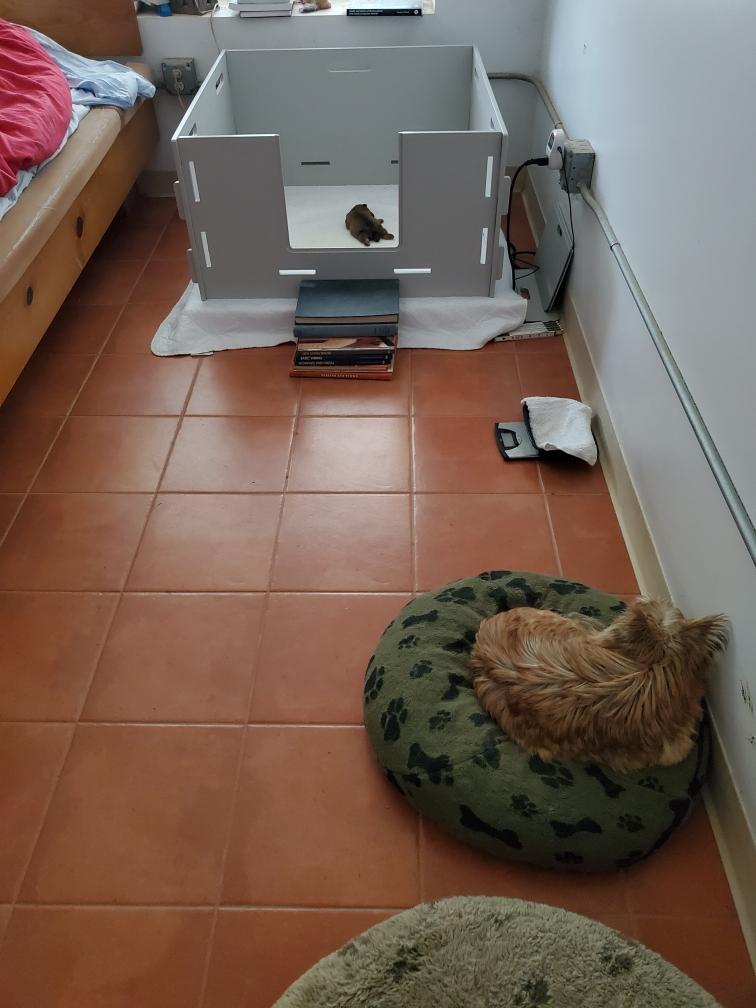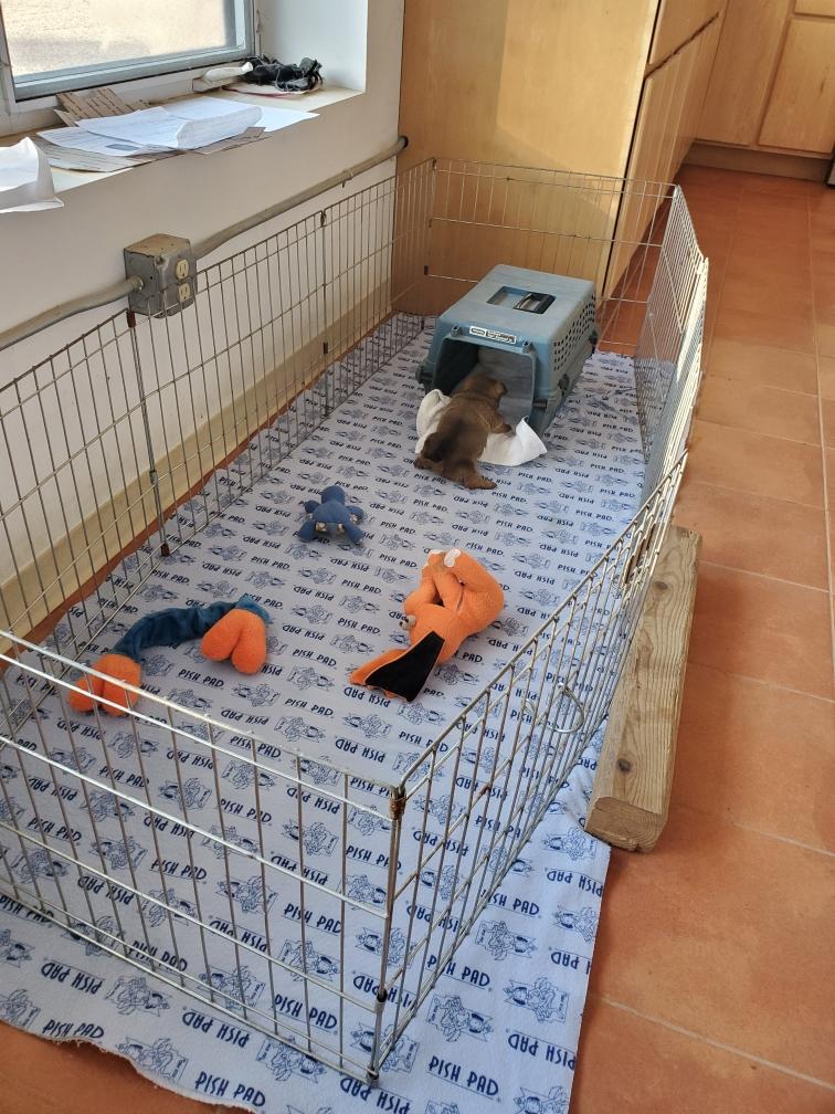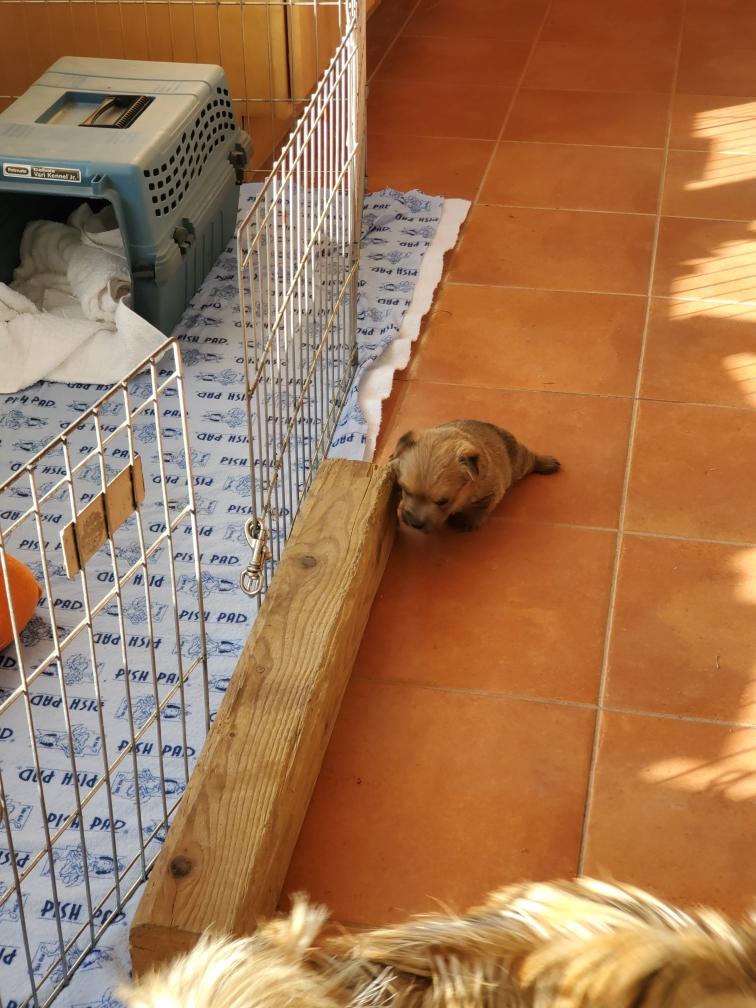 For some reason, puppies always like to circumnavigate the outside of the playpen, going between the x-pen and the wall.