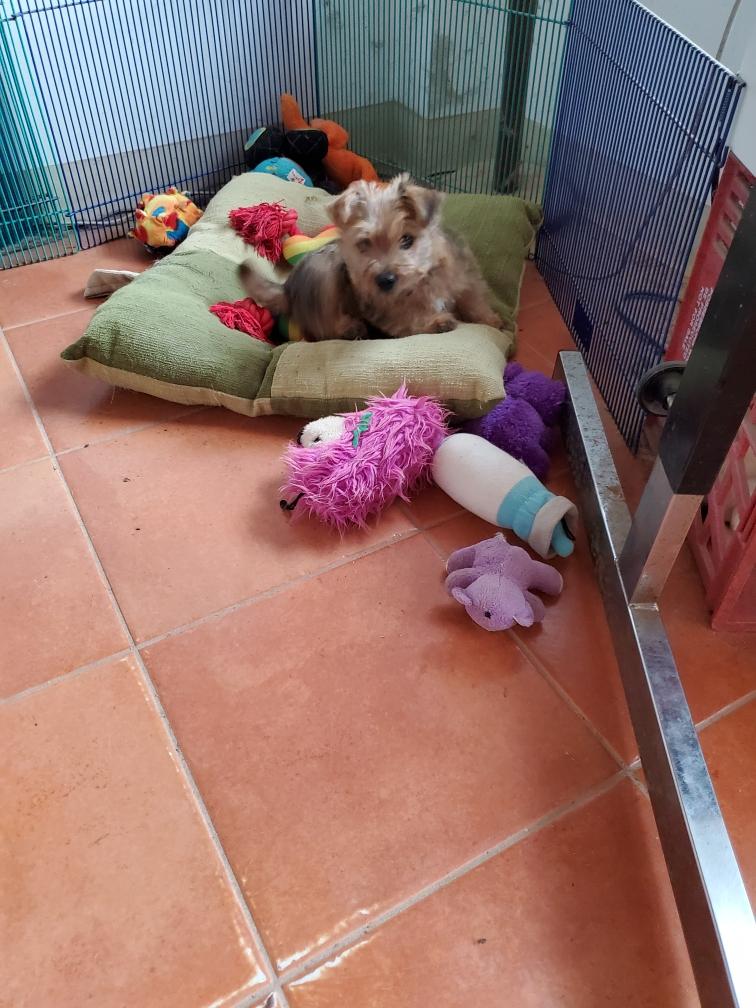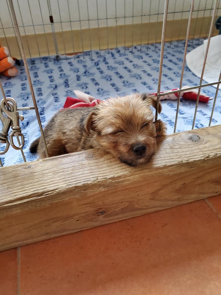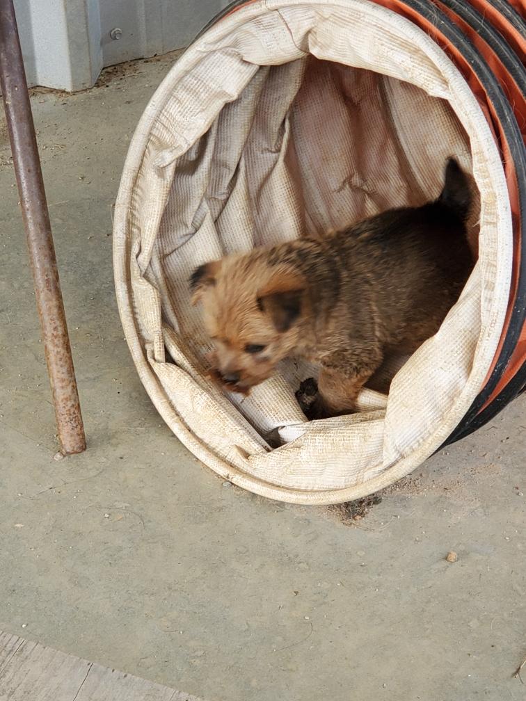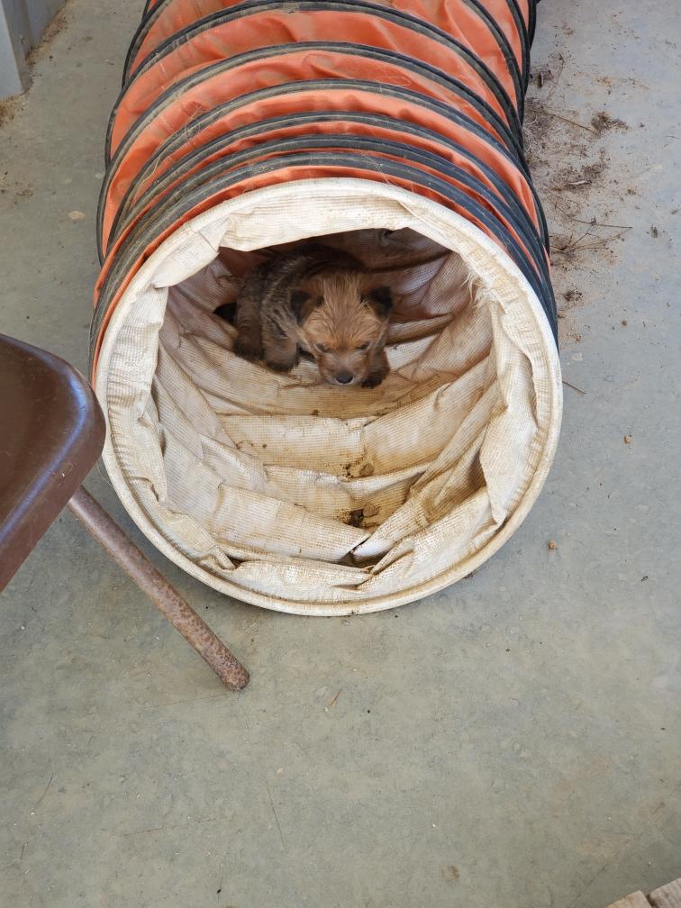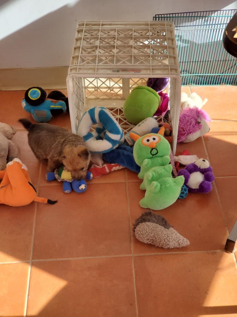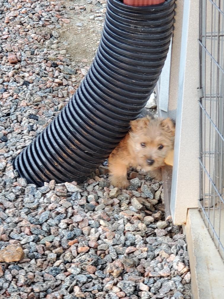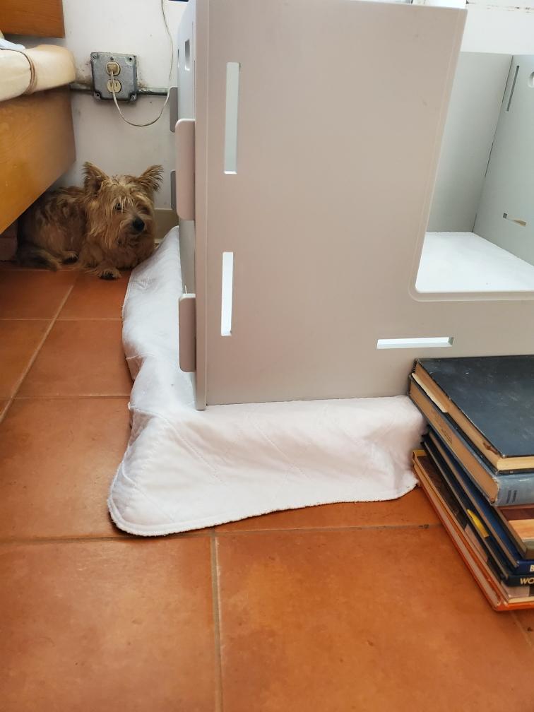 For some reason, puppies always like to circumnavigate the outside of the playpen, going between the x-pen and the wall.