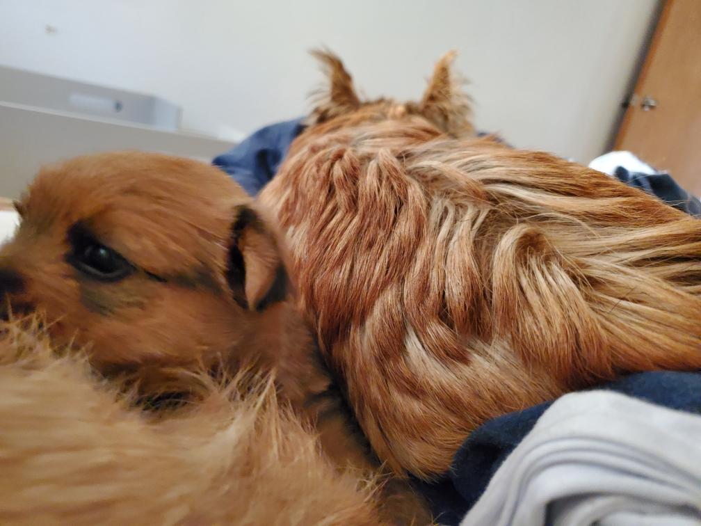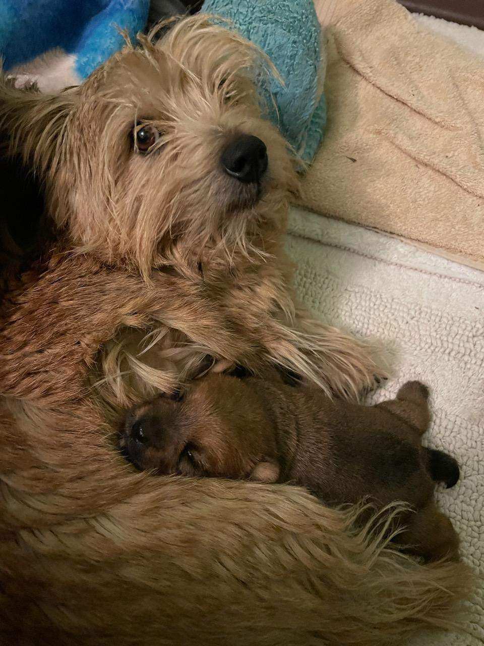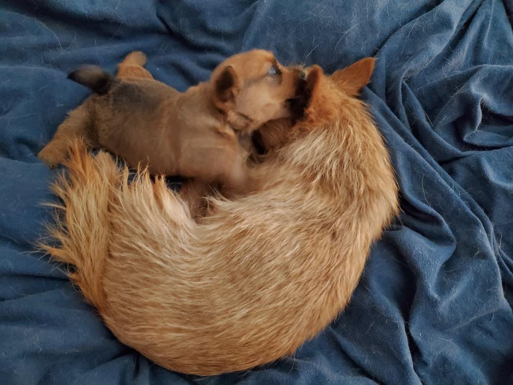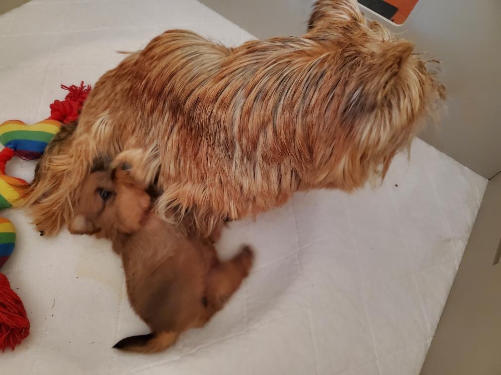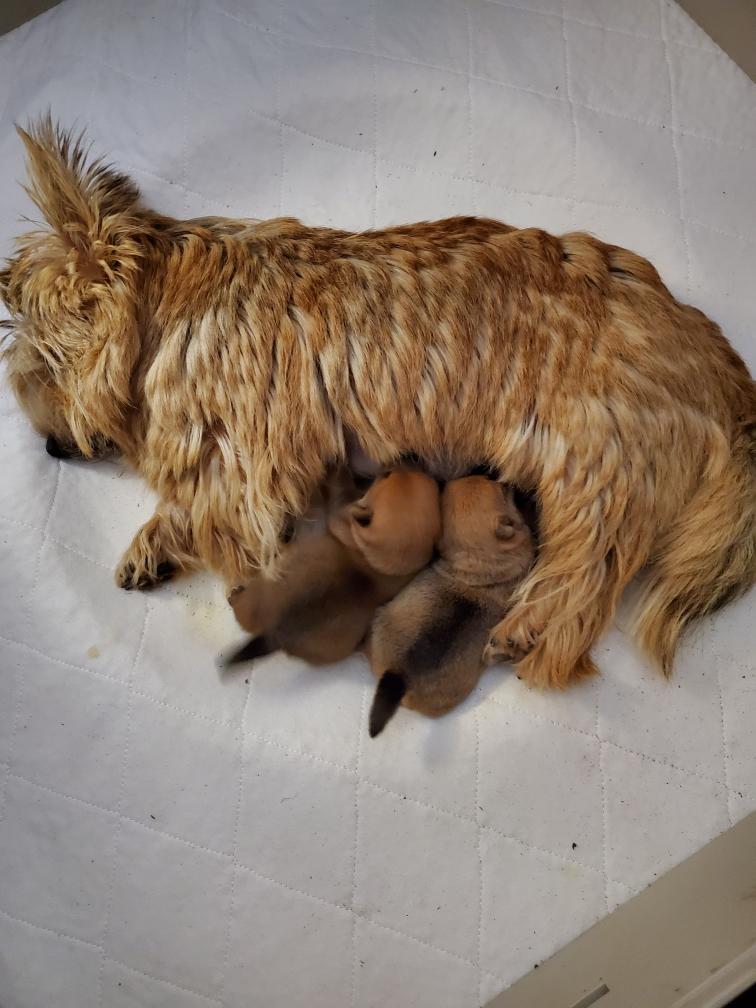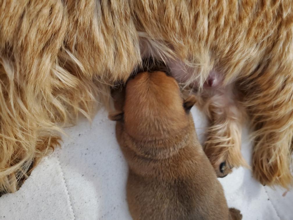 White nursing. I feel embarrassed about my "shaggy" Norwich. But I still do not want to stress Siri by stripping her until White is a bit older.
