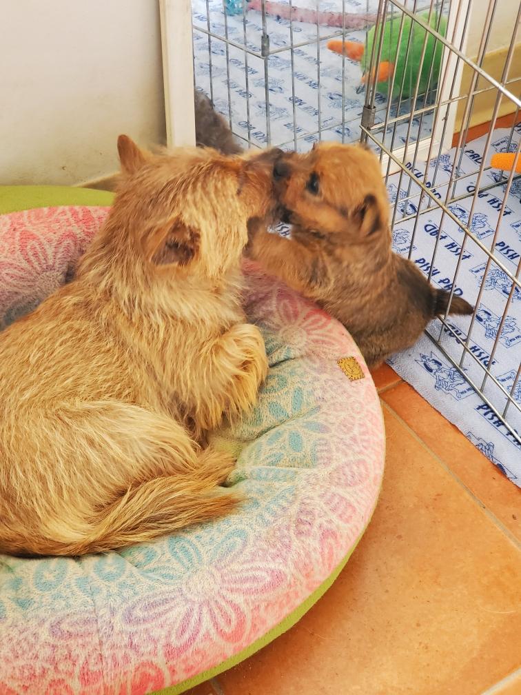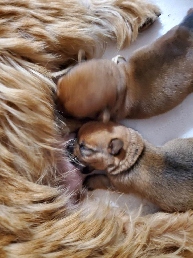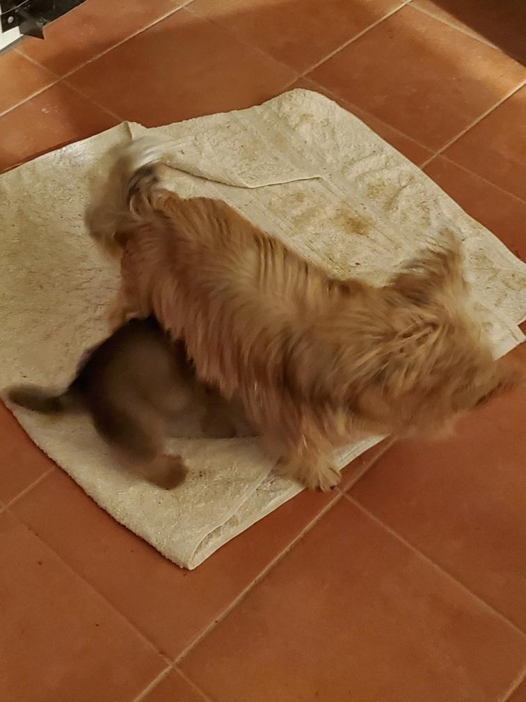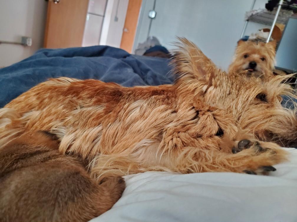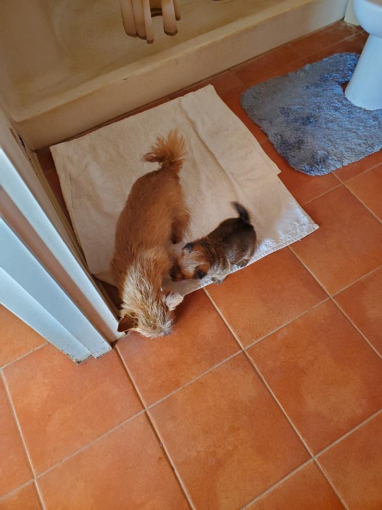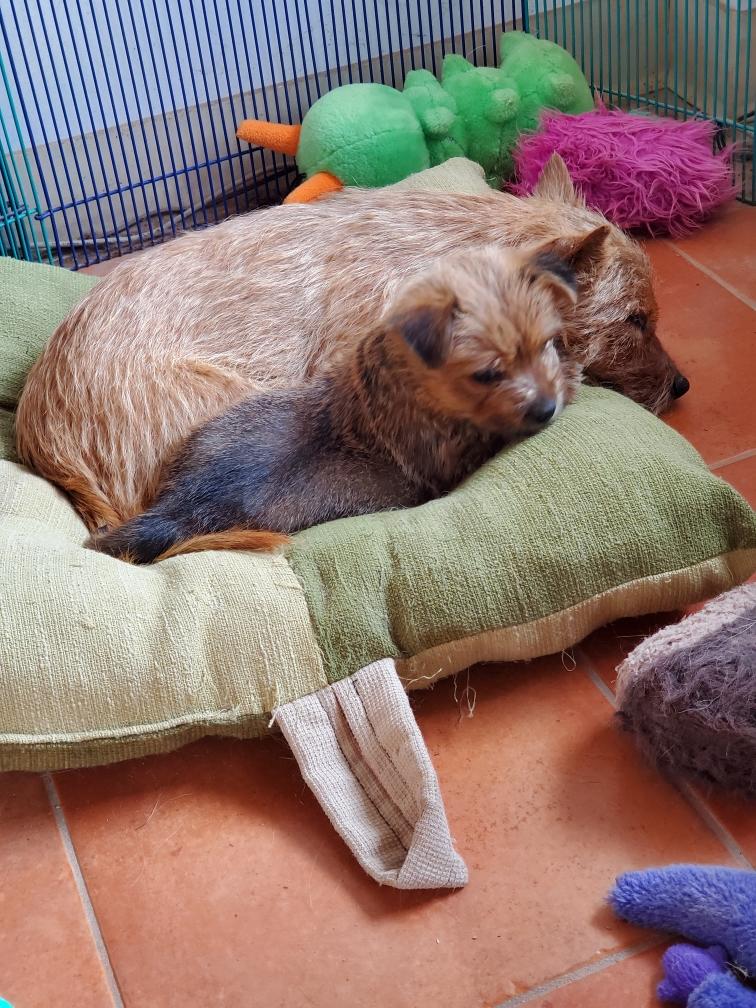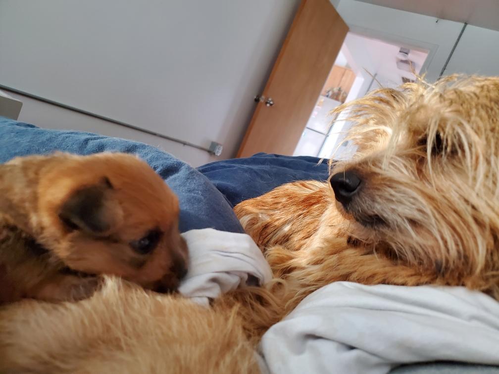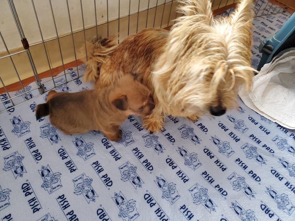 White nursing. I feel embarrassed about my "shaggy" Norwich. But I still do not want to stress Siri by stripping her until White is a bit older.