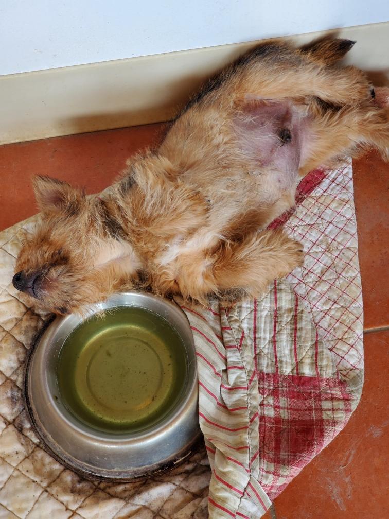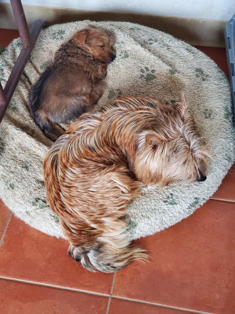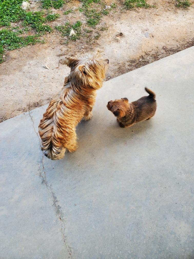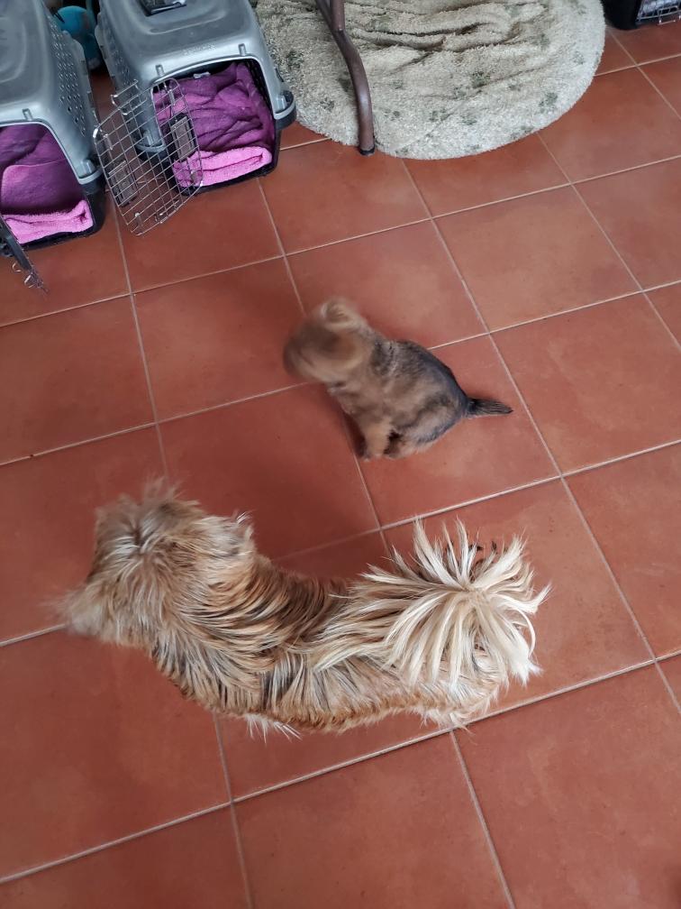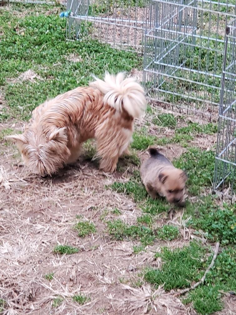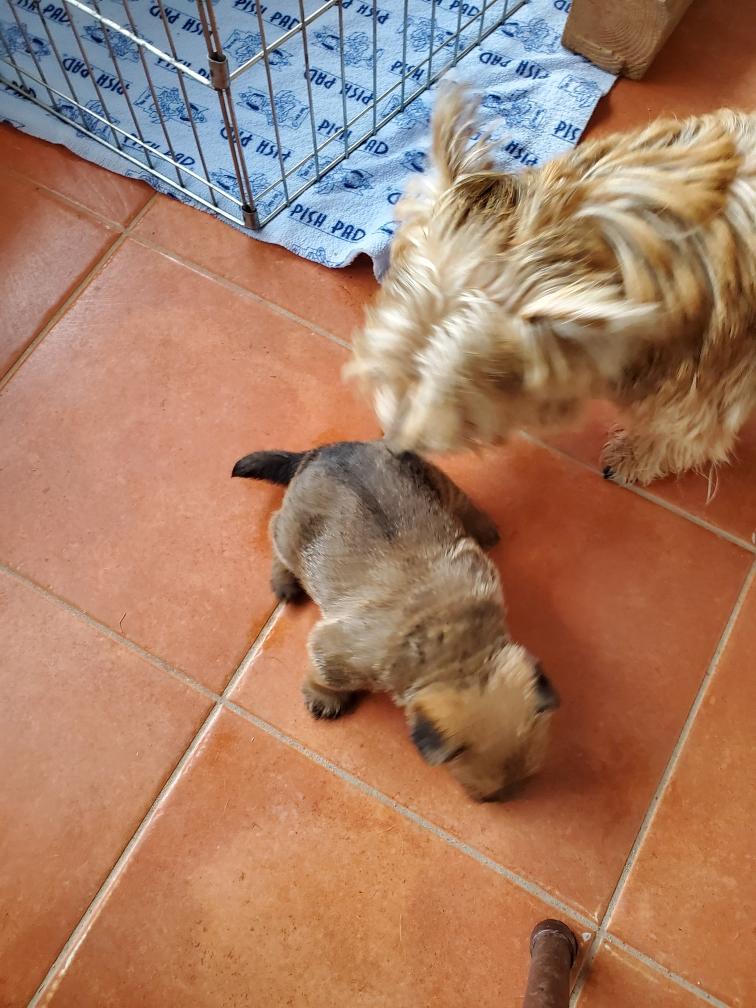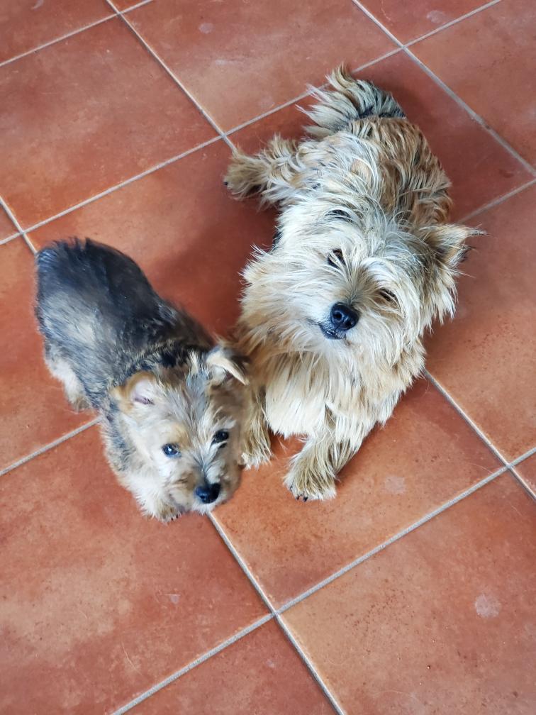 White nursing. I feel embarrassed about my "shaggy" Norwich. But I still do not want to stress Siri by stripping her until White is a bit older.