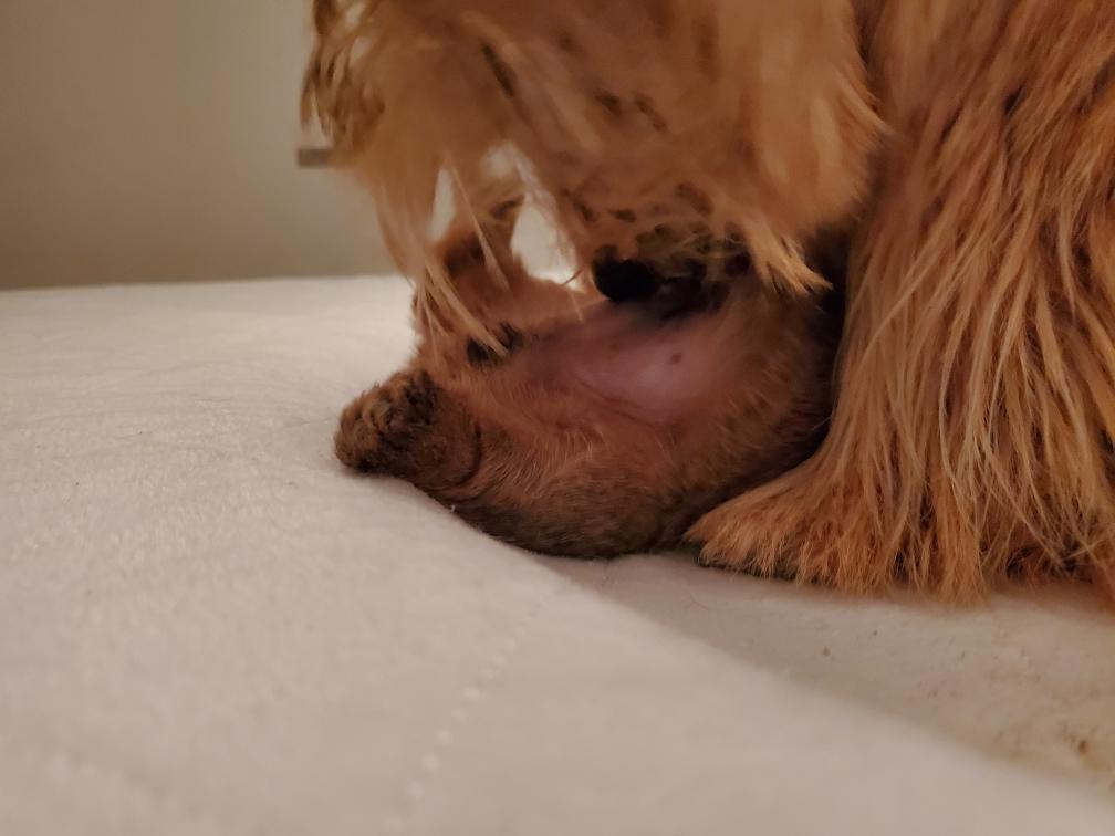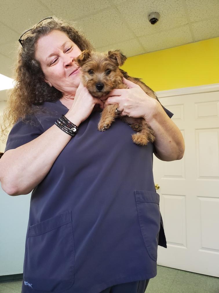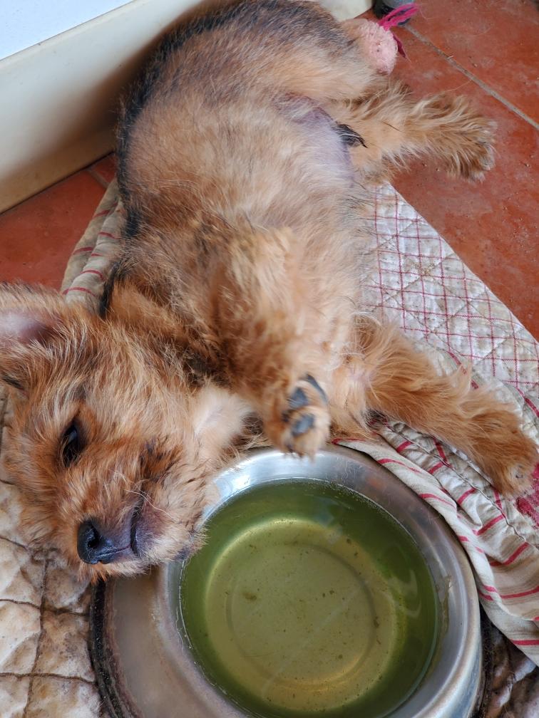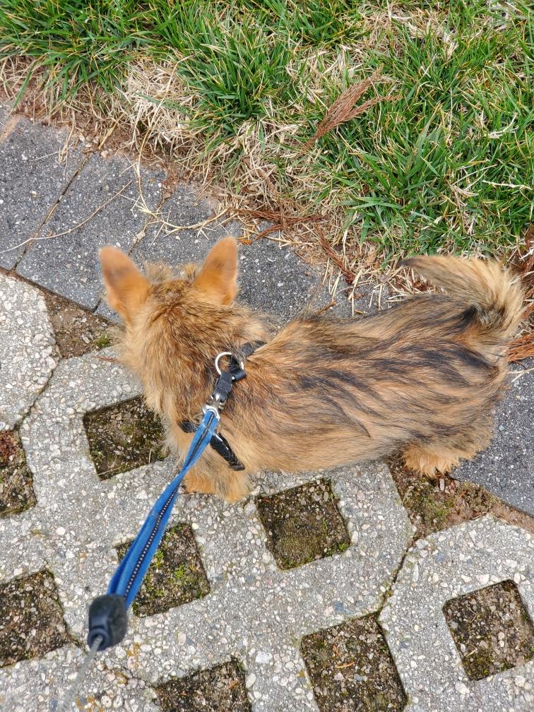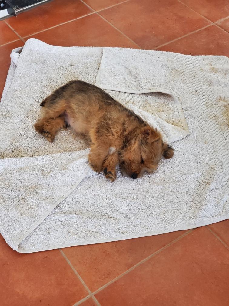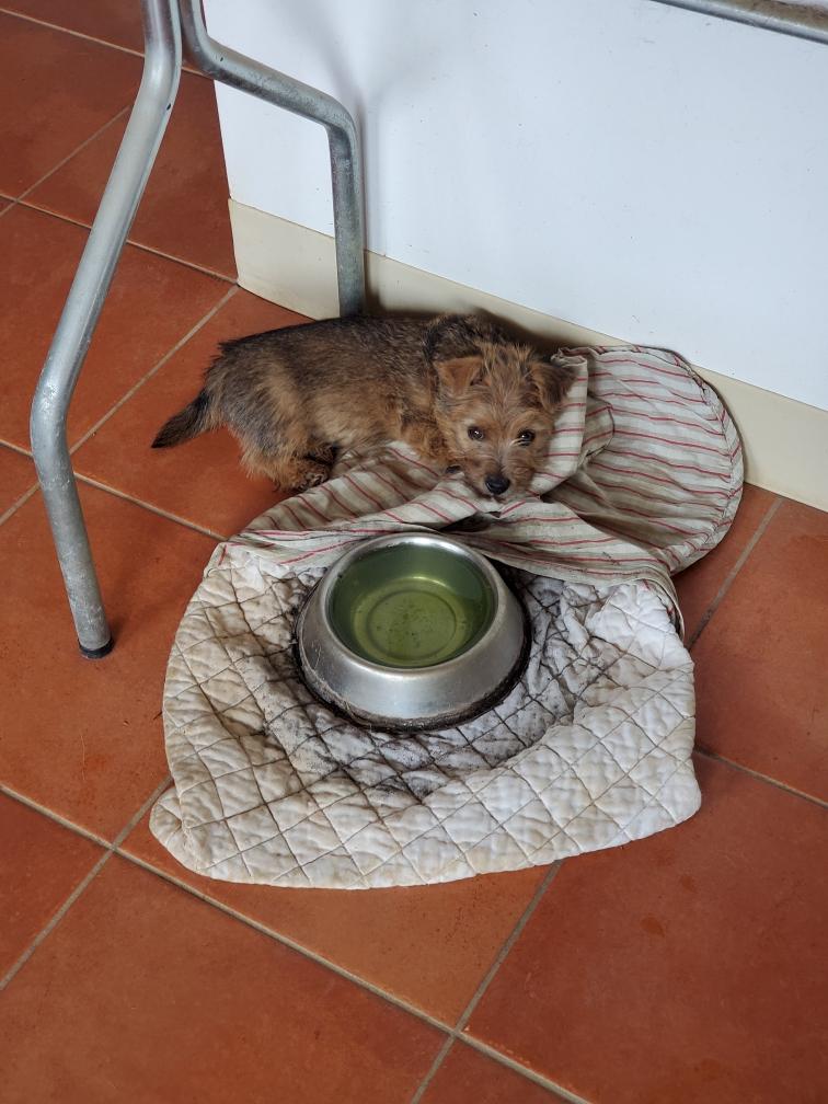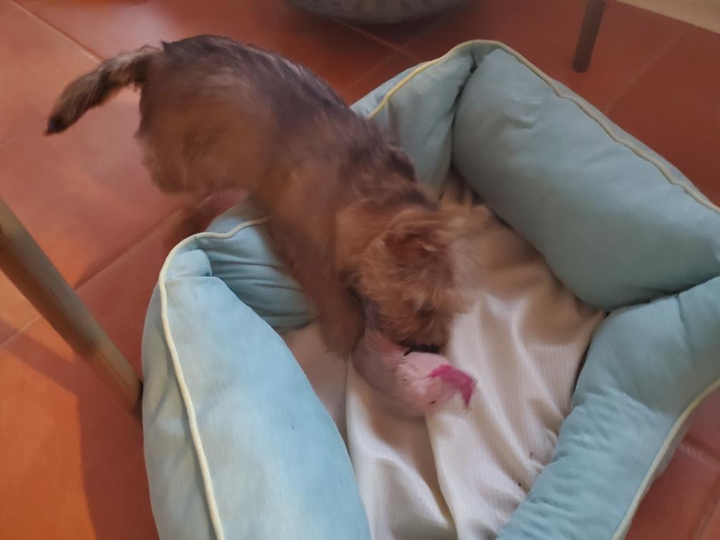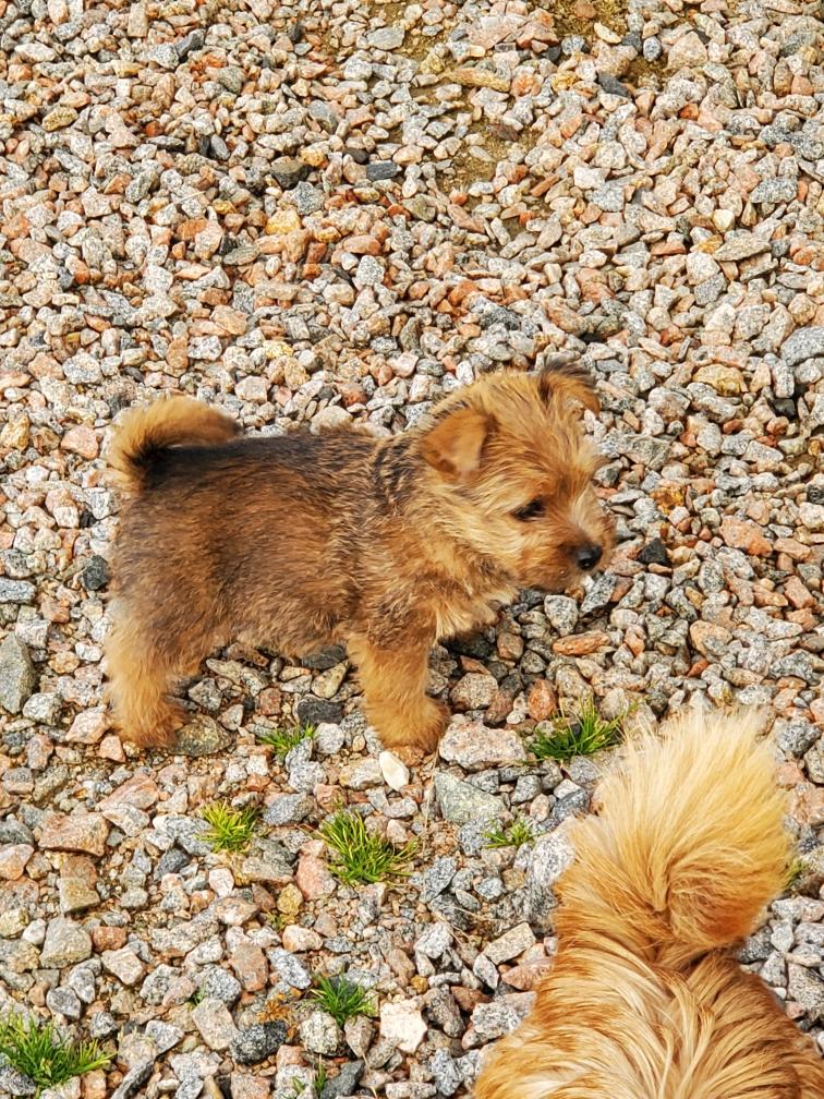 White nursing. I feel embarrassed about my "shaggy" Norwich. But I still do not want to stress Siri by stripping her until White is a bit older.