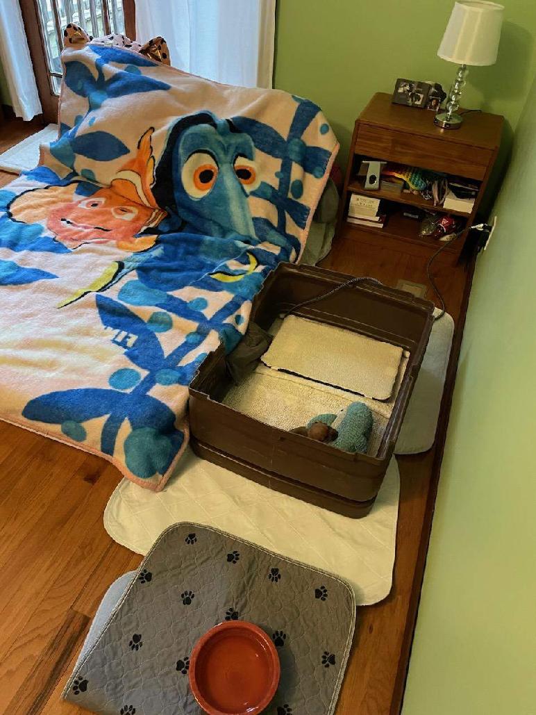 Morning picture. A moment after I took this picture, mommy Siri came and laid with Blue.