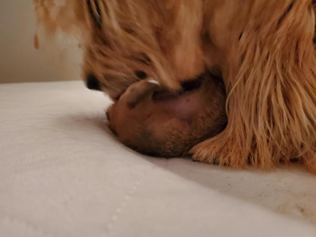 I am close to tears as I write this. Breeding is not all playing with cute puppies. There are also moments like this.