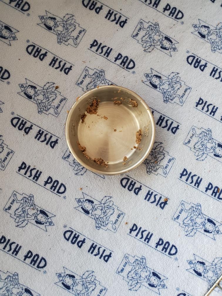 For dinner, my adult dogs got some hard-boiled egg on top of their kibble. I gave Chang the yolk from one egg. Chang thought the yolk was a great treat.
