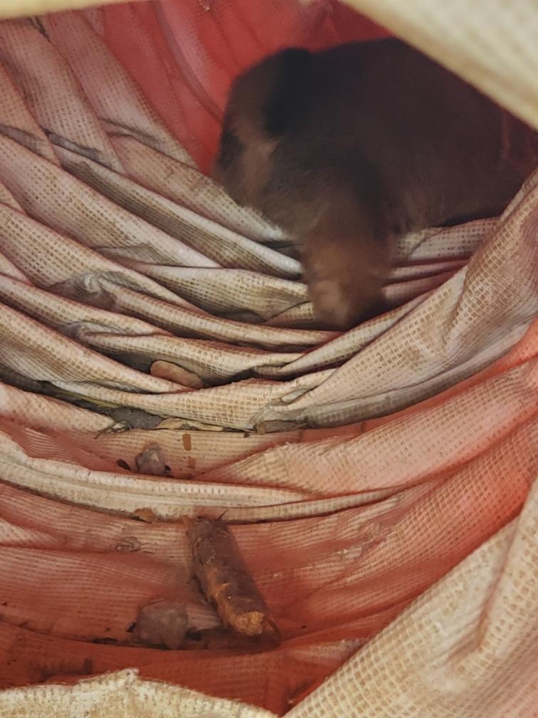 White had crawled out of the heated whelping nest and was sleeping in a corner. This confirms that White is now generating his own body heat. However I will continue to keep the whelping nest plugged in and heated.