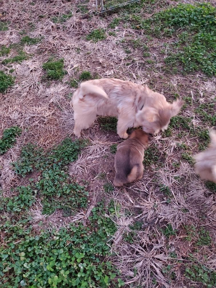 Mostly Siri has the puppies tucked underneath. I only getting a good look at the puppies when Siri goes outside to potty. The puppies are starting to loose that wrinkly look that newborns have.