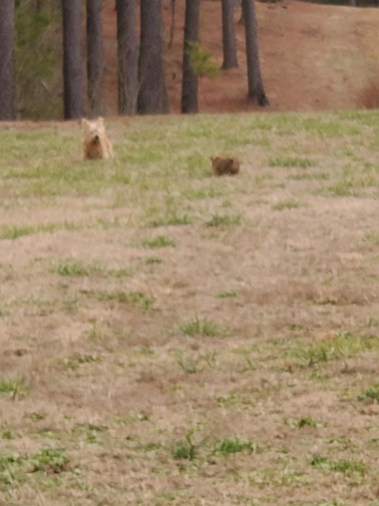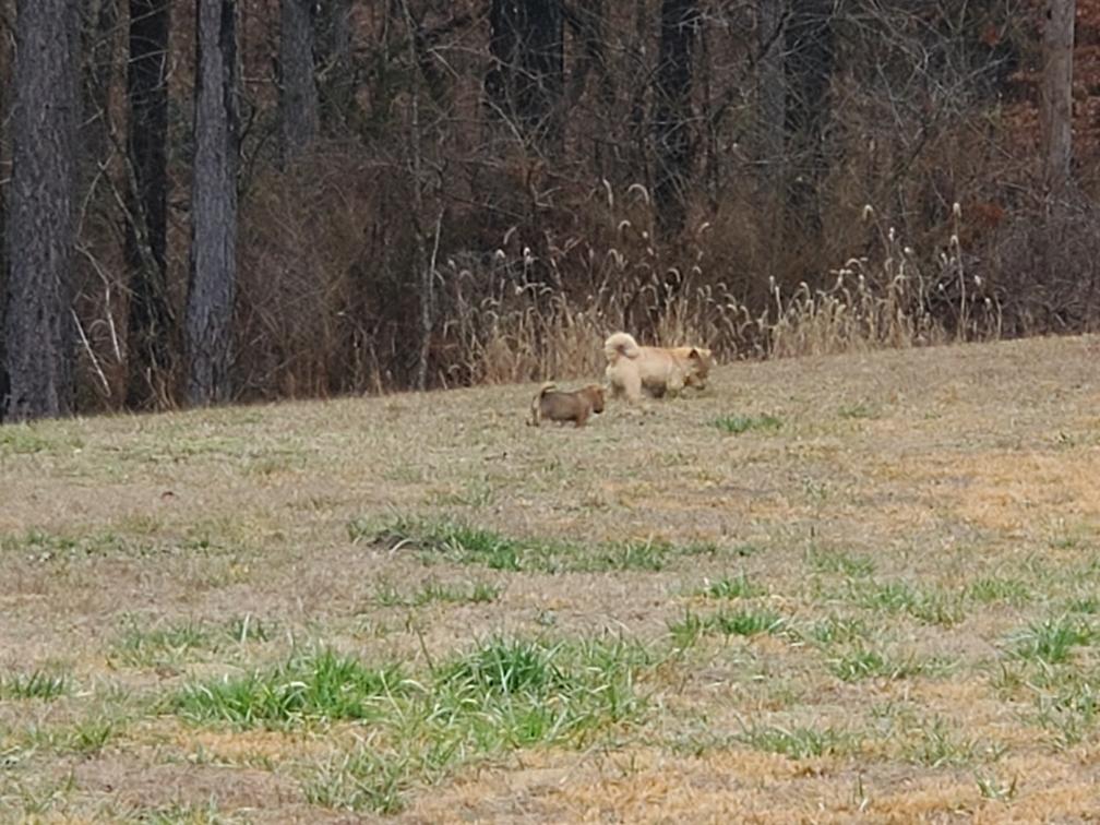 I was finally able to get a half-way decent photo of Chang standing up and showing air underneath his belly..