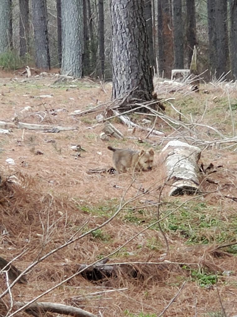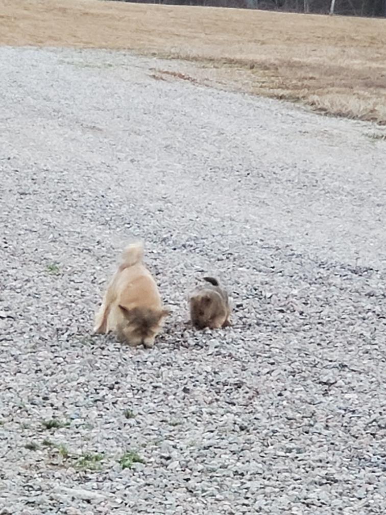 Chang (in the distance) exploring my gravel driveway. Chang turned around after I took this picture, probably figuring that he had gone far enough away from my house.