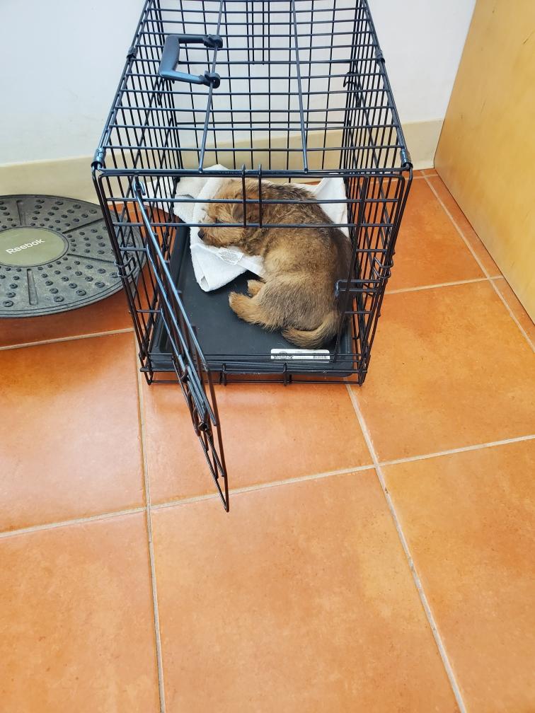 Chang napping in one of my big dog crates. I leave the crates open and my adult dogs often go inside to take a nap.